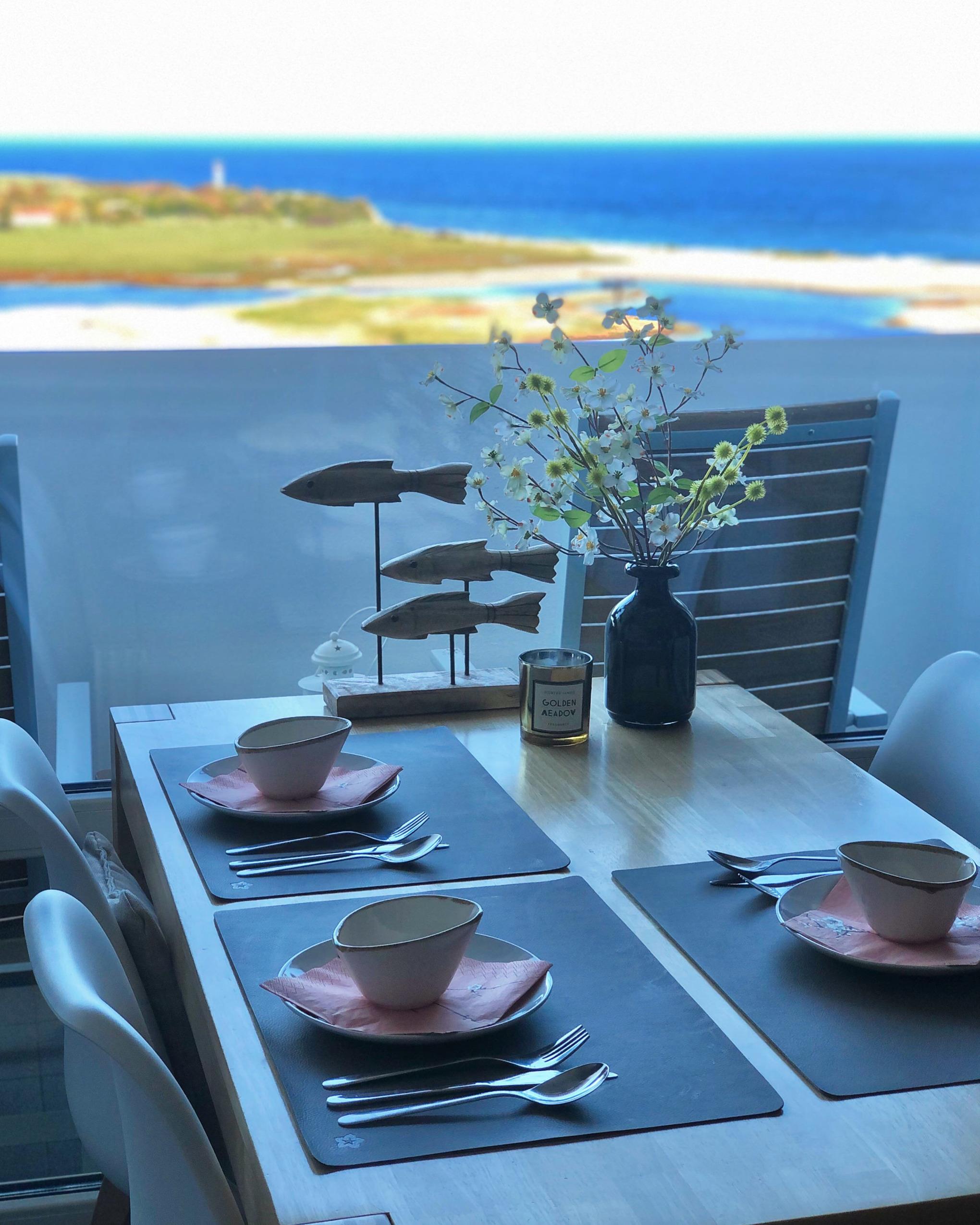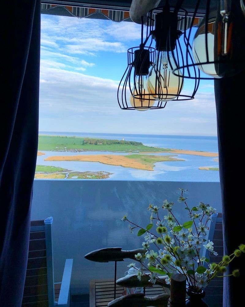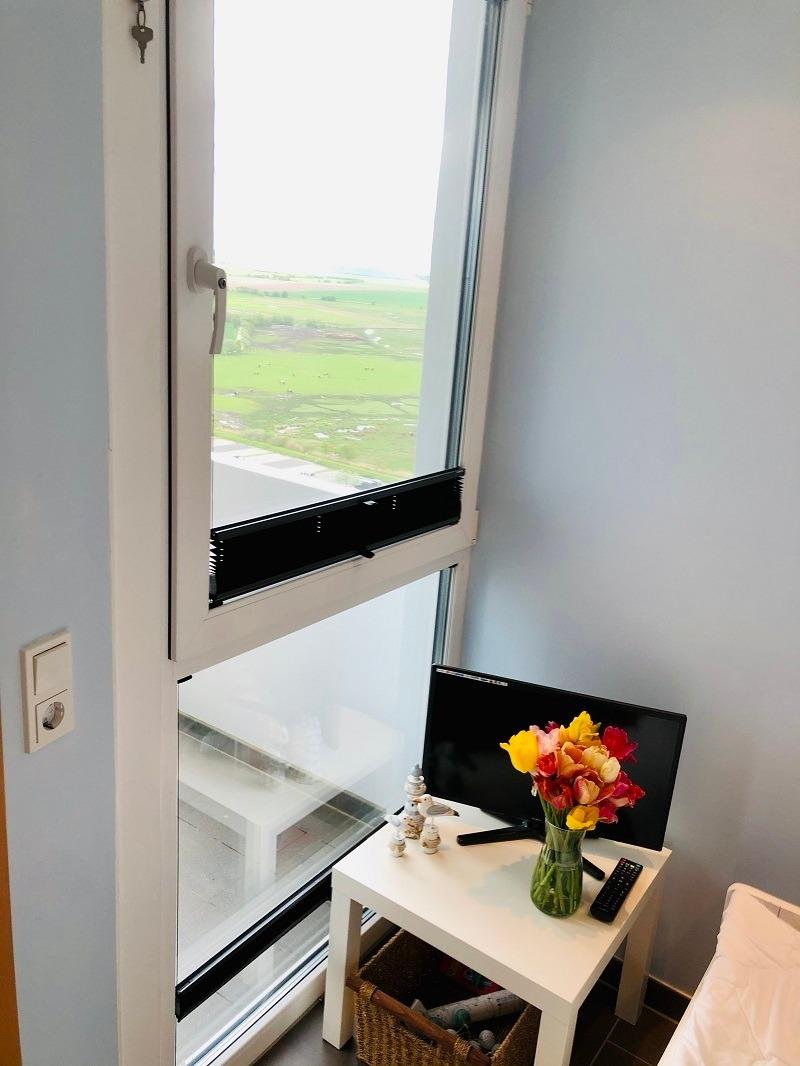 Die frisch renovierte und liebevoll eingerichtete Wohnung liegt im Haus F in der 14. Etage (von 14 Etagen, darüber kommt nur noch der Himmel) und bietet einen Westbalkon mit herrlichem Blick auf die Ostsee und das Landschaftsschutzgebiet Eichholzniederung.