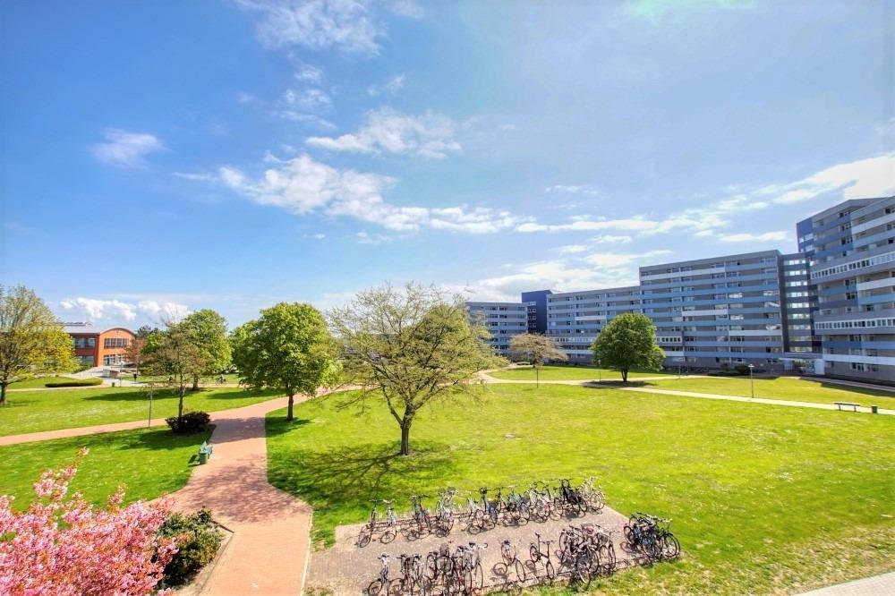 Die Wohnung liegt im Haus G Ferienpark, in der 2. Etage, mit Balkon und Blick auf die gepflegte Grünanlage des Innenhofs in Richtung Binnensee.