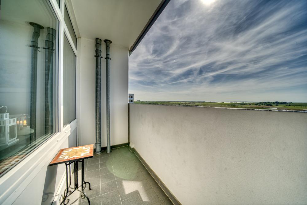 Komfortable Ferienwohnung mit Meerblick und Balkon im 7. Stock des Ferienparks Heiligenhafen.