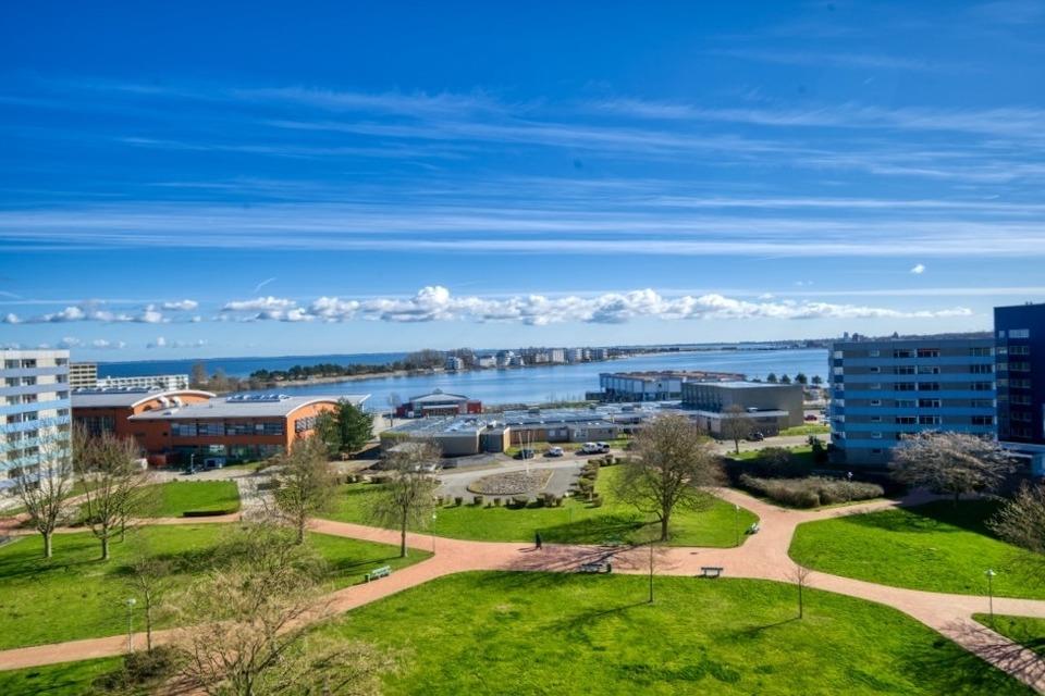 Die Wohnung liegt im Haus G Ferienpark, in der 7. Etage, mit Balkon zur Ostseite, der einen herrlichen Blick auf die Ostsee in Richtung der Fehmarnsundbrücke sowie auf den Binnensee mit Stadt und Yachthafen bietet.