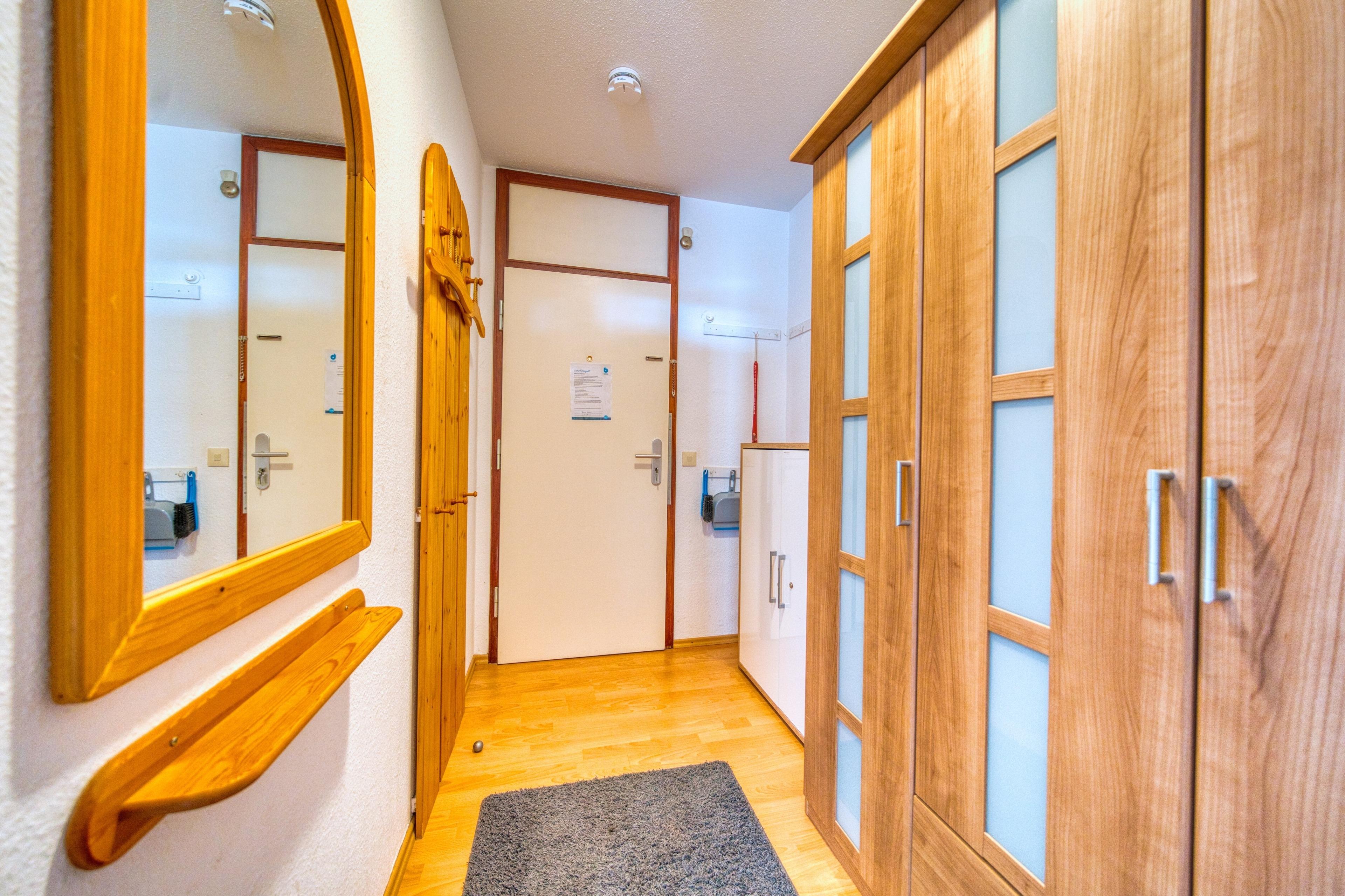 Moderne Ferienwohnung im Ferienpark Heiligenhafen mit 45 m² für bis zu 4 Personen. Balkon mit Meer- und Panoramablick, Laminatboden, Smart TV, Playstation 4 und Highspeed-Internet. Schlafbereich mit Einzelbetten und Etagenbett im Kinderzimmer. Voll ausgestattete Küche mit Cerankochfeld, Heißluftfritteuse, Filterkaffeemaschine, Kühlschrank, Mikrowelle, Toaster und Wasserkocher. Badezimmer mit niedrigem Duscheinstieg. Zugang zur Kinderspielwelt im Aktiv-Hus inklusive. Nichtraucherwohnung, keine Haustiere. Ca. 300?m zum Strand, Fahrstuhl und kostenfreier Parkplatz vorhanden.
