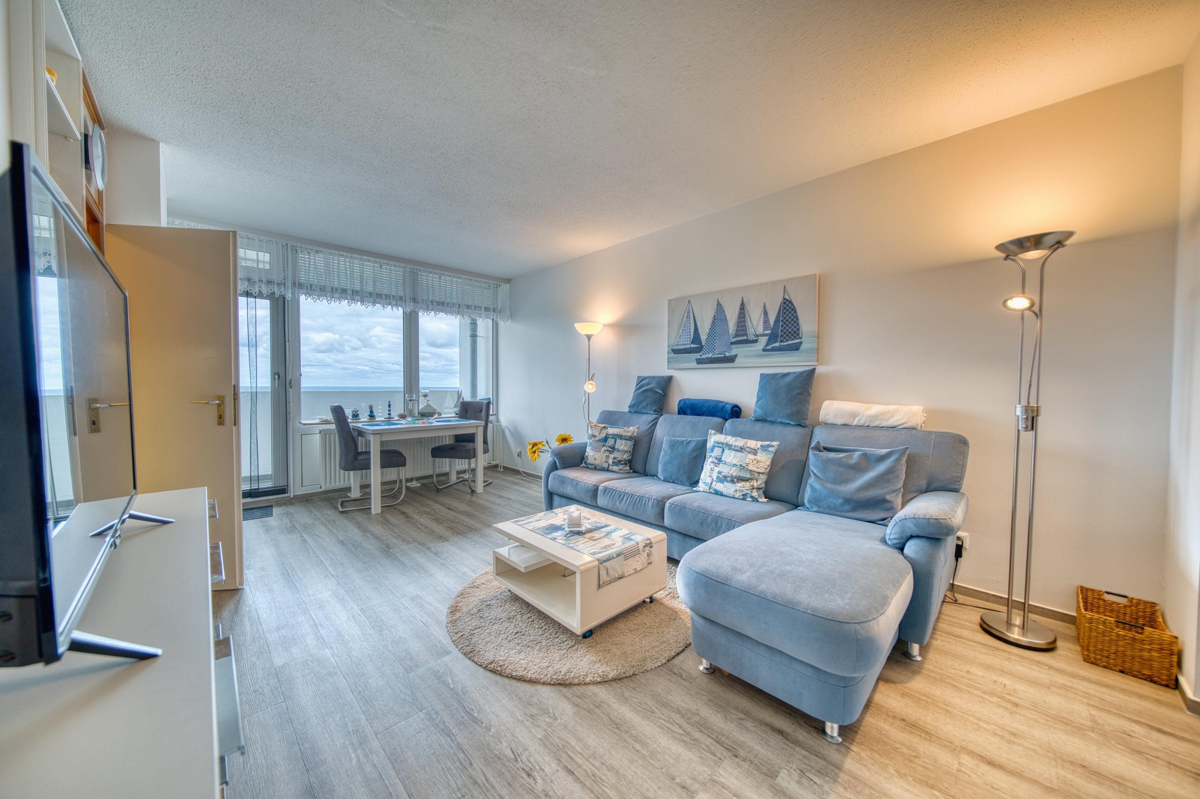 Moderne Ferienwohnung mit Ostseeblick und Westbalkon im 12. Stock des Ferienparks Heiligenhafen.