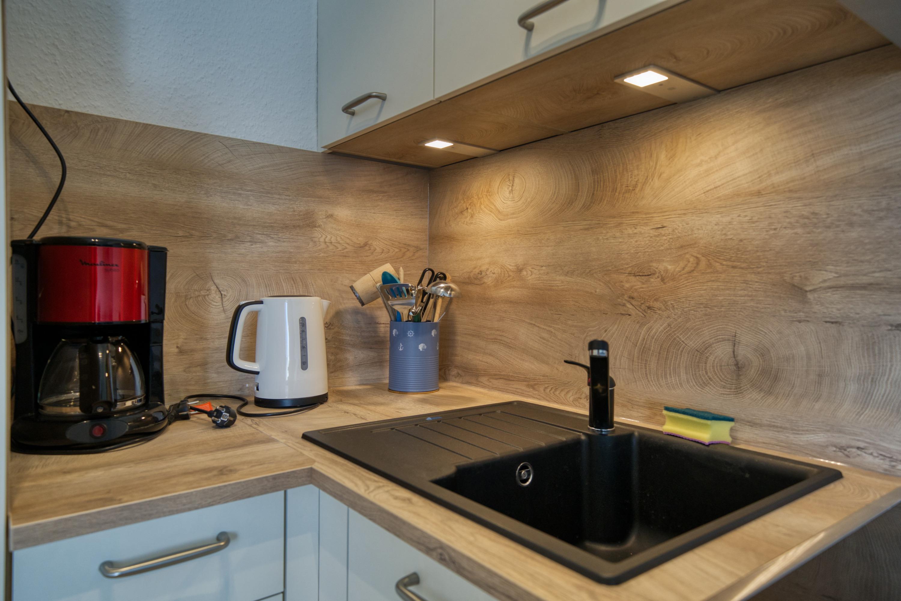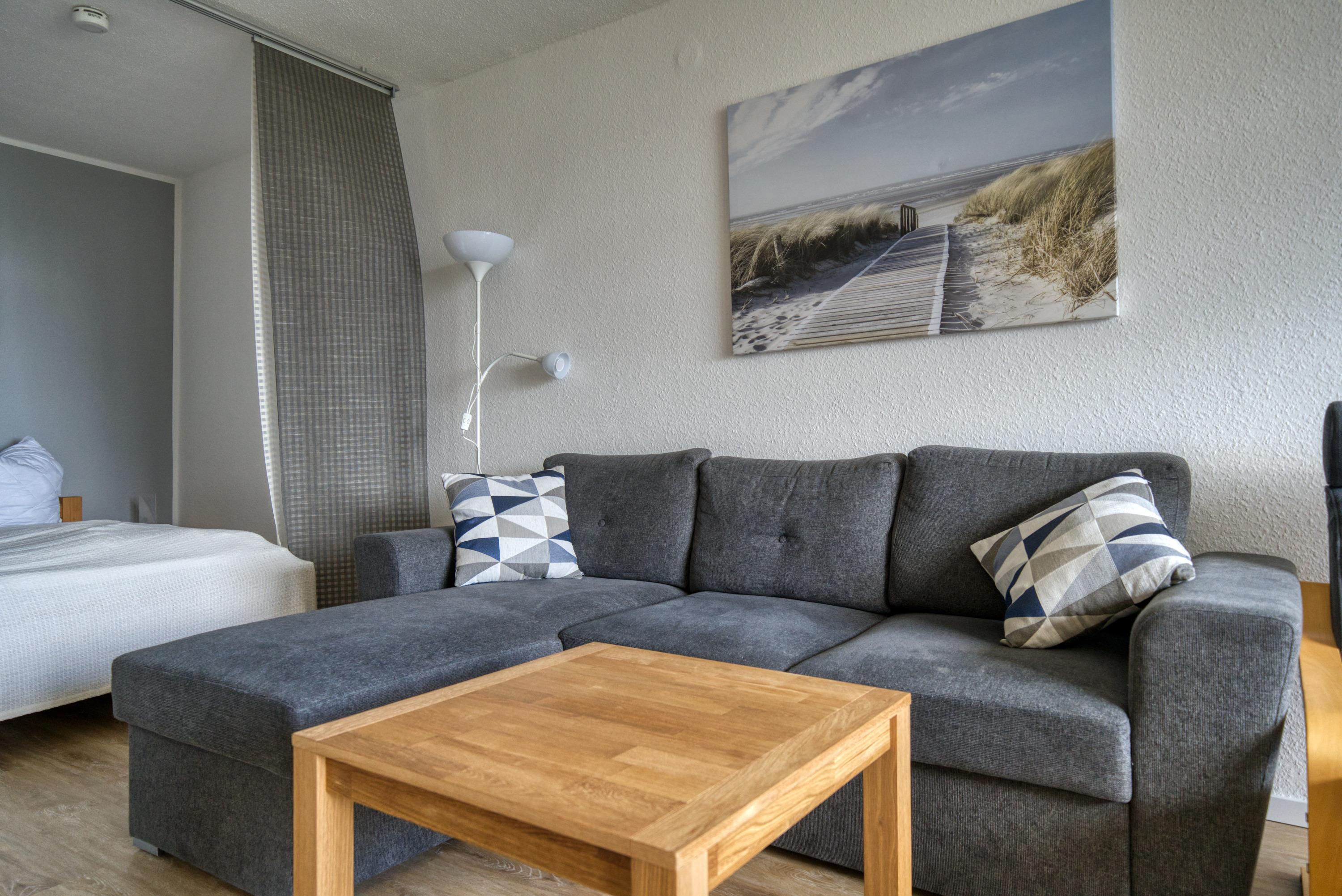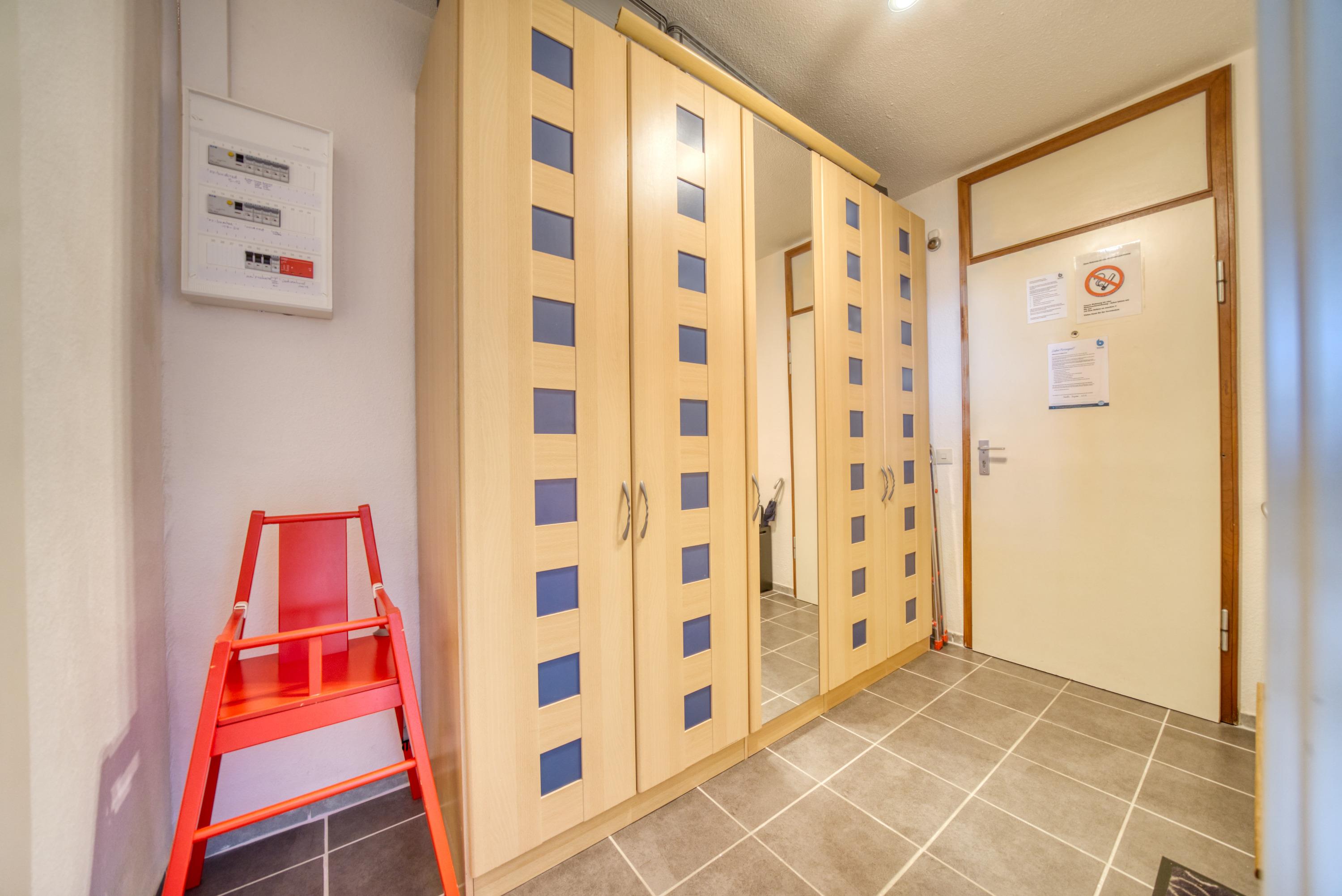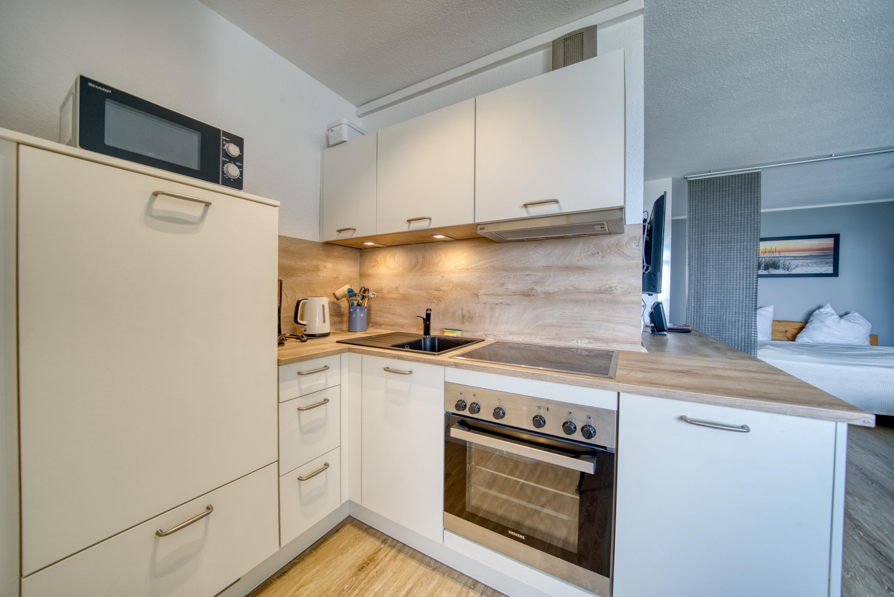 Die Wohnung verfügt über Wohn-/Essbereich mit Smart-TV, Schlafbereich mit Doppelbett, Kinderzimmer mit Etagenbett, Bad mit WC, Duschkabine und Handtuchtrockner sowie voll ausgestattete Küche mit Cerankochfeld, Backofen, Mikrowelle, Kühlschrank mit Gefrierfach und Spülmaschine. Kostenloses WLAN, Fahrstuhl, kostenloser Parkplatz, abschließbare Fahrradräume, nur ca. 300 m zum Strand. Nichtraucherwohnung, keine Haustiere. Aktiv-Hus, Restaurants und Einkaufsmöglichkeiten nur 30 m entfernt.