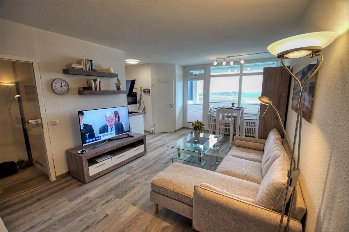 Die Wohnung (ca. 45 m², max. 3 Personen) verfügt über offenen Wohn-Schlafbereich mit Doppelbett und Flachbild-TV, separates Einzelzimmer, Küche mit Spülmaschine, Backofen, 4-Platten-Ceranfeld, Kühlschrank mit Gefrierfach und Kaffeemaschine, sowie modernes Bad mit Regenwasserdusche. Kostenfreies WLAN, Nichtraucherwohnung, kein Haustier, Fahrstuhl, abschließbare Fahrradräume, kostenloser Parkplatz. Strand ca. 300 m, Aktiv-Hus und Einkaufsmöglichkeiten 30 m entfernt.