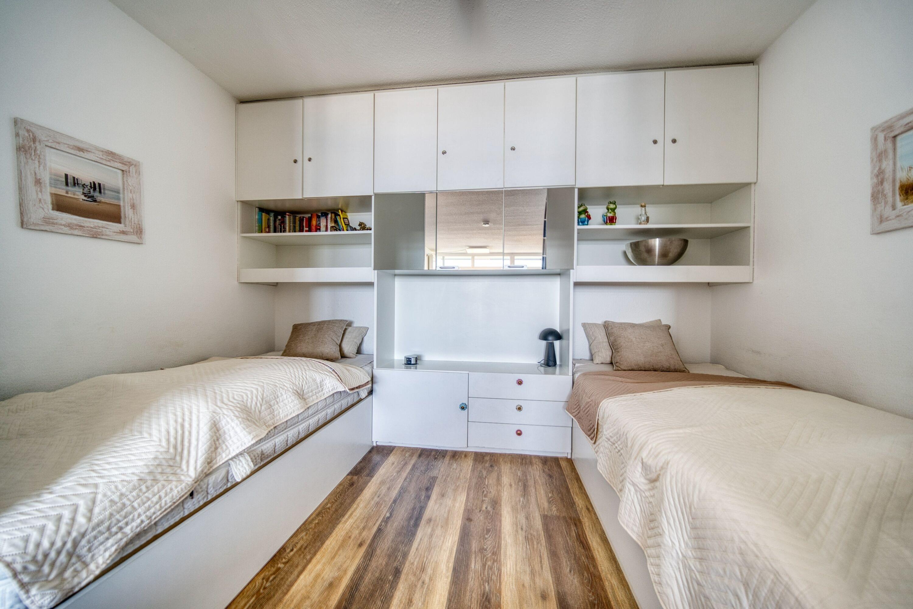Die Wohnung bietet Wohnzimmer mit Flachbild-TV, Elternschlafraum mit zwei Einzelbetten, separates Kinderzimmer mit Etagenbett und kostenfreies WLAN. Die Küche ist ausgestattet mit Kühlschrank, Gefrierfach, 4-Platten-Ceranfeld und Mikrowelle. Modernes Bad mit WC, Dusche und Handtuchhalter. Fahrstuhl, Nichtraucherwohnung, keine Haustiere. Kostenfreier Parkplatz, abschließbare Fahrradräume, ca. 300?m zum Strand. Aktiv-Hus, Restaurants und Einkaufsmöglichkeiten nur wenige Schritte entfernt.