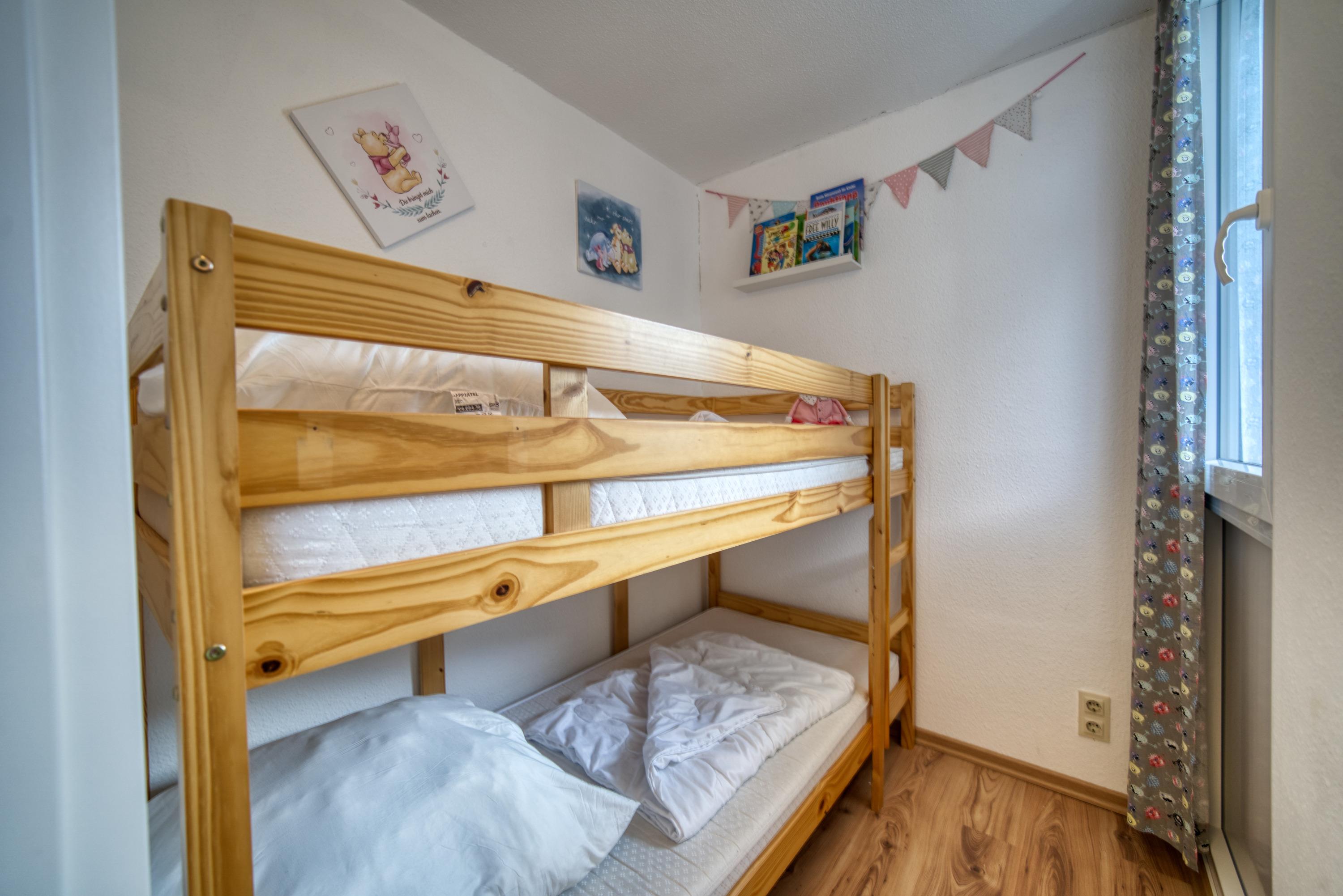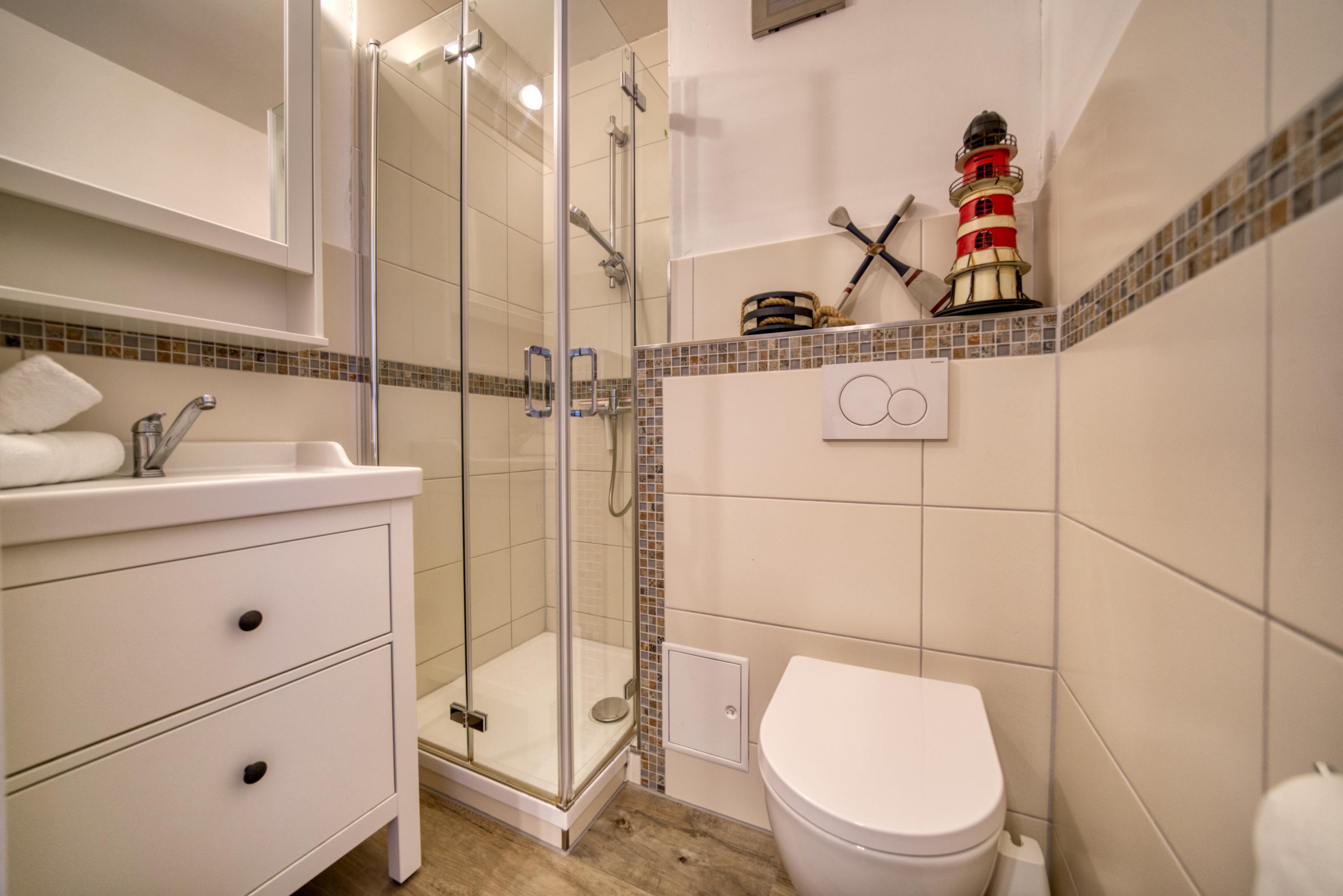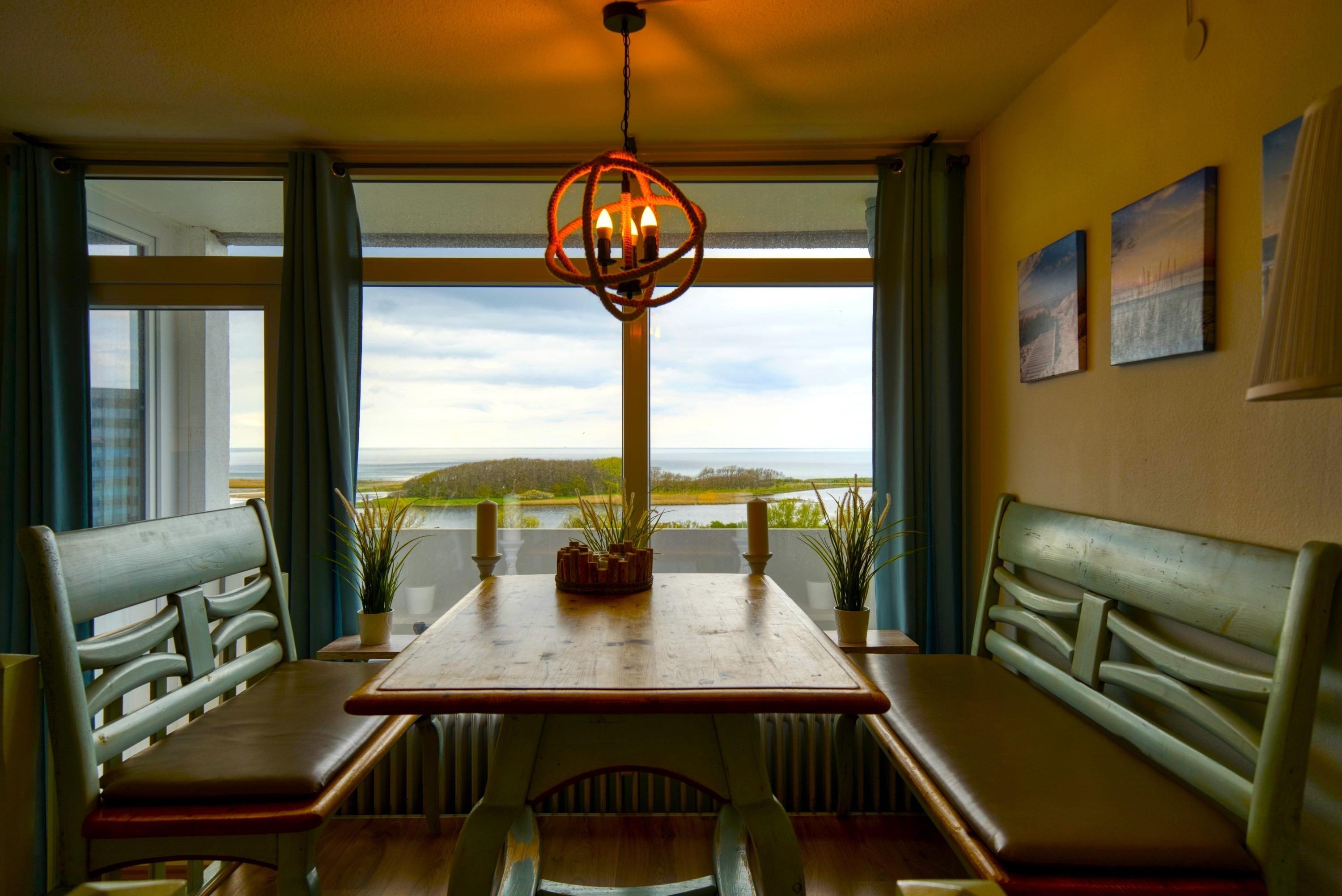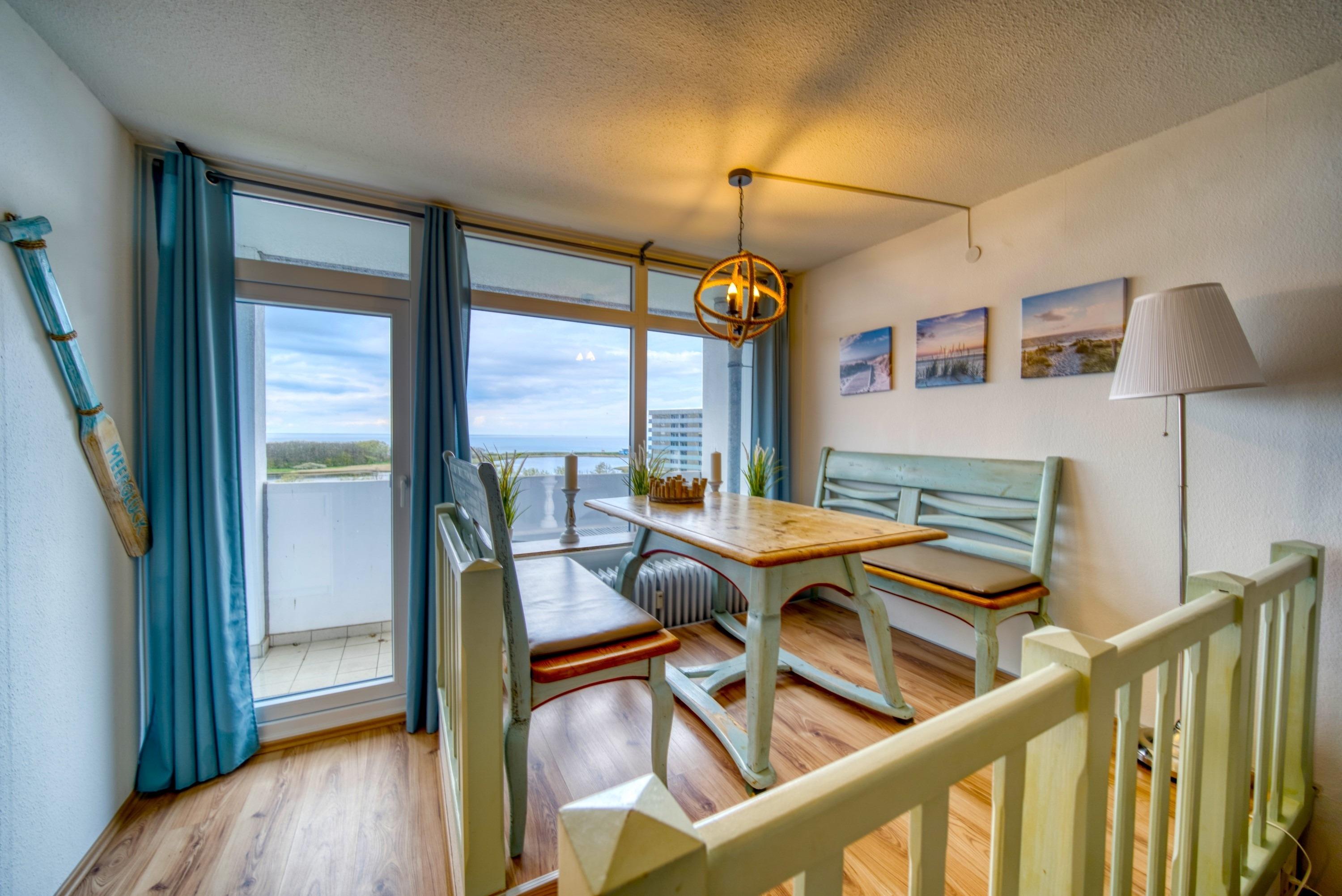 Die Wohnung verfügt über einen Wohn-/Schlafbereich mit Doppelbett, separates Schlafzimmer mit Etagenbett, Sofa und Smart-TV, sowie Esstisch auf dem Podest mit Balkonblick. Die Küche ist komplett ausgestattet mit Cerankochfeld, Backofen, Kühlschrank mit Gefrierfach, Geschirrspüler, Toaster und Filterkaffeemaschine. Modernes Bad mit Duschkabine. Kostenloses WLAN, Kinderreisebett, Balkon mit Ostseeblick, Fahrstuhl, abschließbare Fahrradräume. Strand ca. 300?m, Aktiv-Hus mit Schwimmbad, Sauna, Wellness, Shops und Gastronomie direkt im Ferienpark.