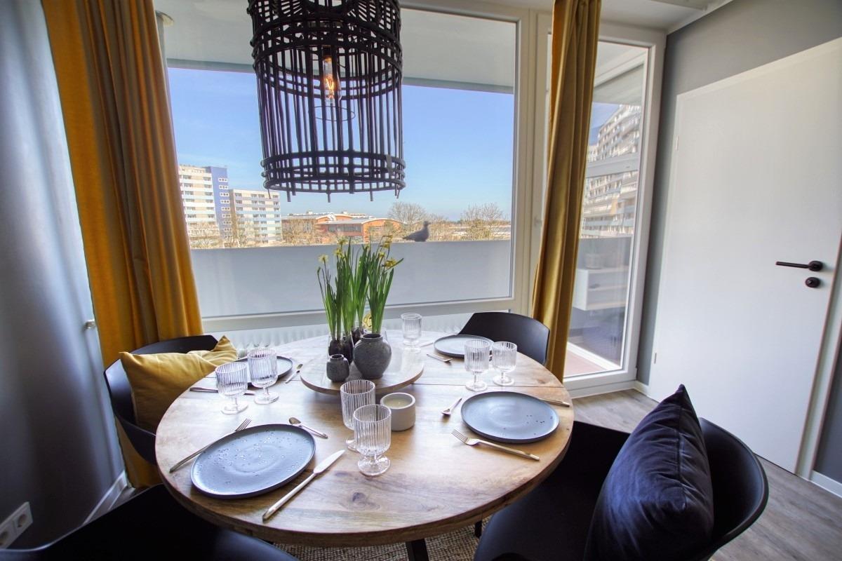 Moderne Ferienwohnung mit Balkon und Ostseeblick in Heiligenhafen, ideal für Familienurlaub nahe Strand und Stadtzentrum.