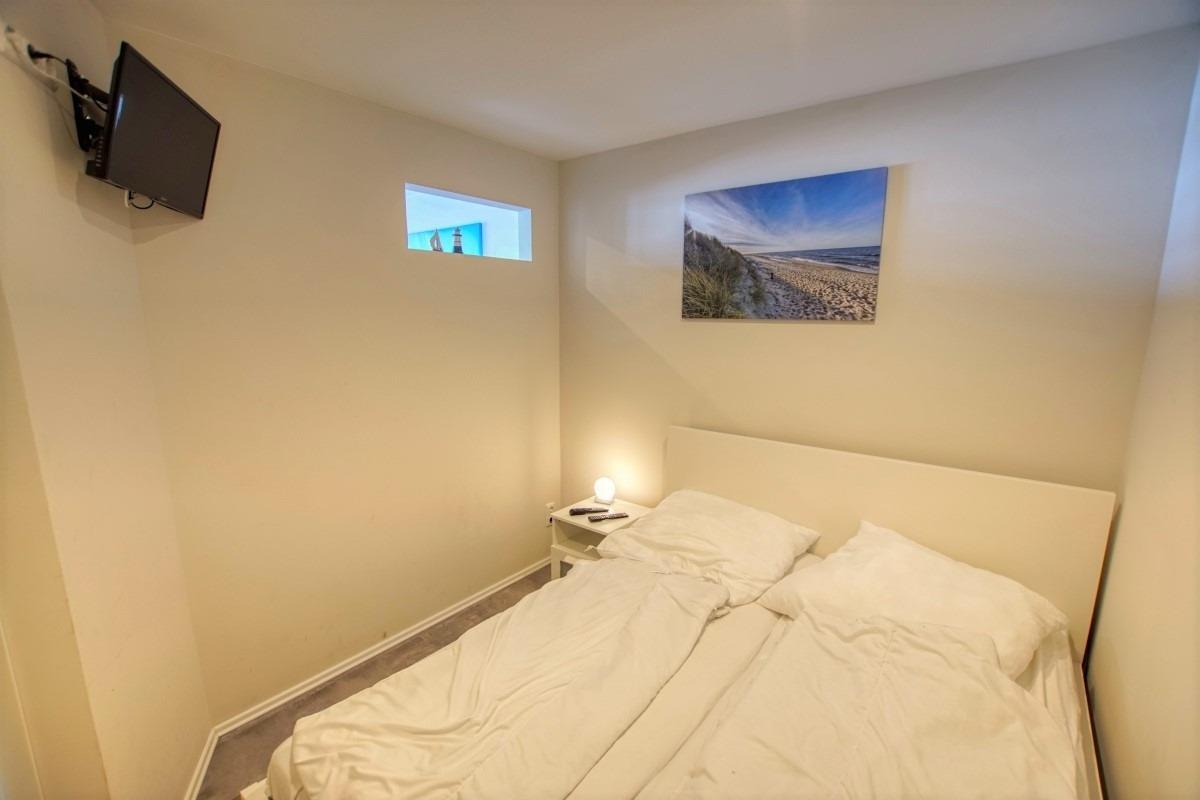 Schlafzimmer mit Doppelbett und eigenem TV