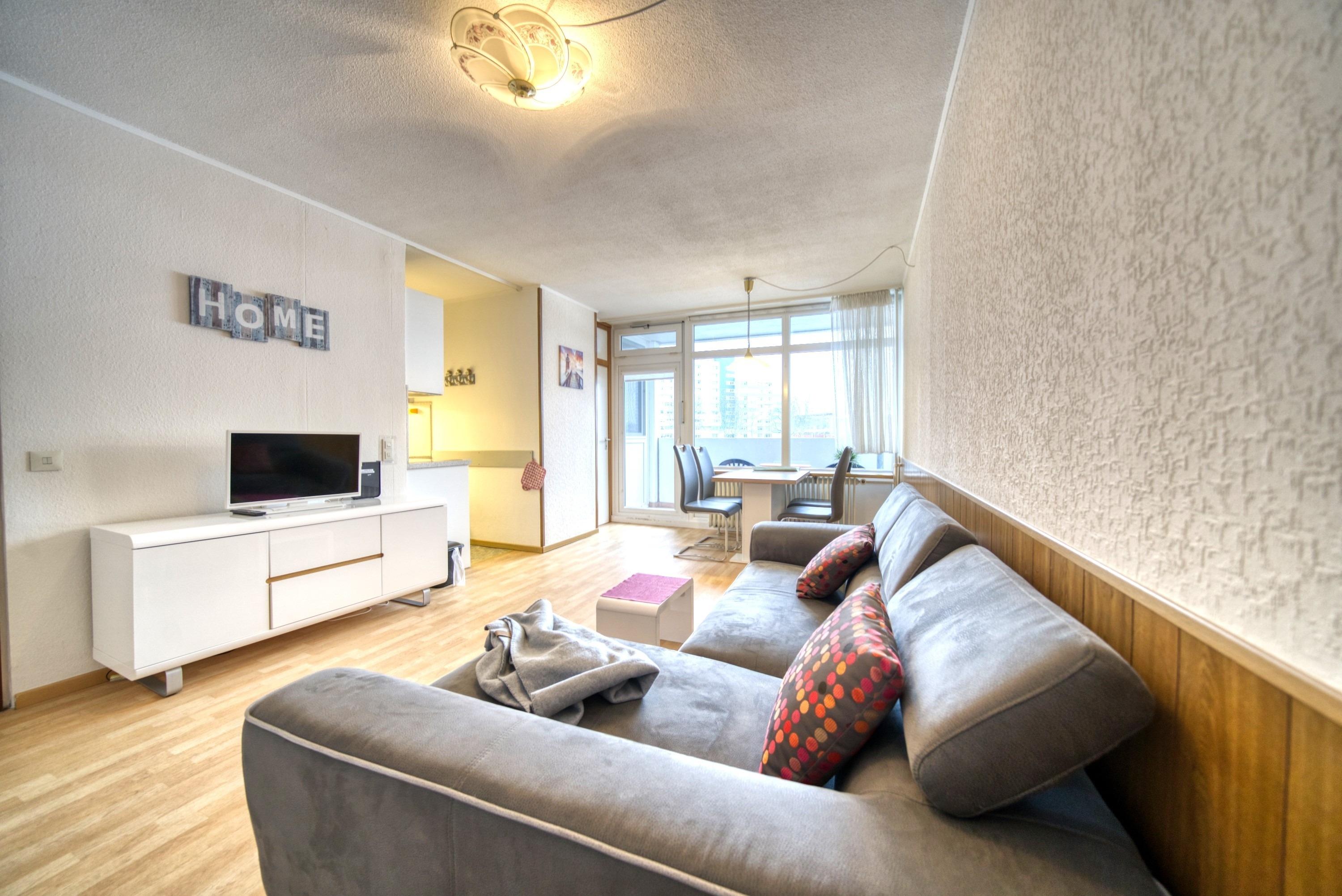 Die Wohnung verfügt über Wohn-Schlafbereich mit Doppelbett, Sofa, Esstisch und Smart-TV, separates Kinderzimmer mit Etagenbett, PVC- und Teppichboden, praktische Küchenzeile mit Ceranherd, Mikrowelle, Toaster, Filterkaffeemaschine und Wasserkocher sowie Bad mit Dusche und WC. Kostenfreies WLAN, Nichtraucher, keine Haustiere, EG – Fahrstuhl nicht nötig, Fahrradräume und kostenfreier Parkplatz vorhanden. Nur ca. 300?m bis zum Ostseestrand. Aktiv-Hus, Restaurants, Cafés und Einkaufsmöglichkeiten direkt erreichbar.