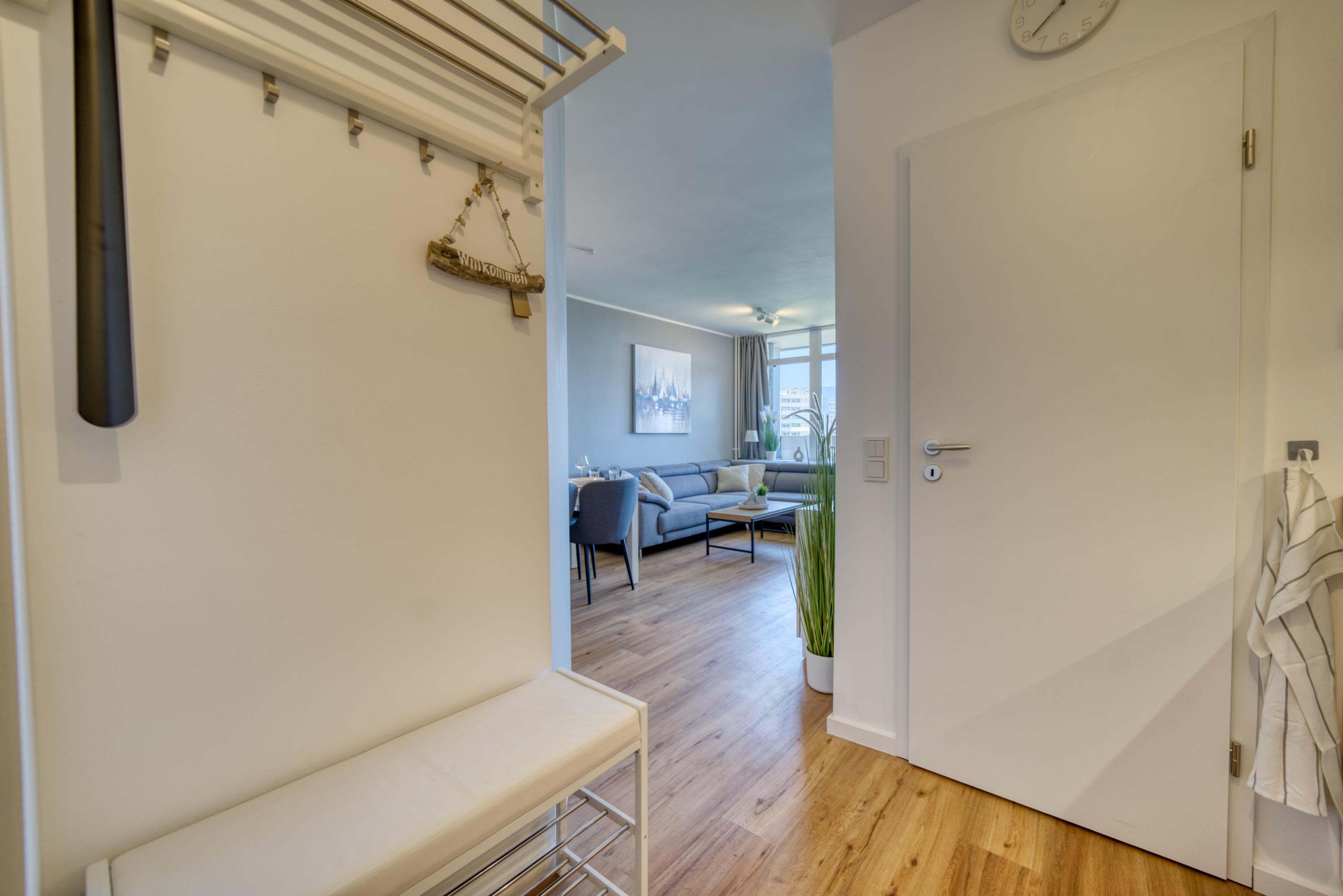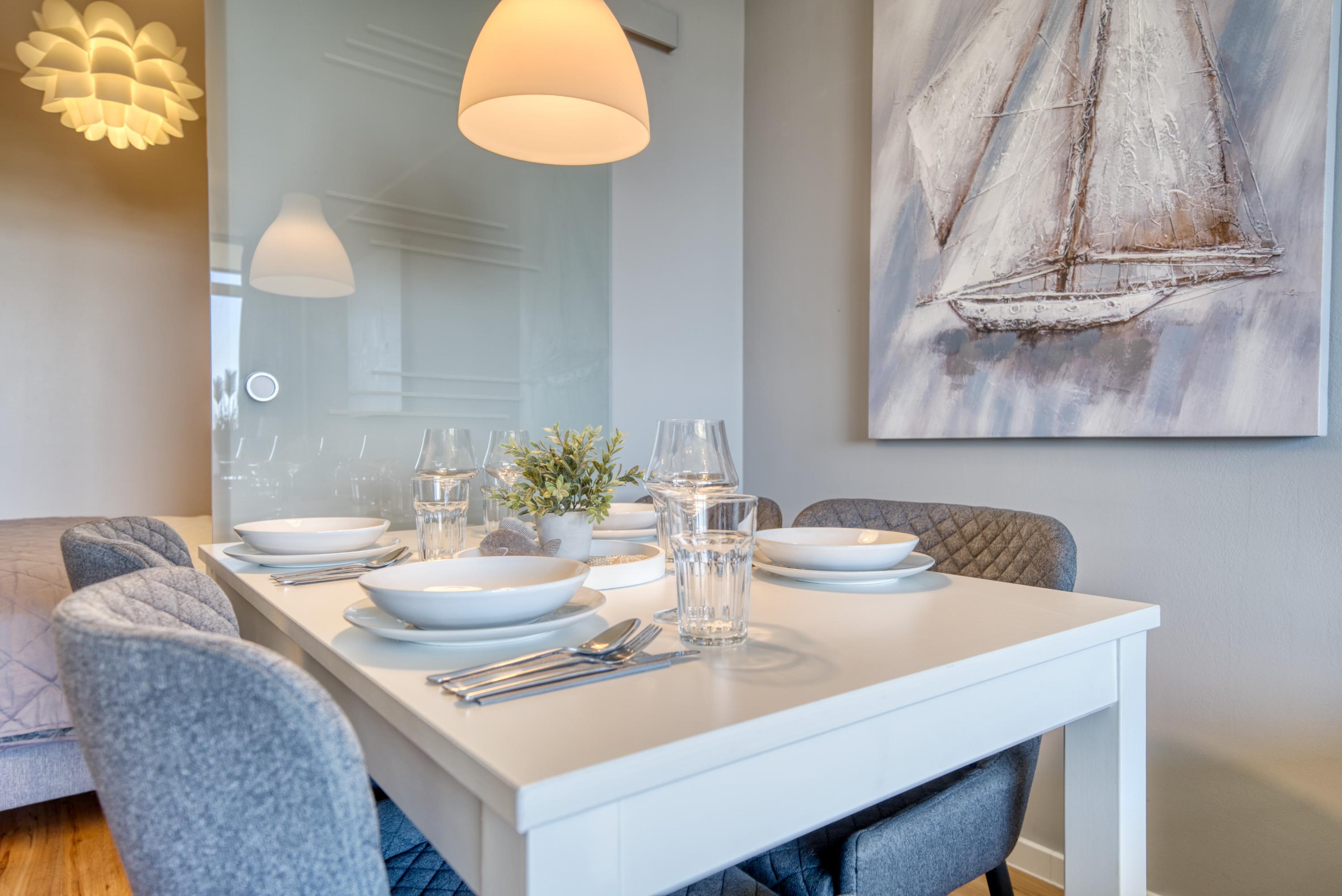 Moderne Ferienwohnung in Heiligenhafen mit Meerblick, Balkon und umfangreicher Ausstattung für erholsamen Urlaub.