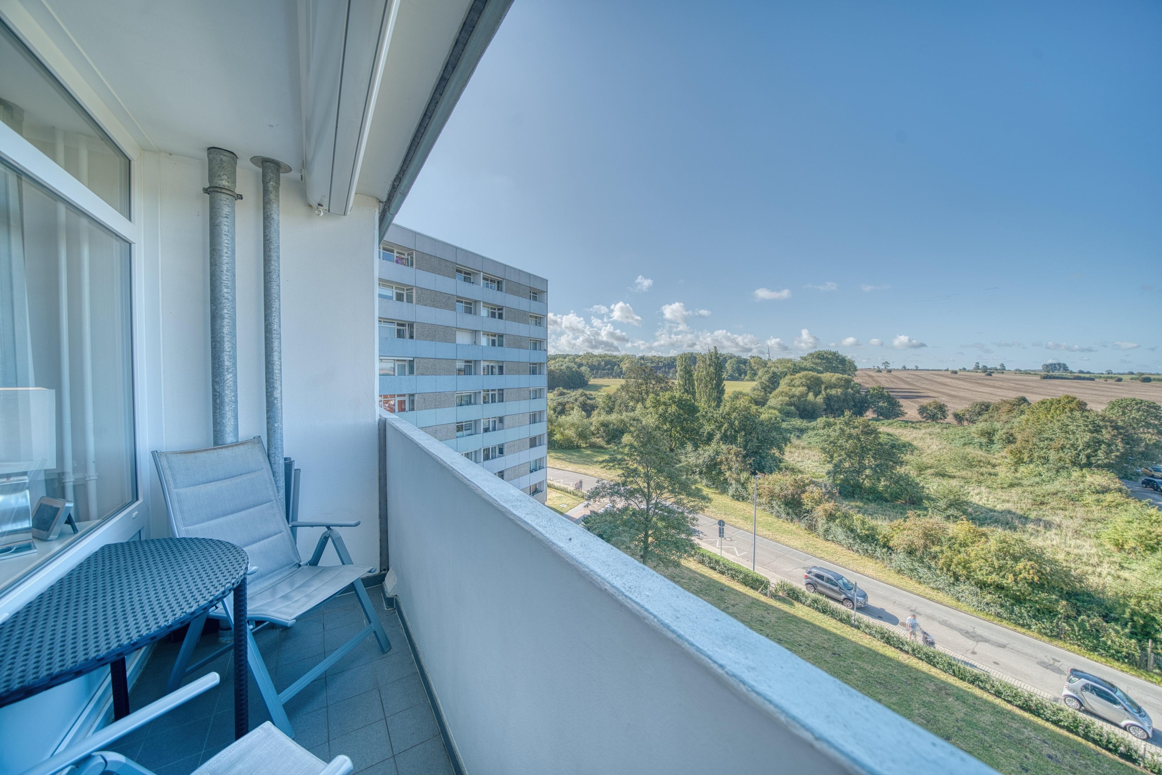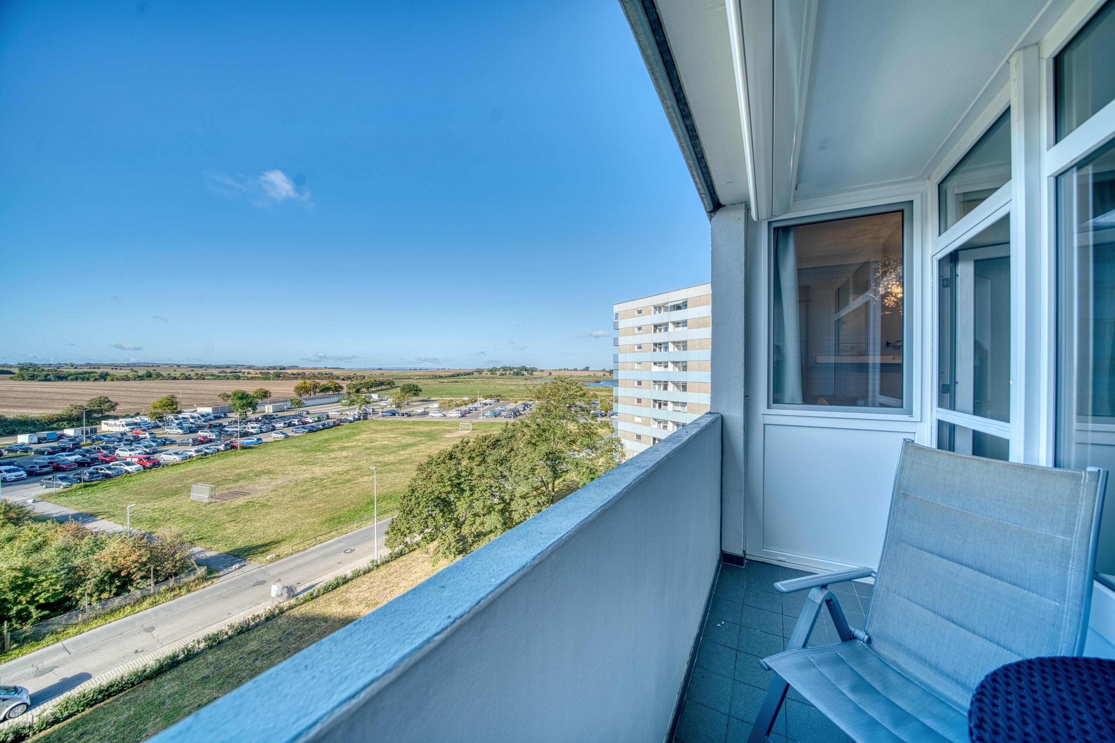 Balkon mit schönem Ausblick auf die weitläufigen Grünflächen