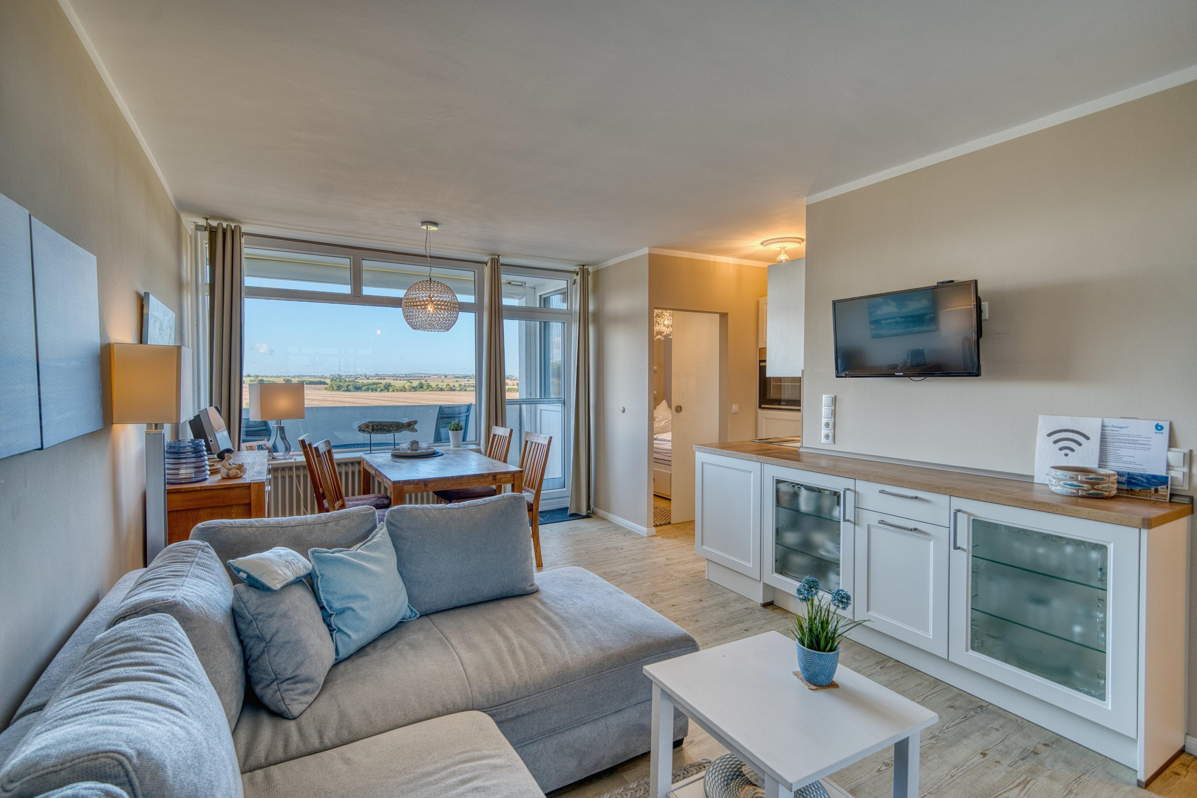 Willkommen in dieser charmanten Ferienwohnung im Ferienpark Heiligenhafen, Haus L, 5. Etage. Die 45?m² große Wohnung bietet Platz für bis zu 4 Personen und überzeugt durch eine durchdachte Raumaufteilung und ruhige Lage mit Blick auf die Grünwiesen.