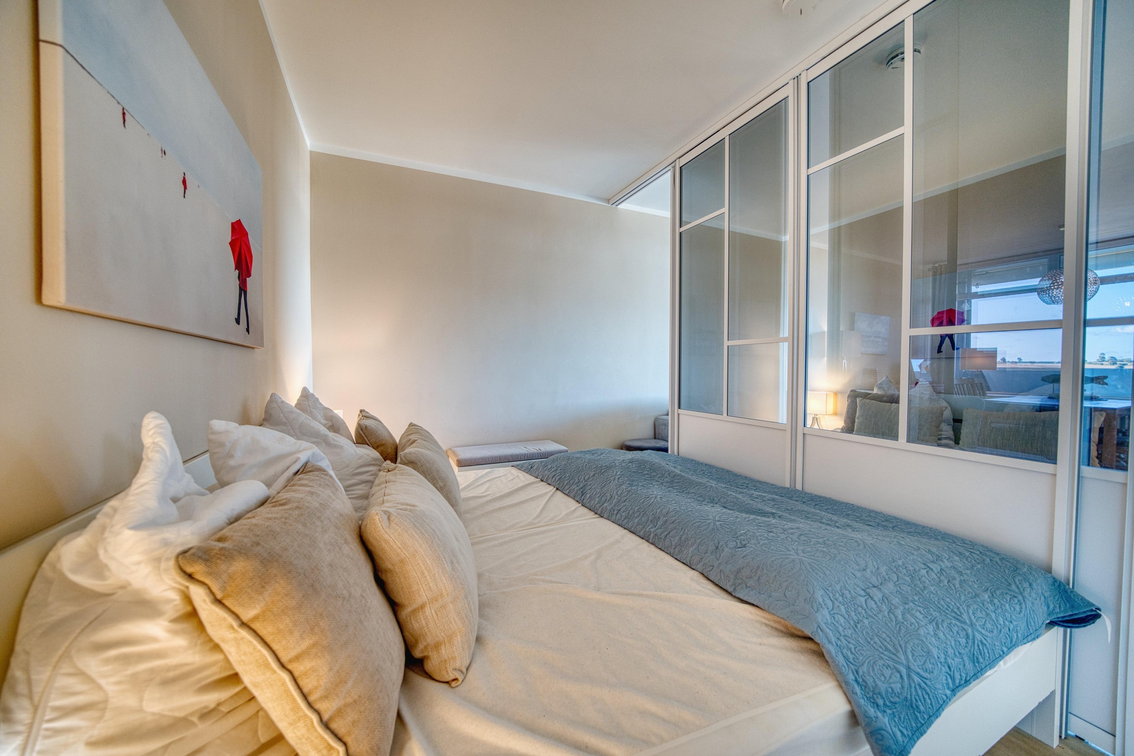 Schlafbereich mit Doppelbett, durch Schiebetüren abtrennbar – für mehr Privatsphäre