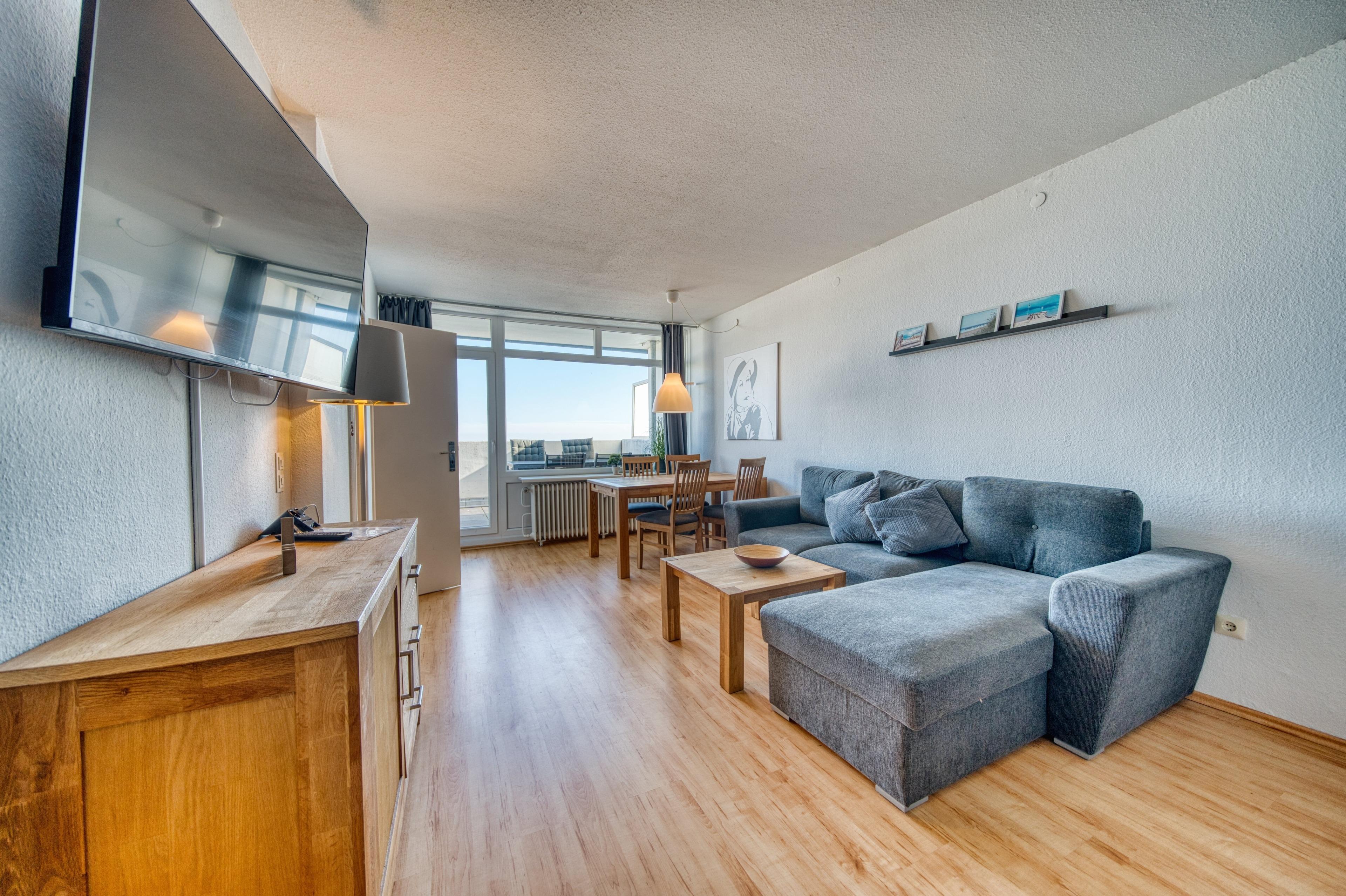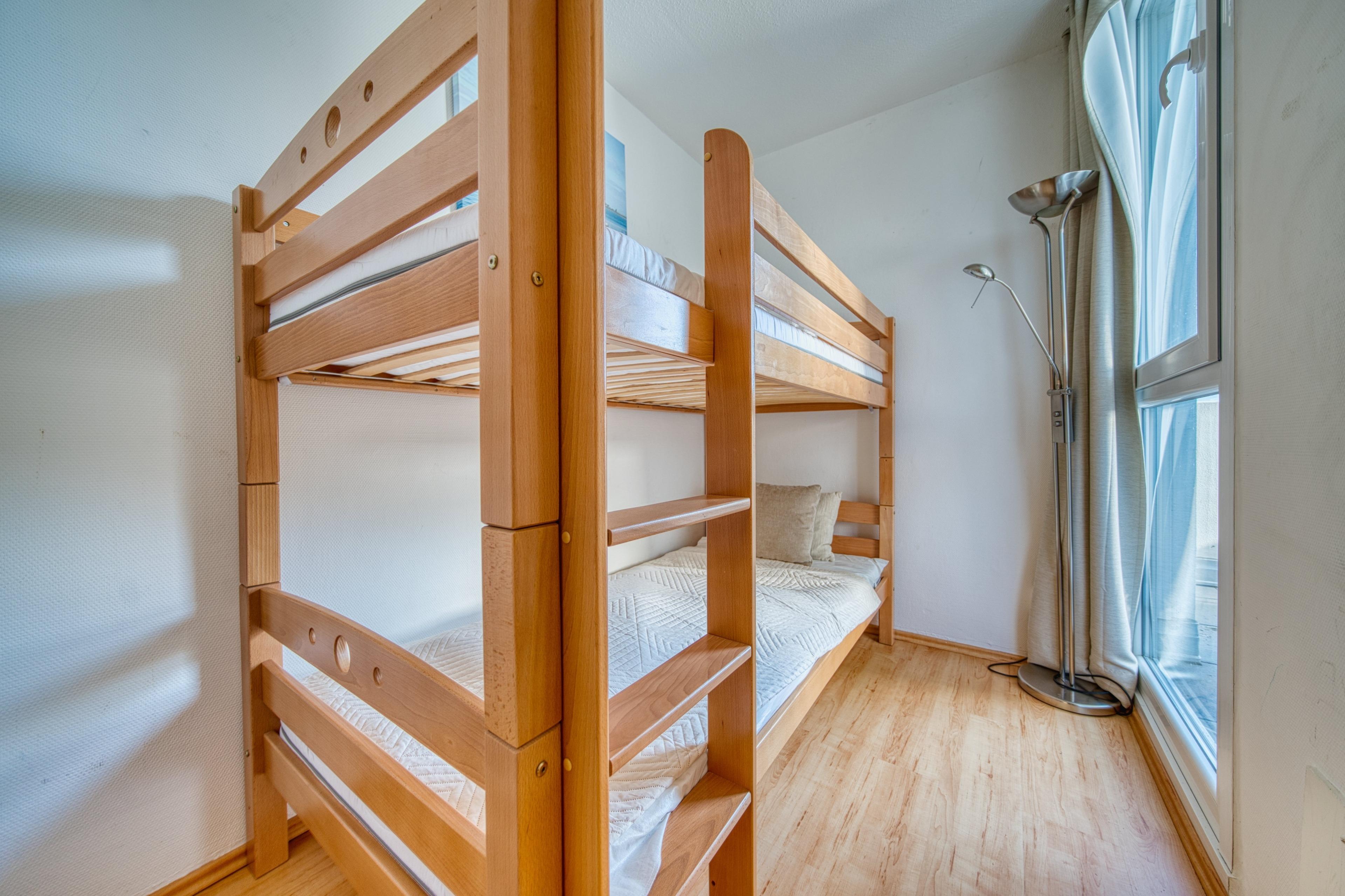 Wohn-Schlafzimmer mit Doppelbett, Eckcouch, Esstisch und TV. Großer Balkon mit Meerblick. Separates Kinderzimmer mit Etagenbett. Küche mit 4-Plattenherd, Kühlschrank/Gefrierfach, Mikrowelle, Wasserkocher und Kaffeemaschine. Kostenloses WLAN. Nichtraucher, keine Haustiere, Fahrstuhl, kostenfreier Parkplatz, abschließbare Fahrradräume. Strand ca. 300?m, Geschäfte, Restaurants und Aktiv-Hus mit Schwimmbad, Sauna, Wellnessbereich und Kinderspielwelt in direkter Nähe. Ideal für entspannte Ostseeferien.
