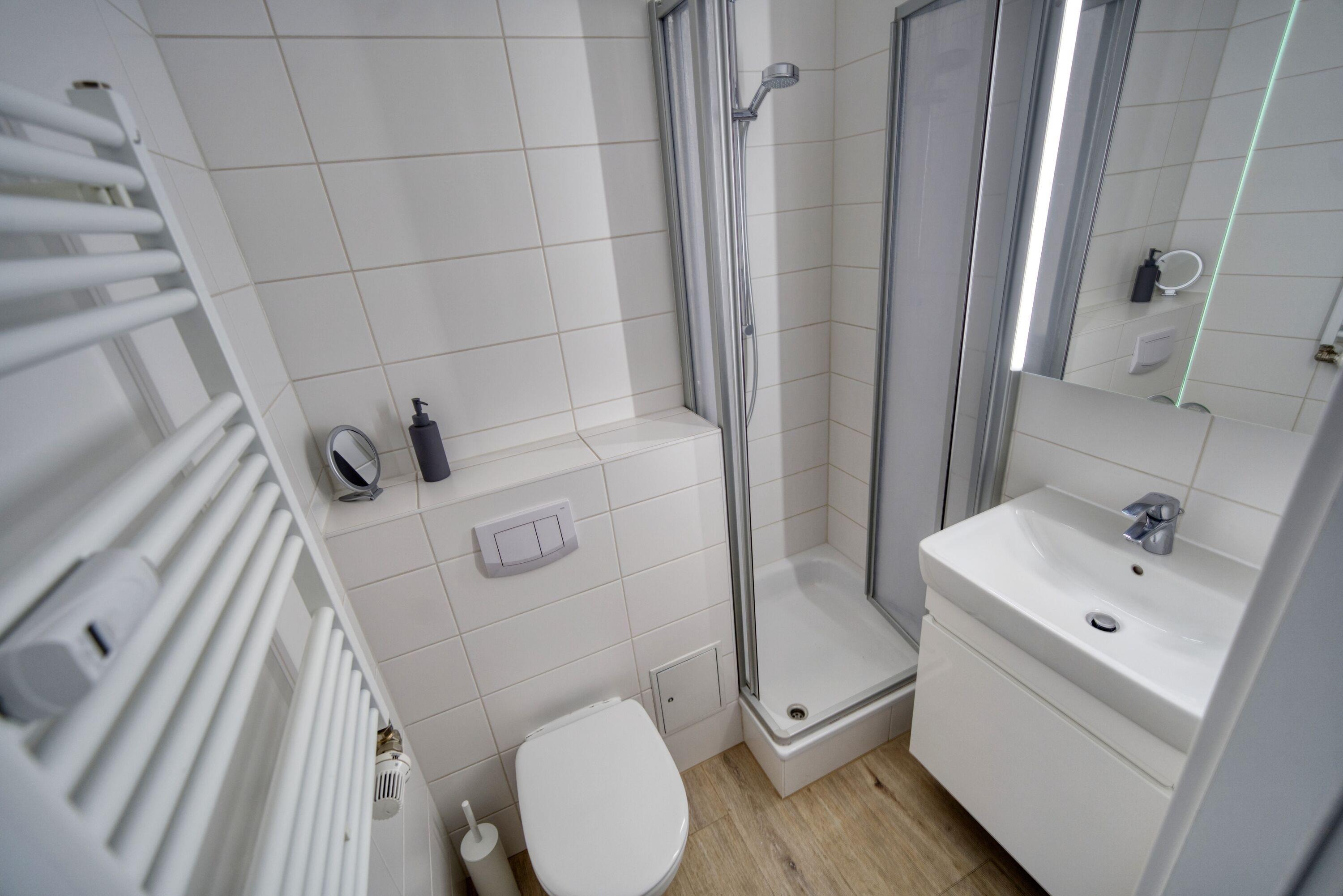 Helle Ferienwohnung 0M0501, Haus M, 5. Etage, ca. 45?m², für bis zu 4 Personen. Wohnbereich mit Smart-TV, Sofa und Verdunklung, Schlafbereich mit Doppelbett, separates Schlafzimmer mit Etagenbett. Essbereich im Wohnraum. Balkon mit Binnensee- und Yachthafenblick, Vinylboden. Küche mit Induktionskochfeld, Backofen, Geschirrspüler, Kühlschrank mit Gefrierfach, Kaffeemaschine, Geschirr für 4. Bad mit Dusche, WC, Handtuchtrockner. Bonus: Highspeed-WLAN, Saisonstrandkorb (Mai–Sept.). Nichtraucher, keine Haustiere, Fahrstuhl, abschließbare Fahrradräume, Strand ca. 300?m, Parkplatz kostenlos. Nähe Aktiv-Hus, Restaurants, Geschäfte, Schwimmbad, Sauna, Kinderspielwelt.