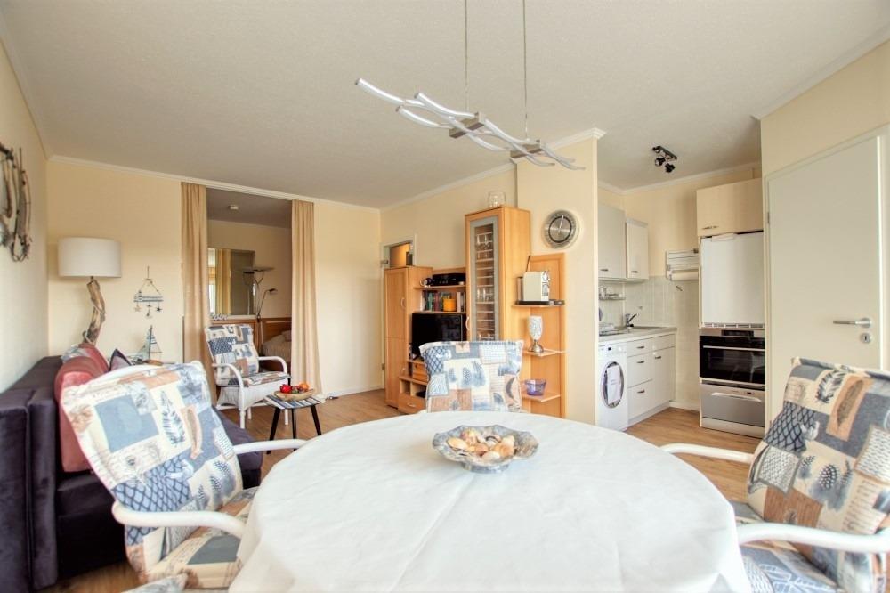 Die Wohnung ist für bis zu 4 Personen geeignet, Nichtraucher und haustierfrei. WLAN (2?MB) ist inklusive. Weitere Informationen zur Einrichtung und Geräteanleitungen finden Sie in der Begrüßungsmappe. Der Ferienpark bietet Läden, Aktiv-Hus mit Schwimmbad, Sauna, Wellnessbereich und Kinderspielwelt. Der Strand ist ca. 300?m entfernt und über die Promenade erreichbar.