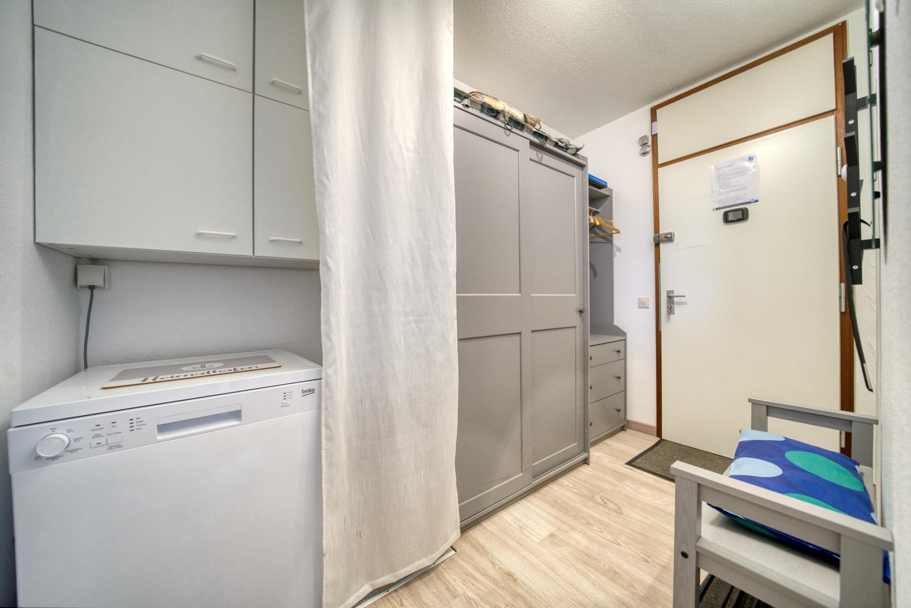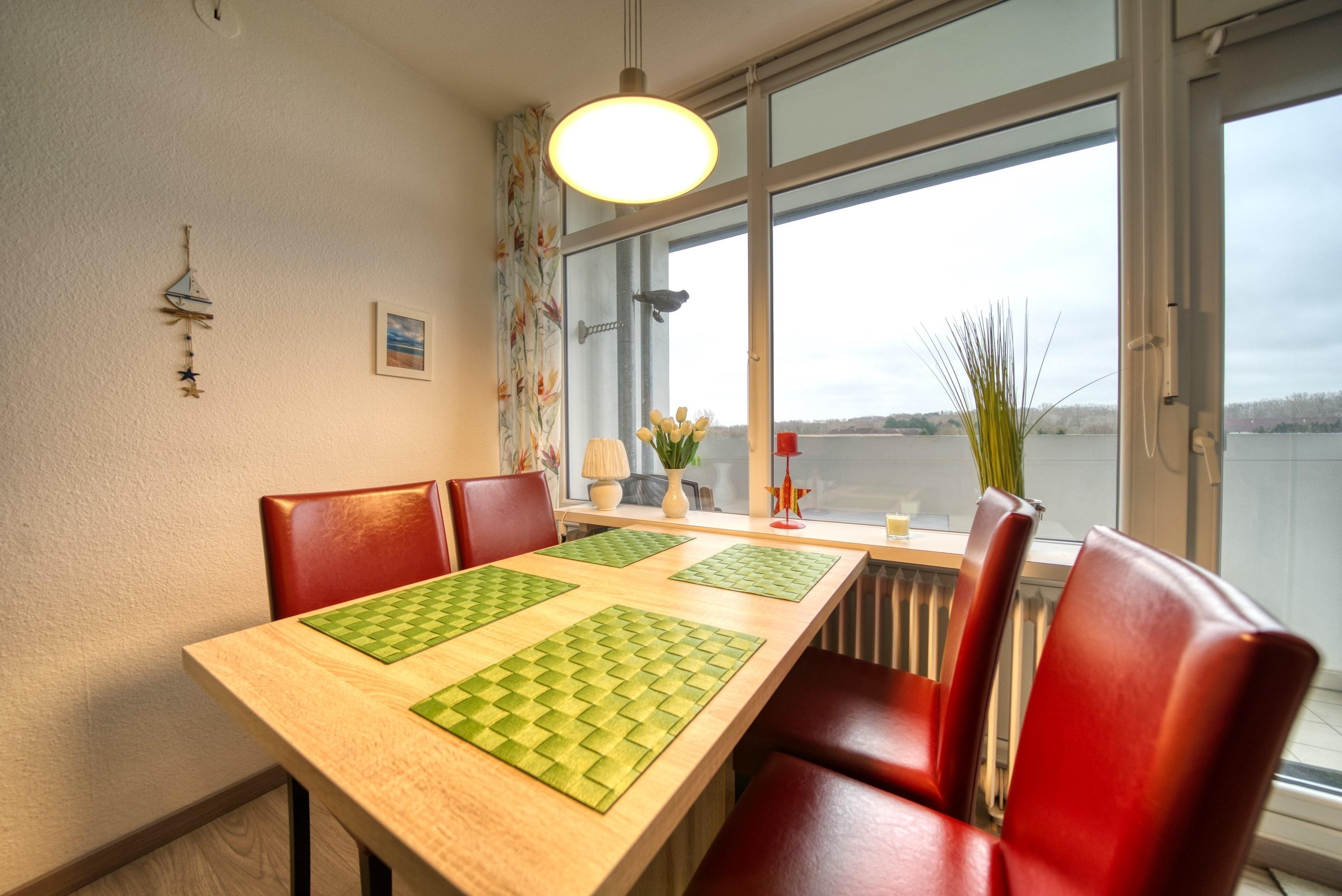 Wohn-Schlafraum mit Doppelbett, Ecksofa, Esstisch vor dem Balkon und Smart-TV. Separates Schlafzimmer mit zwei Einzelbetten und eigenem TV. Küche mit Ceranherd, Kühlschrank, Geschirrspüler, Mikrowelle, Toaster, Wasserkocher und Kaffeemaschine. Bad mit Dusche, WC und Handtuchtrockner. Balkon mit Naturblick. WLAN inklusive. Nichtraucher, keine Haustiere, Fahrstuhl und Fahrradräume vorhanden. Ca. 300?m bis zum Strand, Parkplatz hinter dem Ferienpark. Ferienpark mit Läden, Aktiv-Hus (Schwimmbad, Sauna, Wellness), Kinderspielwelt und vielfältigen Freizeitmöglichkeiten.