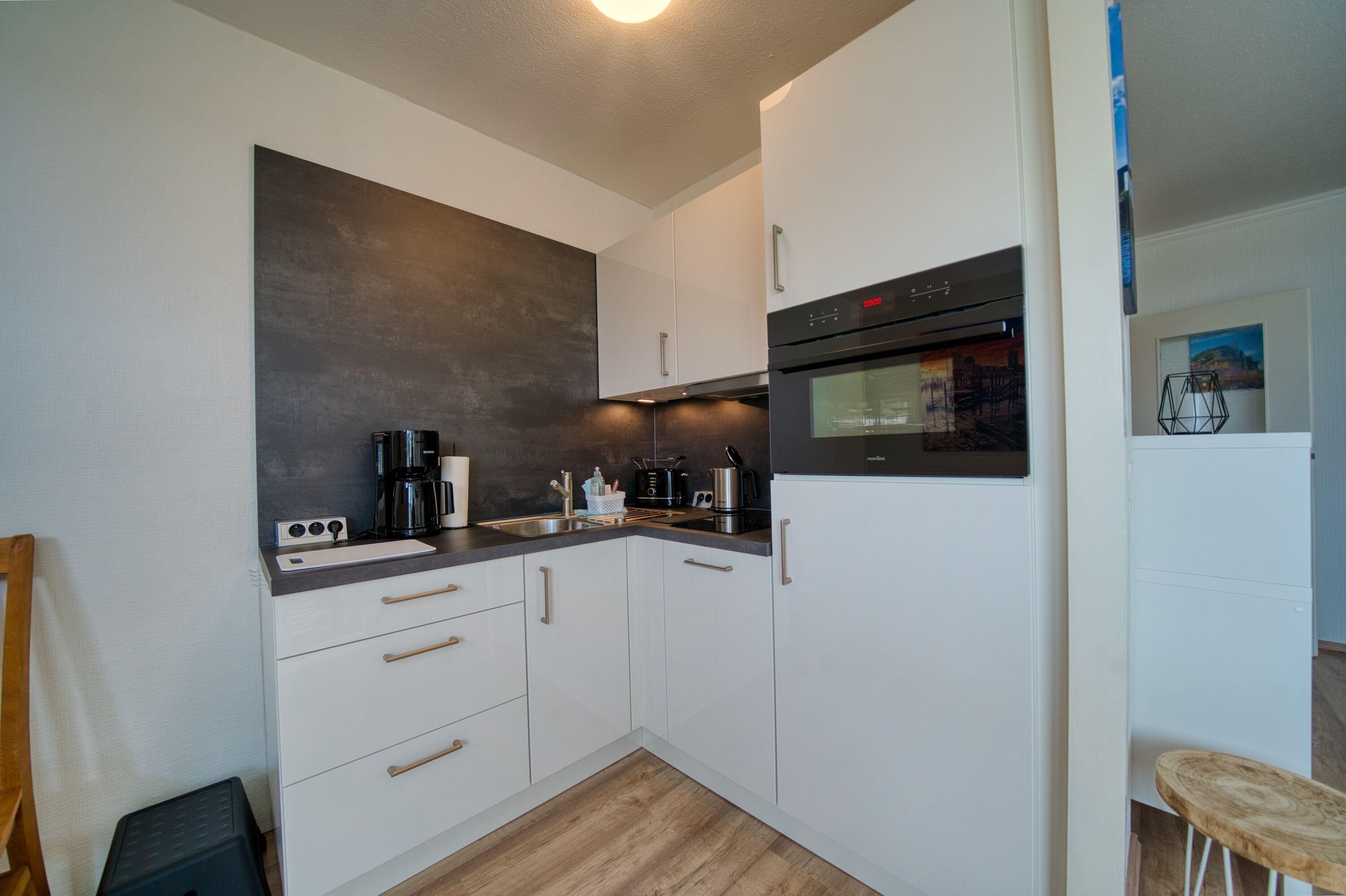 Wohn-/Schlafzimmer mit zwei Einzelbetten, Schlafcouch, Flachbild-TV, Esstisch. Küche mit Ceranfeld, Backofen, Mikrowelle, Geschirrspüler, Kühlschrank, Kaffeemaschine, Wasserkocher, Toaster. Bad mit Dusche, WC und Handtuchtrockner. Balkon mit Grünblick. Nichtraucherwohnung, keine Haustiere, WLAN inklusive, Fahrstuhl, Fahrradräume. Strand ca. 300?m, Parkplatz gratis. Perfekt für Ruhe, Komfort und erholsame Ostsee-Tage.