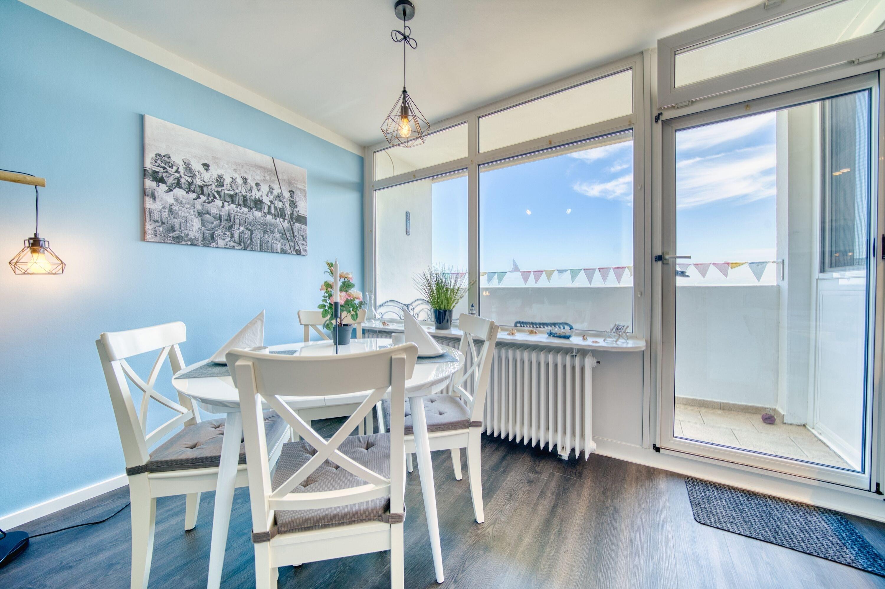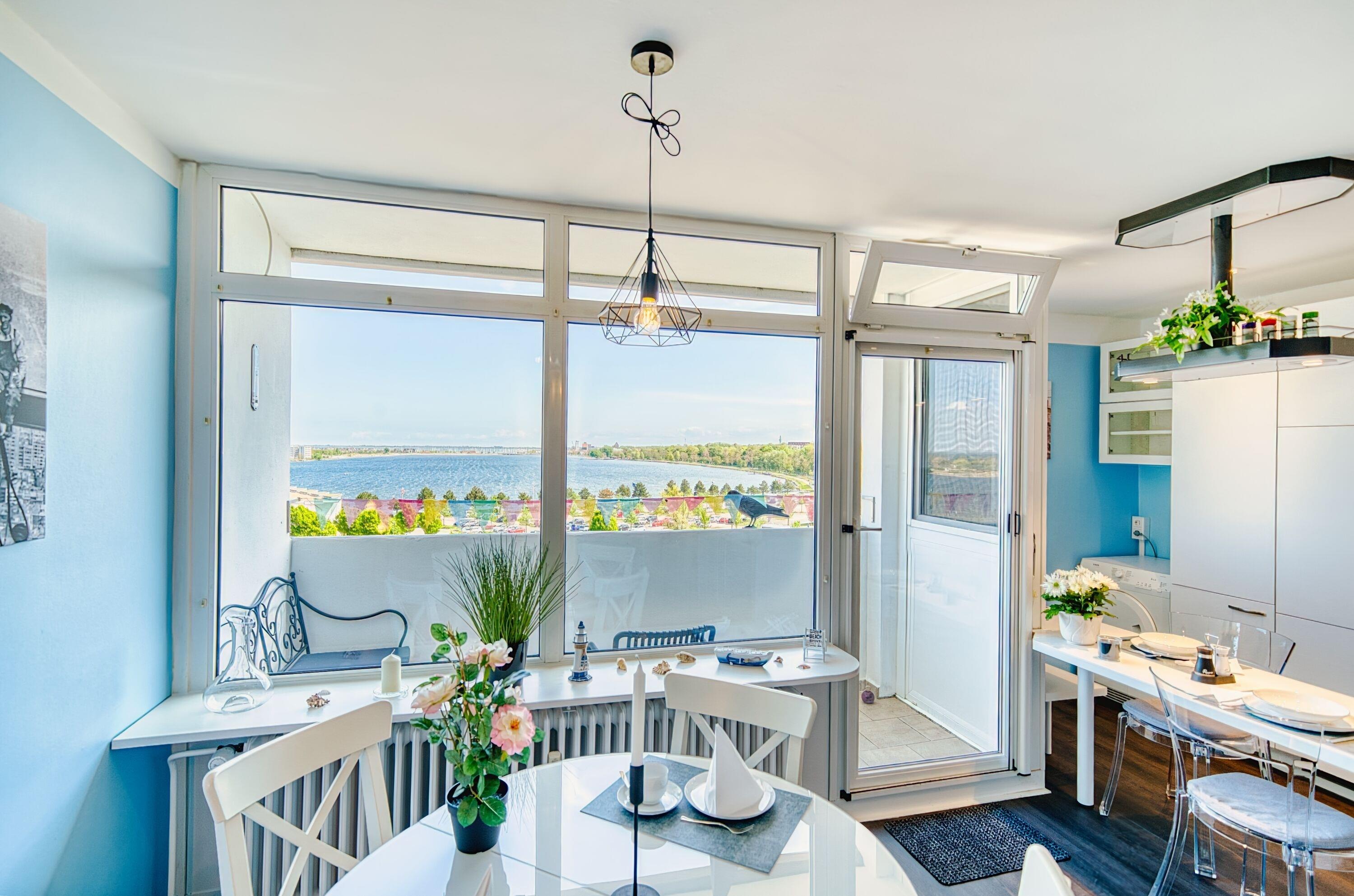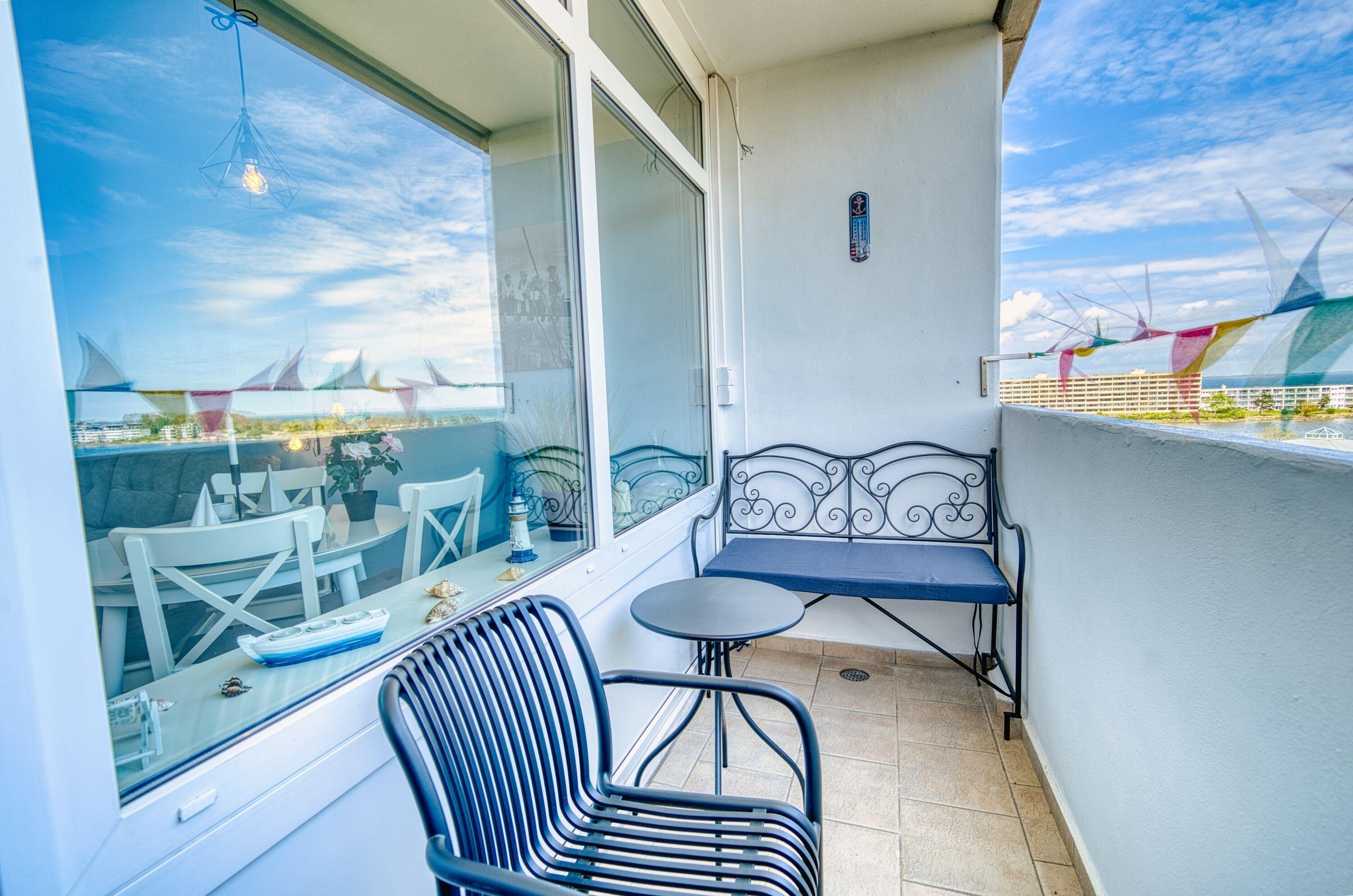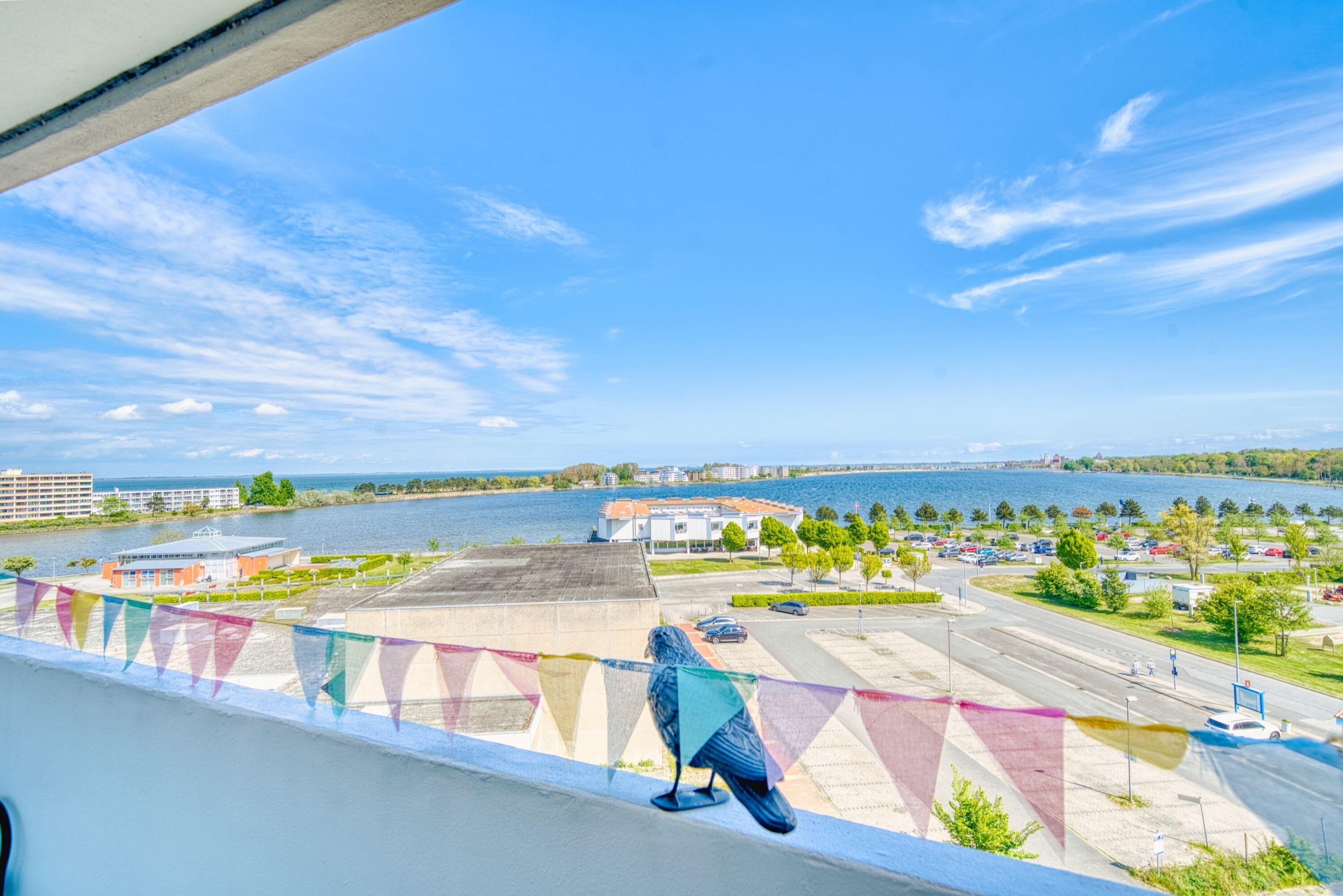 Genießen Sie Ihren erholsamen Ostseeurlaub in dieser kernsanierten 2-Zimmer-Ferienwohnung im Haus Q, 6. Etage, ideal für 2 Personen auf 45 m² Wohnfläche. Vom sonnigen Balkon aus genießen Sie einen herrlichen Ausblick über den Binnensee bis hin zum Yachthafen und zur Stadt – ein echtes Highlight zu jeder Tageszeit.