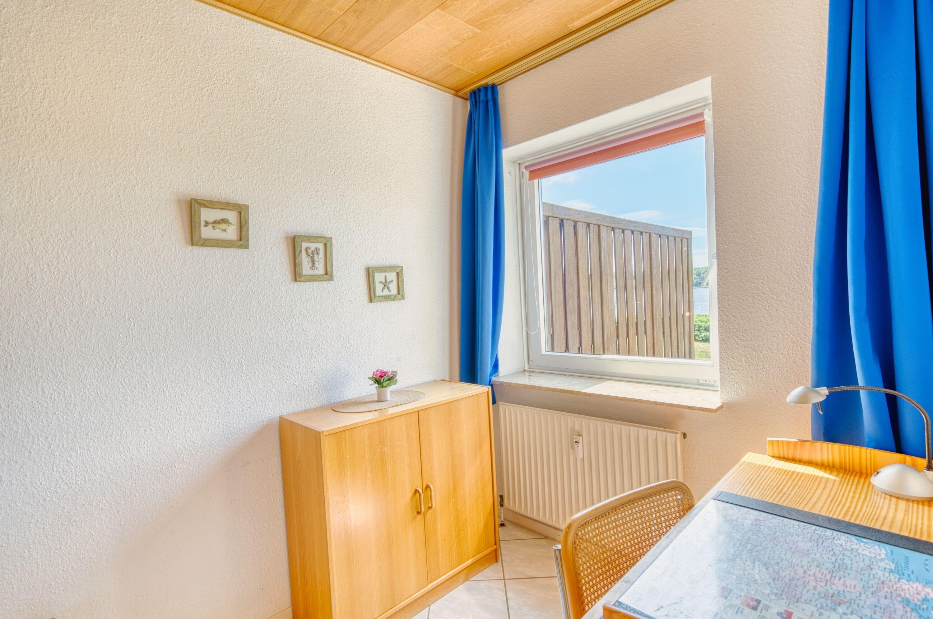 Erdgeschosswohnung auf der Südseite mit Terrasse und Blick auf den Binnensee, für bis zu 4 Personen.Wohnbereich mit Sitzecke, separates Kinderzimmer mit Etagenbett, Küche mit Herd, Backofen und Mikrowelle, modernes Bad mit Dusche/WC.Kostenloses WLAN, gemeinschaftlicher Waschraum mit Waschmaschine/Trockner, nur ca. 2 Gehminuten zum Strand.