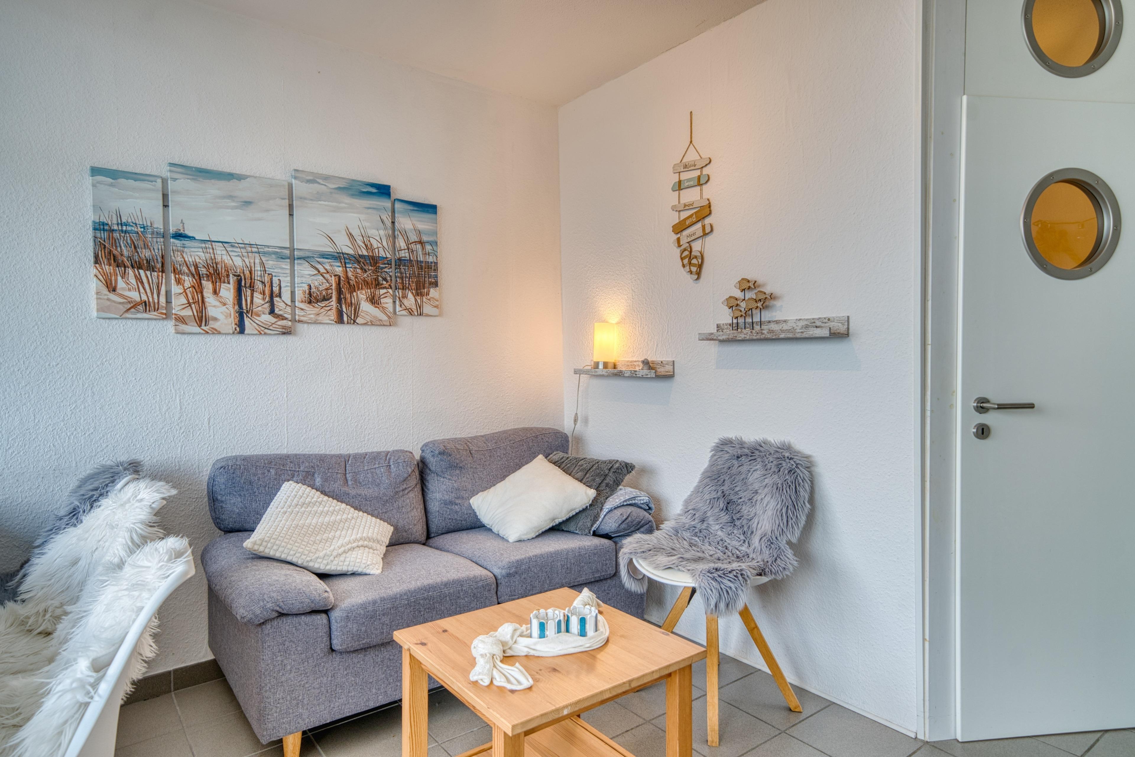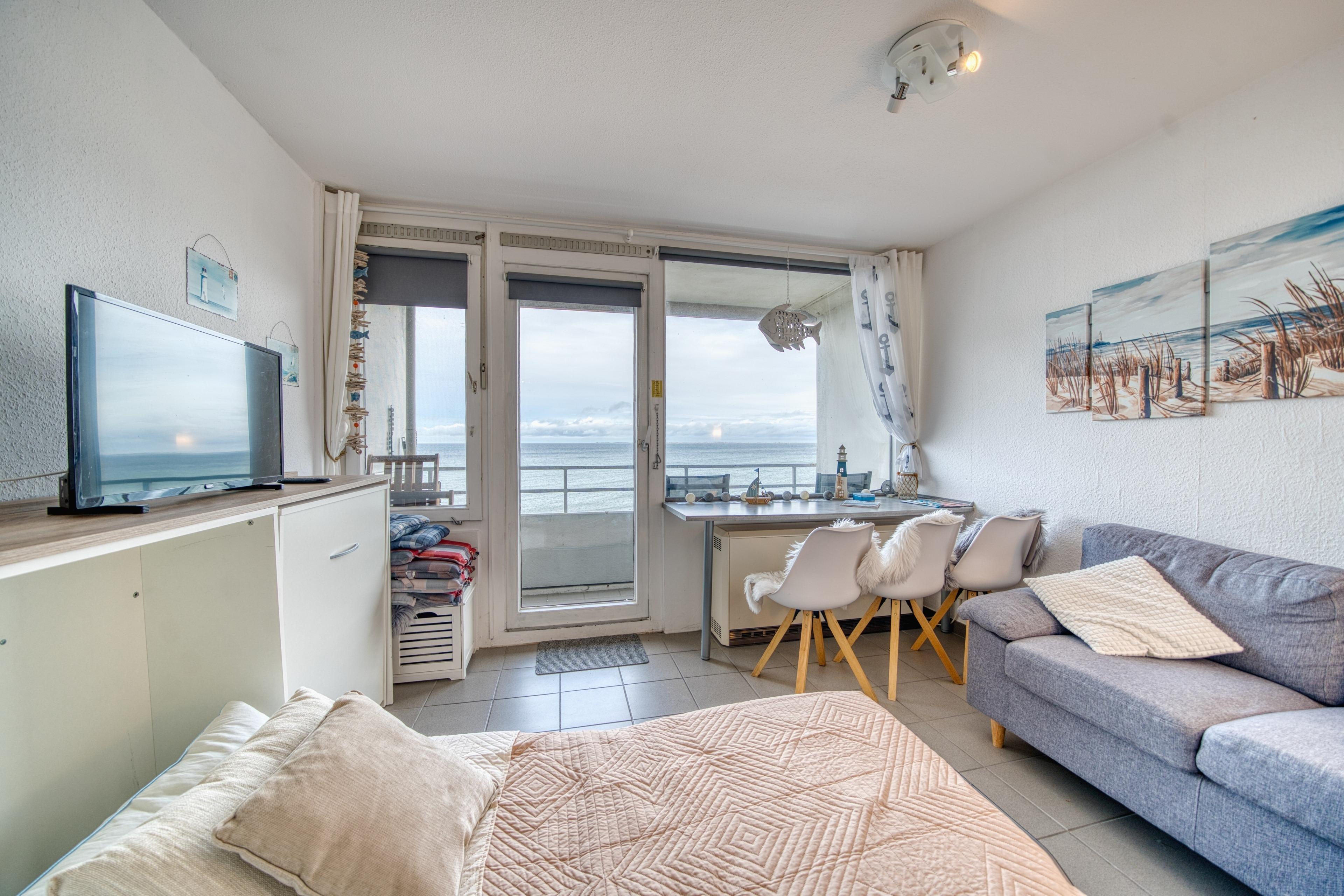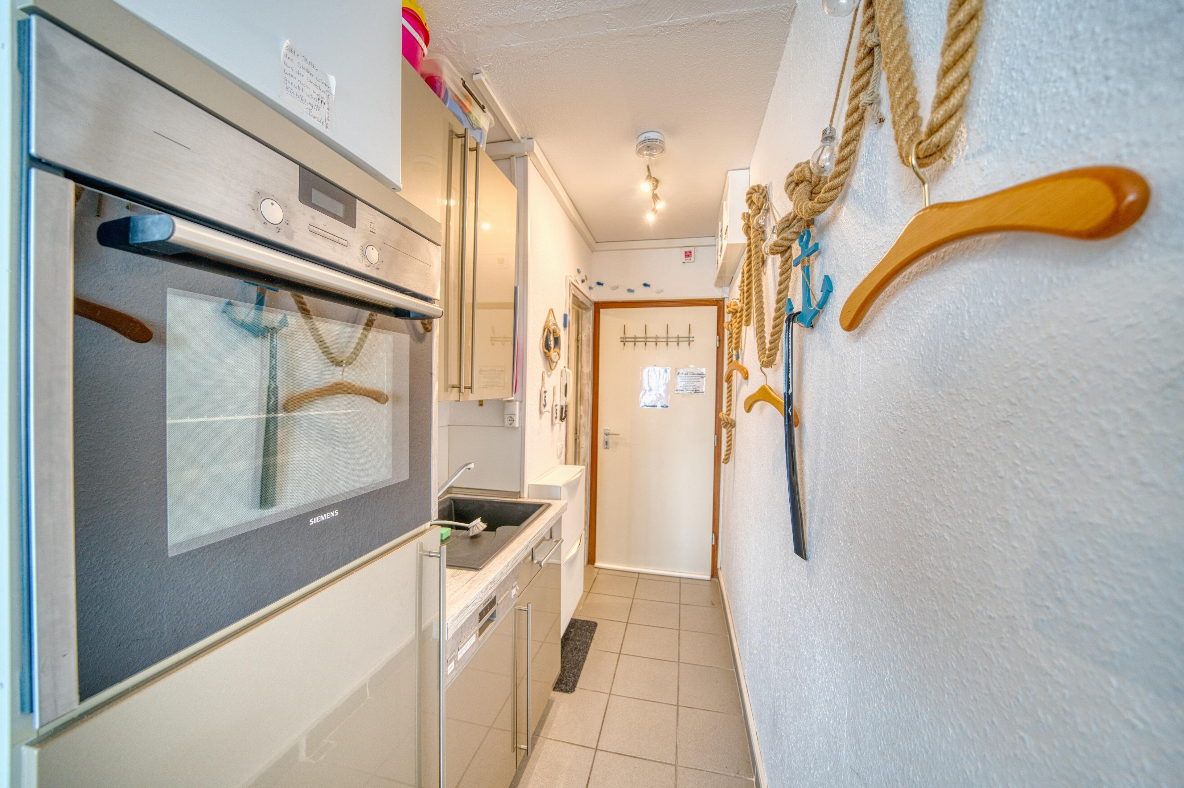 Die Wohnung bietet Platz für bis zu 4 Personen. Wohnbereich mit zwei Schrankbetten, TV und Verdunkelungsrollos, separates Schlafzimmer mit Doppelbett und TV/WLAN, moderne Küche mit Ceranfeld, Geschirrspüler, Mikrowelle, Gefrierschrank, Backofen, Filterkaffeemaschine und Senseo-Padmaschine. Bad mit Dusche und WC, Essplatz mit Meerblick. Ein Spieleschrank mit Duplo, Lego, Spielen und Strandspielzeug sorgt für Unterhaltung.
