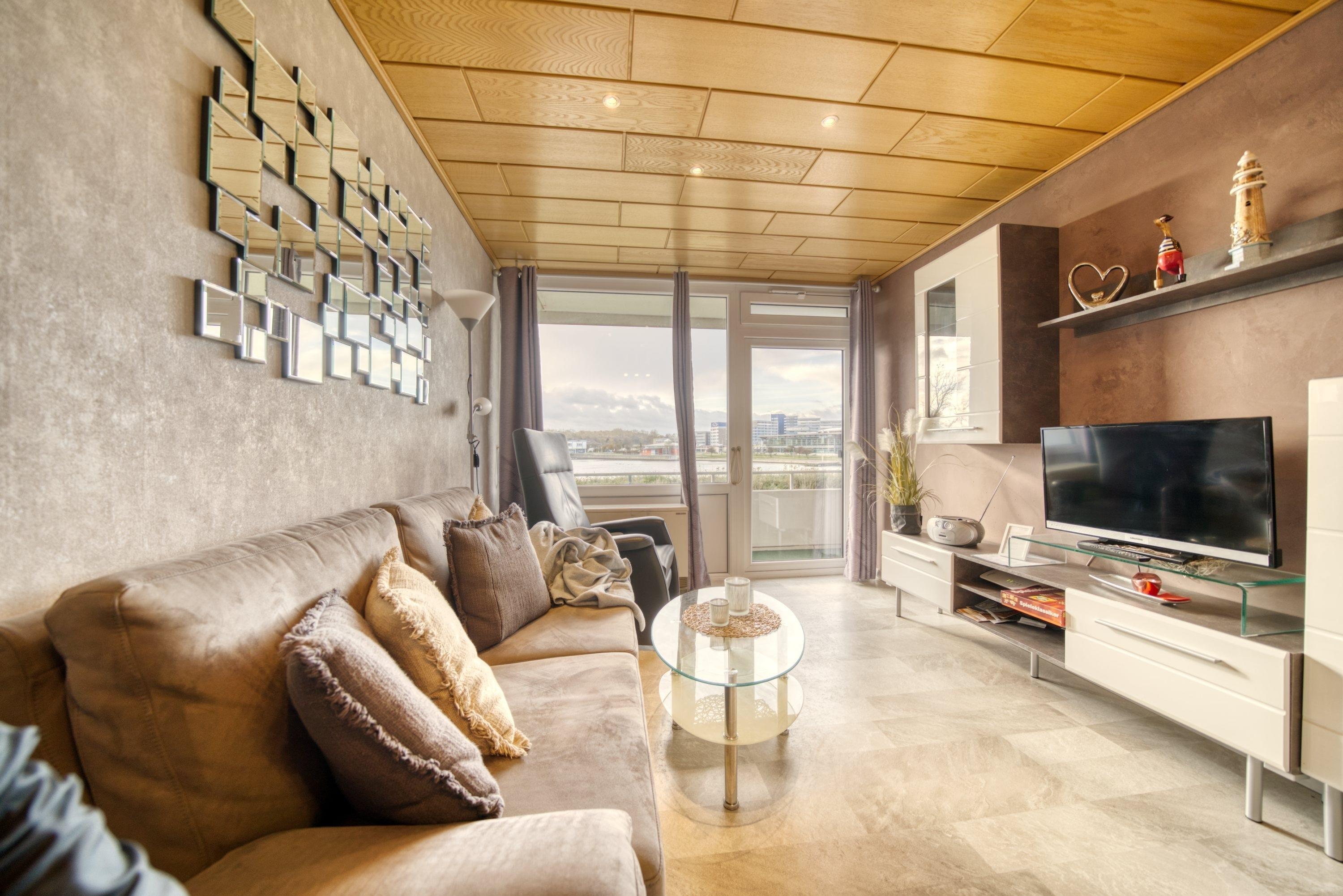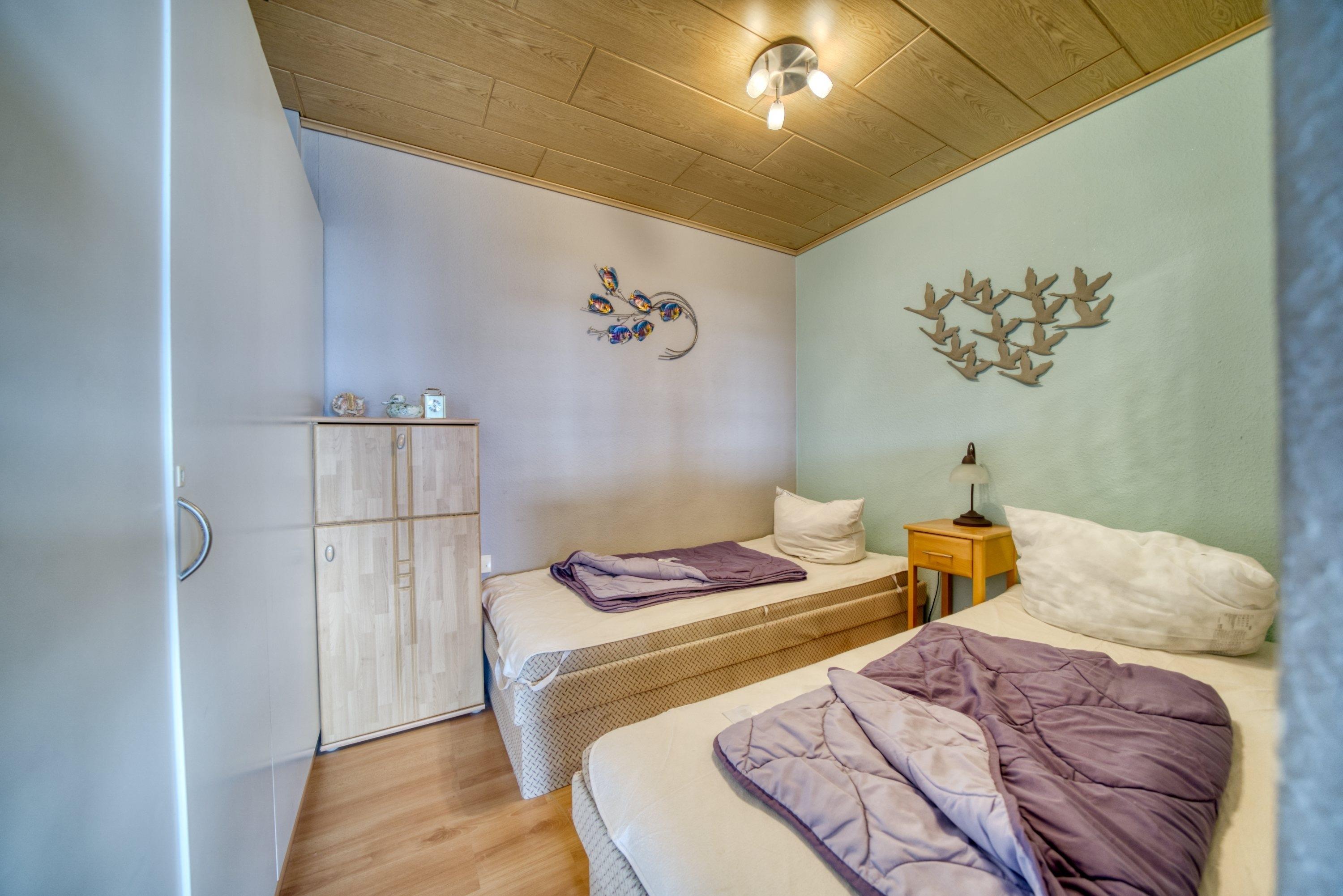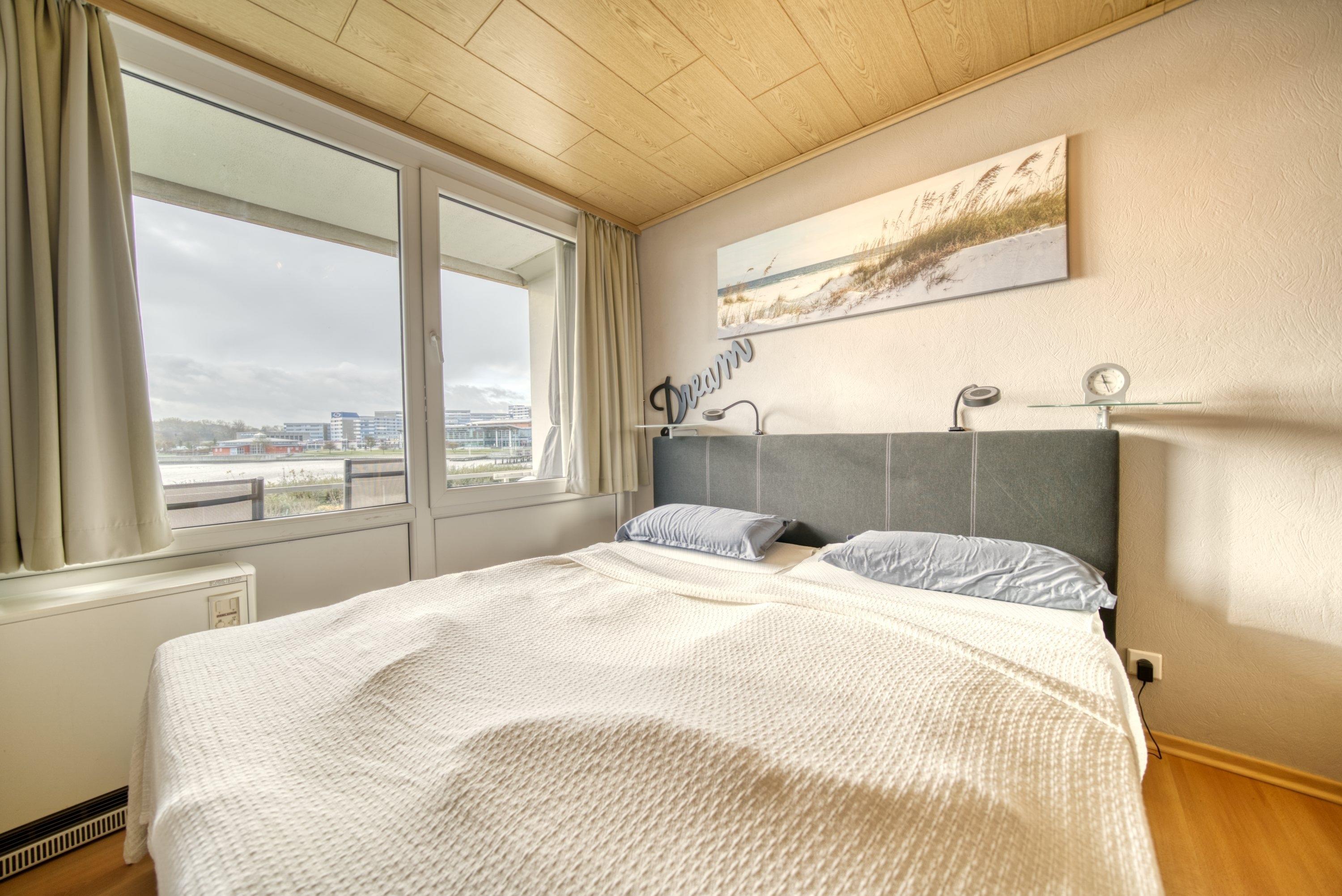 Zwei separate Schlafzimmer (Doppelbett + 2 Einzelbetten), Wohn-/Essbereich mit Sitzecke, voll ausgestattete Küche (Ceranherd, Mikrowelle, Kühlschrank, Wasserkocher, Kaffeemaschine, Toaster), Badezimmer mit Dusche/WC, Balkon mit Blick auf den Binnensee. Laminatboden, WLAN inklusive. Fahrstuhl im Haus, eigener Pkw-Stellplatz, Gemeinschafts-Fahrradkeller.