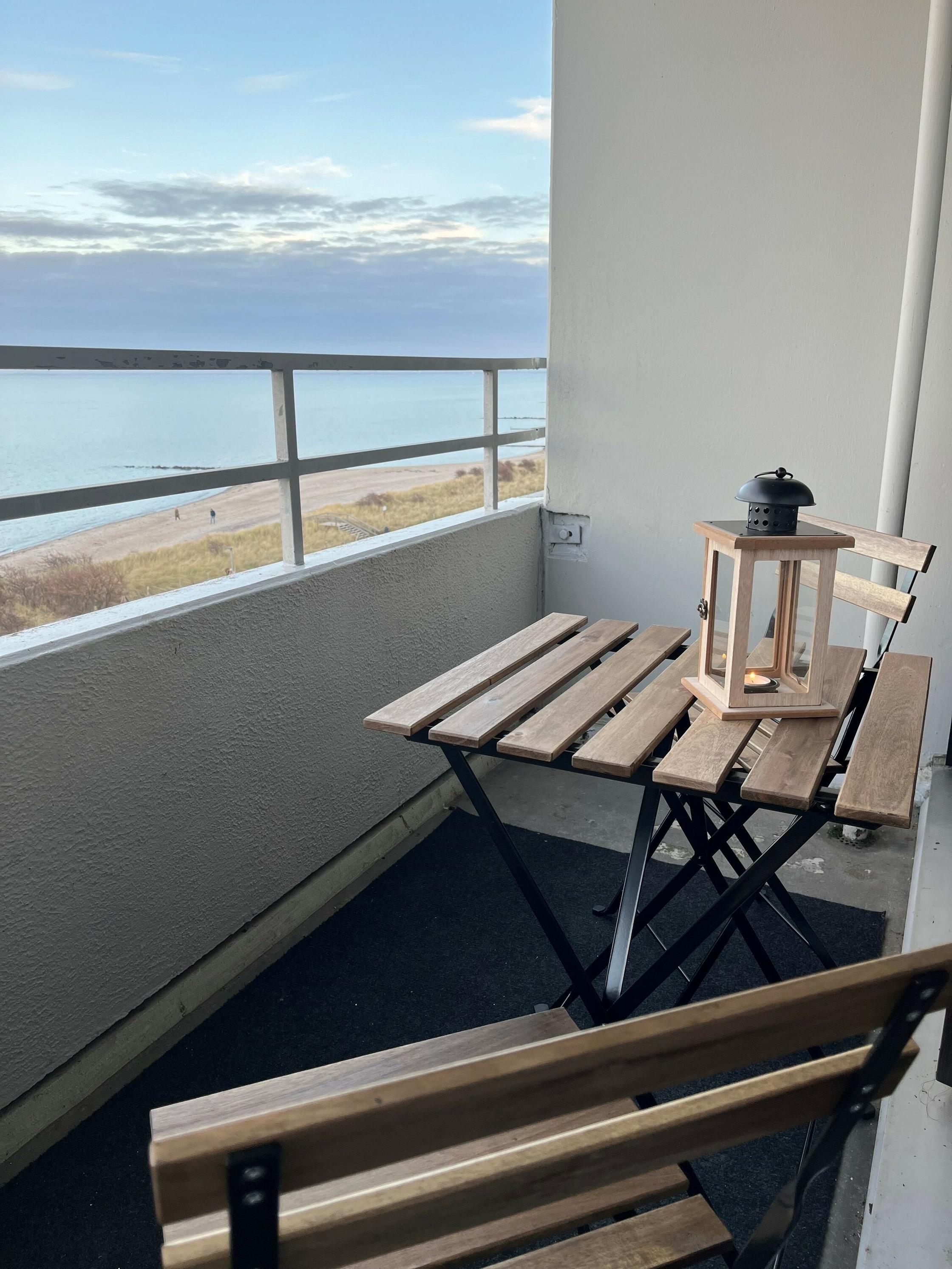 Diese 47 m² große Ferienwohnung in der 5. Etage des Appartementhauses Steinwarder 35 bietet Platz für bis zu 6 Personen und Ostseeblick vom Balkon.