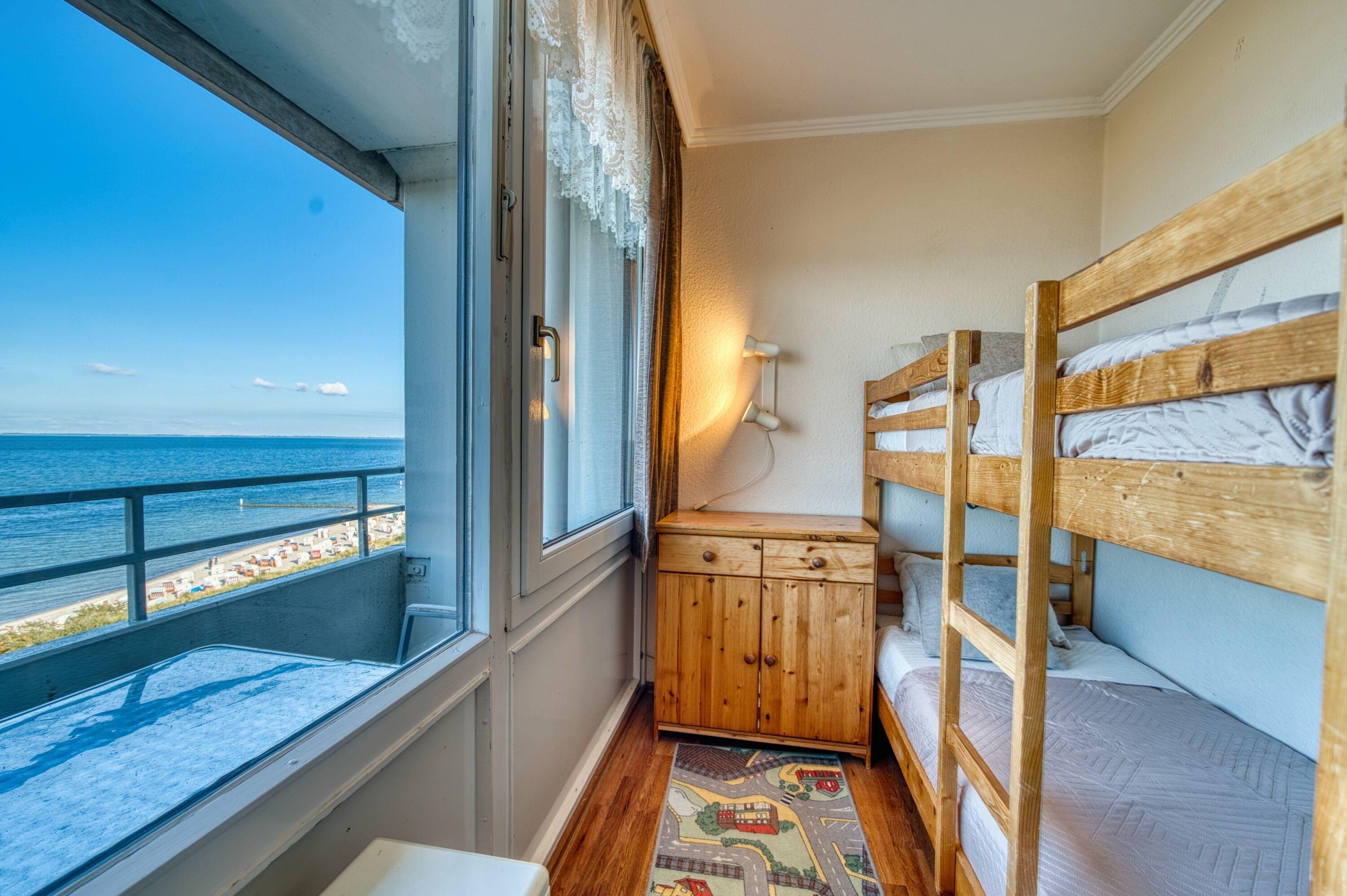 Diese 47 m² große Ferienwohnung in der 6. Etage des Appartementhauses Steinwarder 35 bietet Platz für bis zu 4 Personen. Balkon mit direktem Ostseeblick, nur wenige Meter zum Strand.
