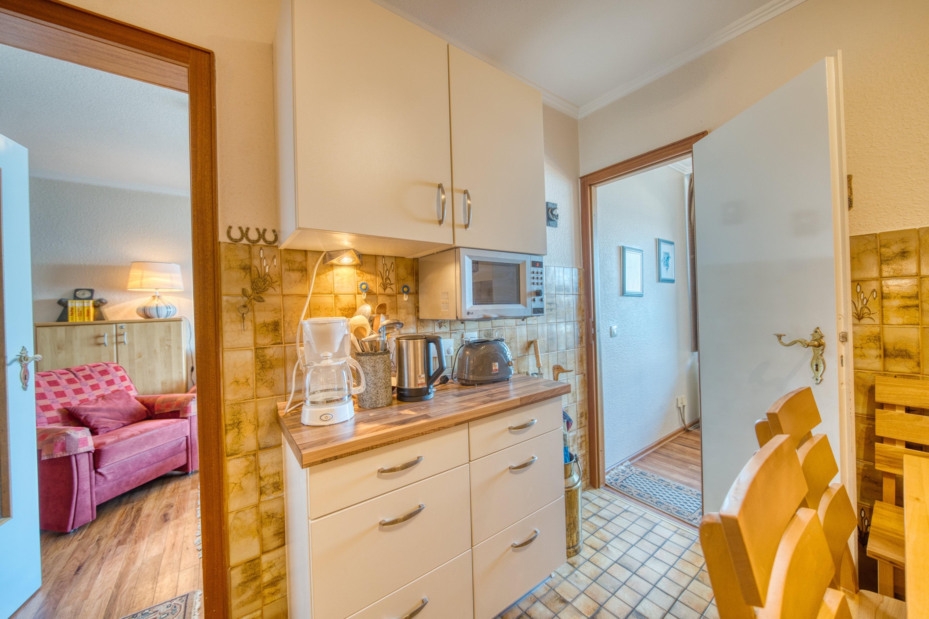 Ausstattung: Wohn-/Schlafbereich mit zwei Schrankbetten, Kinderzimmer mit Etagenbett, Küche mit 4 Kochfeldern, Mikrowelle, Kühlschrank, Toaster, Wasserkocher, Filterkaffeemaschine. Bad mit Dusche, Laminatboden.