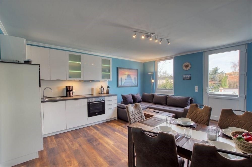 Modernes 80m² Apartment in Heiligenhafen, zentral am Marktplatz, ideal für Familien mit 2 Schlafzimmern und Balkon.
