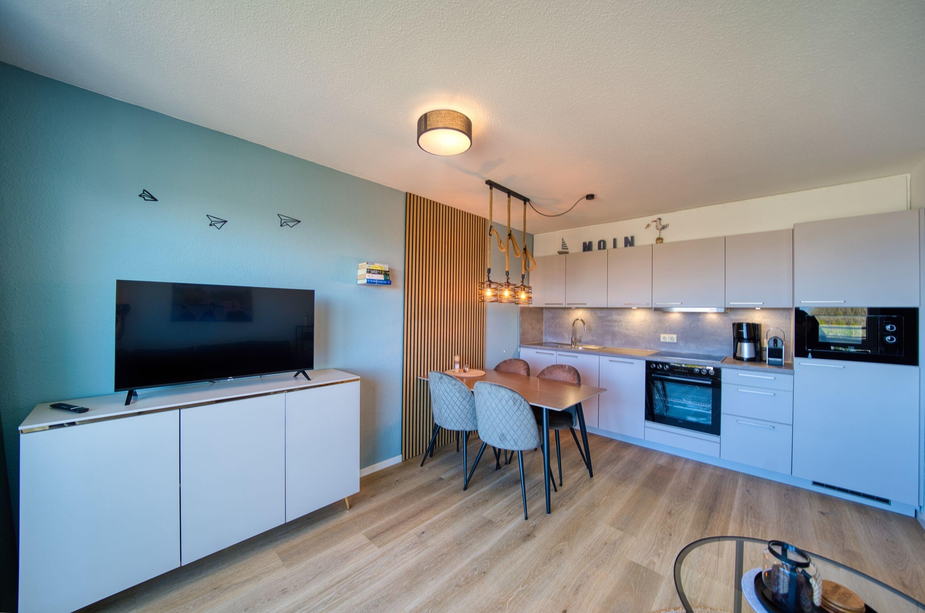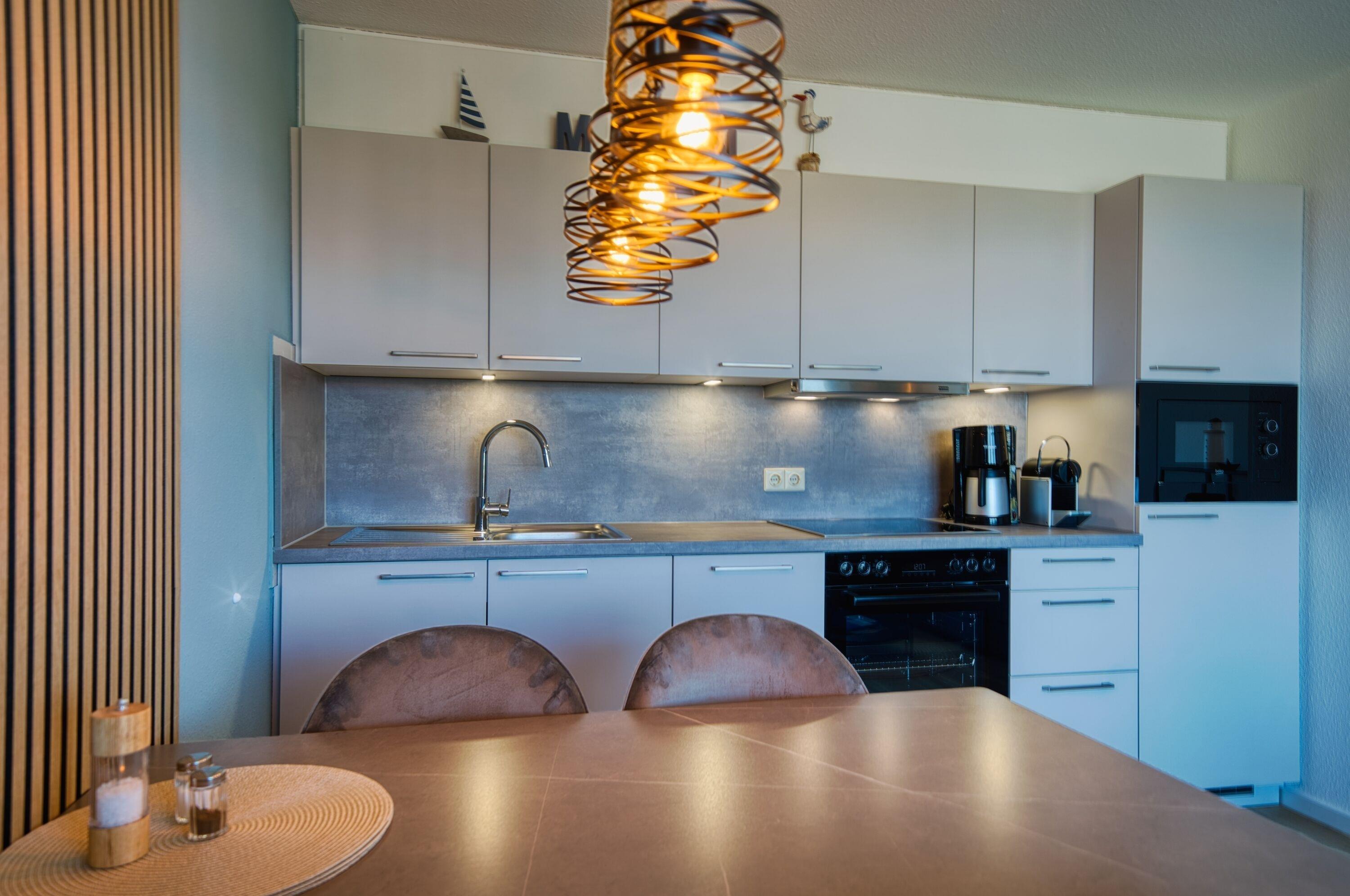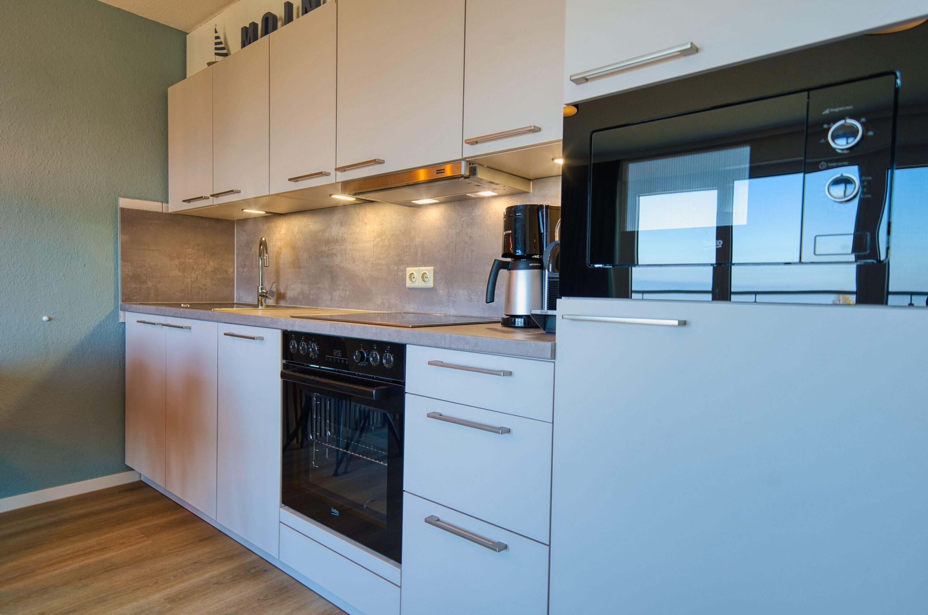 Küche: Ceranherd, Backofen, Mikrowelle, Geschirrspüler, Filterkaffeemaschine, Wasserkocher