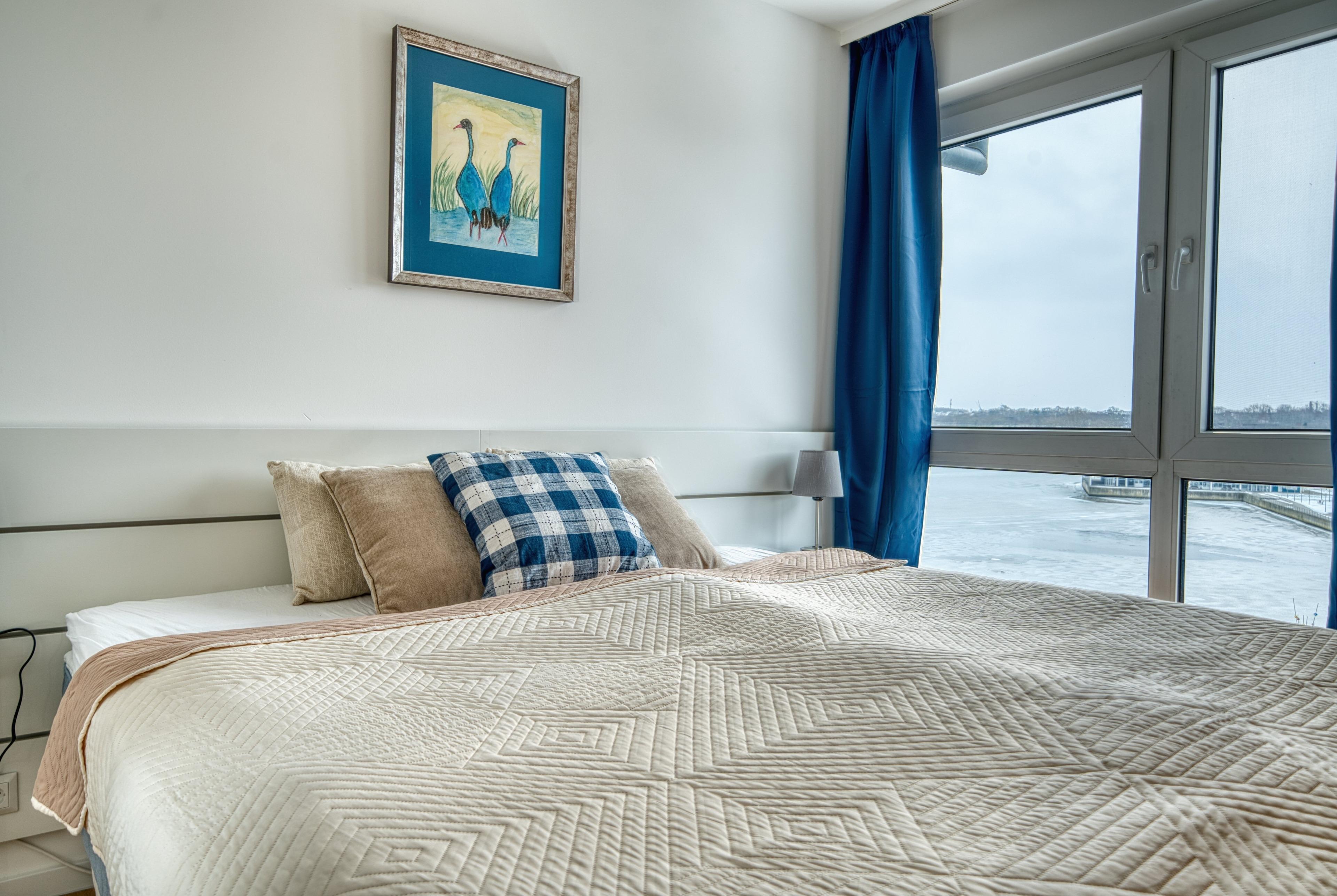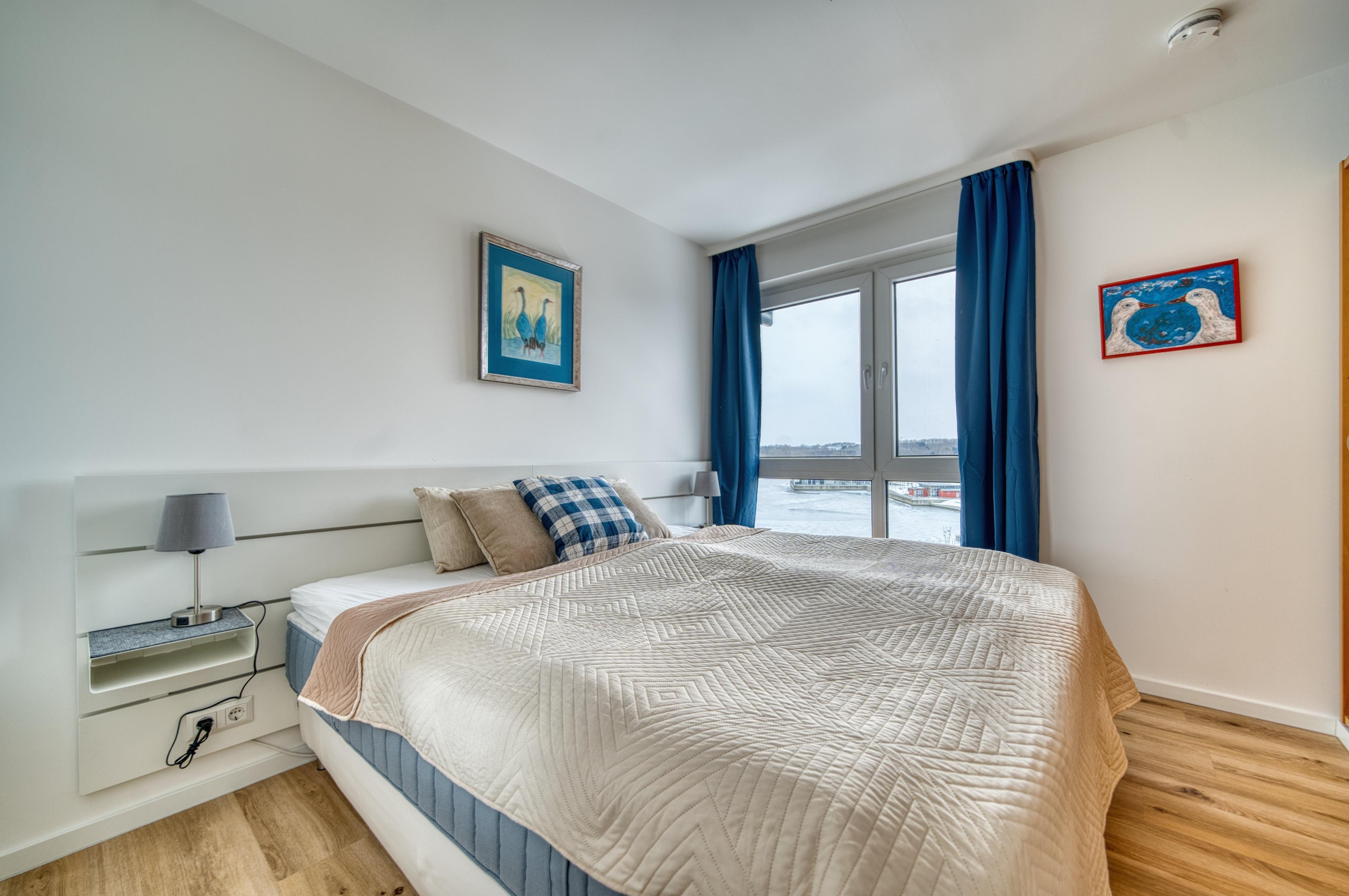 Schlafzimmer: Doppelbett (180x200?cm), TV, Binnenseeblick