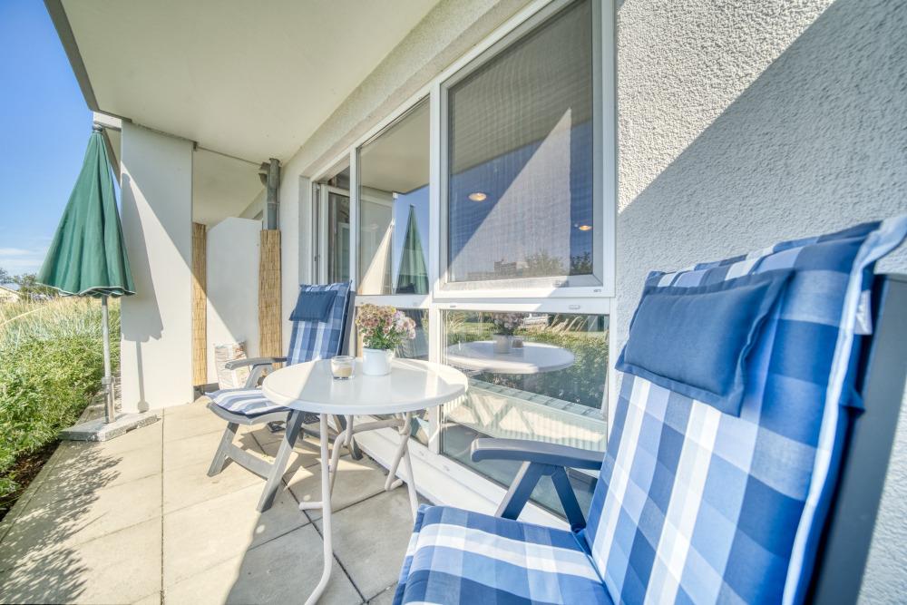Für 2–3 Personen, südliche Terrasse mit Strandkorb