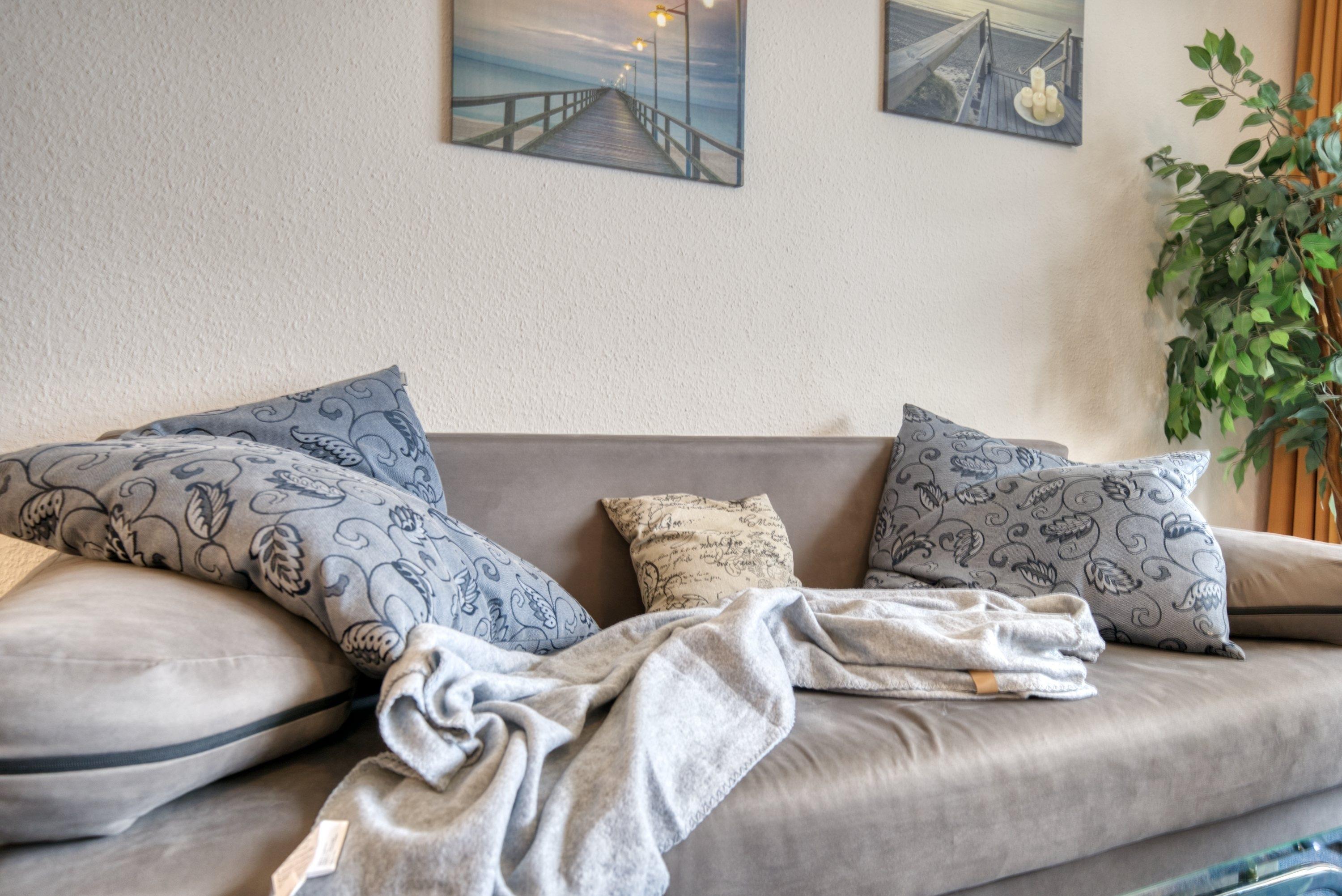 Direkt zwischen Ostsee und Binnensee, nur wenige Schritte zum Hauptbadestrand. Großzügiger Wohnbereich mit Schlafsofa, Flatscreen-TV und Essbereich. Moderne offene Küche mit Geschirrspüler, Ceranfeld, Backofen, Mikrowelle, Filterkaffeemaschine und Wasserkocher. Schlafzimmer mit Doppelbett (200x200?cm) und TV, Kinderzimmer mit zwei Einzelbetten (90x200?cm) und TV. Bad mit Dusche, WC und Handtuchheizkörper. Westbalkon mit Blick auf die Ostsee.