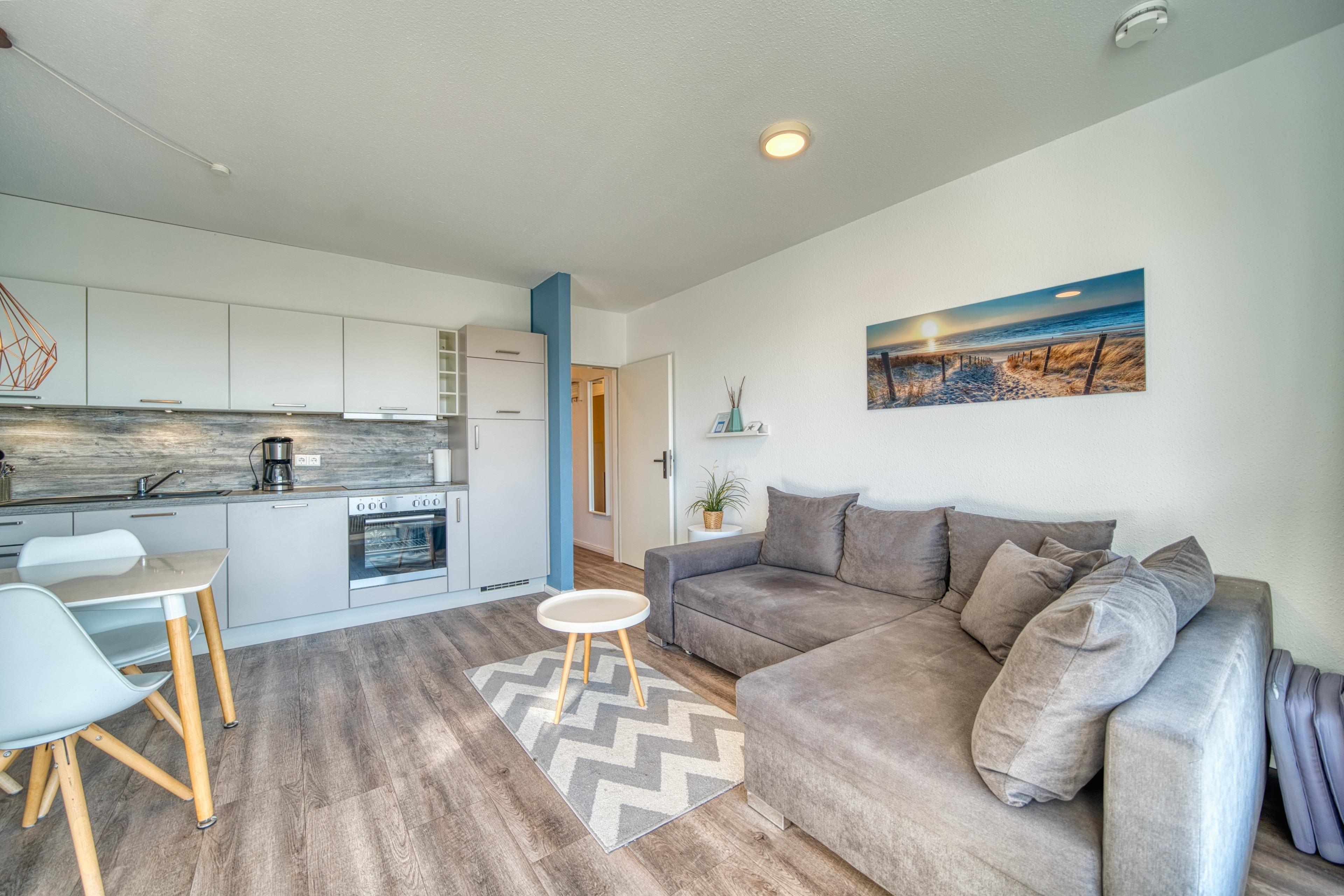 Gemütliches Appartement auf der Dünenhalbinsel zwischen Ostsee und Binnensee, direkt am Hauptbadestrand. Für bis zu 3 Erwachsene oder 2 Erwachsene + 2 Kinder. Wohnbereich mit Ecksofa, TV, Radio, Essbereich; Schlafzimmer mit Doppelbett, zusätzlicher TV; Schlafsofa für Kinder. Voll ausgestattete Küche, Bad mit Dusche/WC. Westbalkon mit traumhaften Sonnenuntergängen. Fahrstuhl, WLAN, PKW-Stellplatz, abschließbarer Fahrradraum, Waschmaschine/Trockner im Haus (gegen Gebühr). Nichtraucher, keine Haustiere.