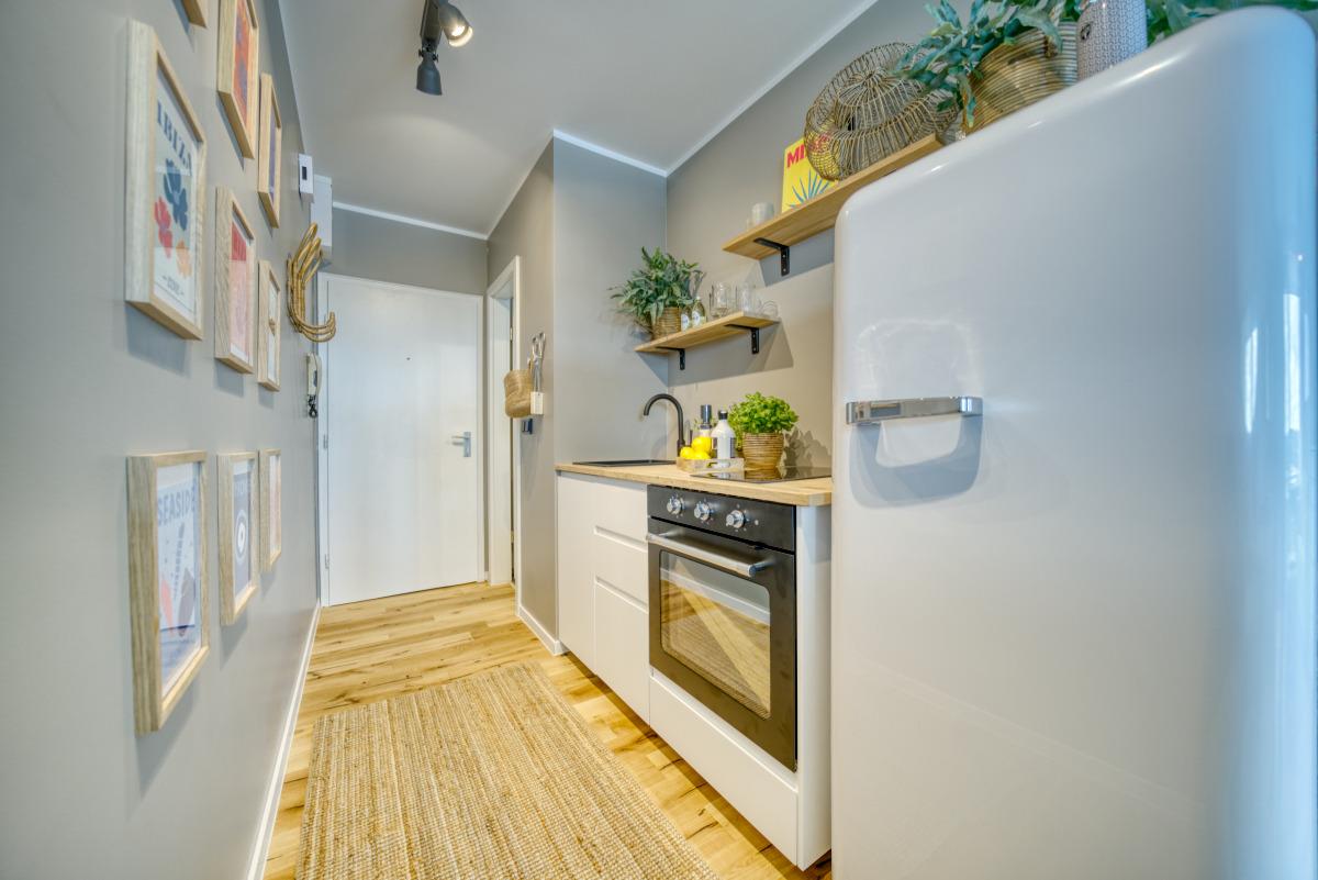 Die helle, renovierte Wohnung verfügt über eine Schlafgelegenheit für zwei Personen, ein separates Badezimmer sowie Fußbodenheizung. Vom Balkon mit Kunstrasen genießen Sie den seitlichen Blick auf die Ostsee. Eine praktische Küchenzeile mit Filterkaffeemaschine ist vorhanden, ebenso kostenfreies WLAN (100 Mbit/s).