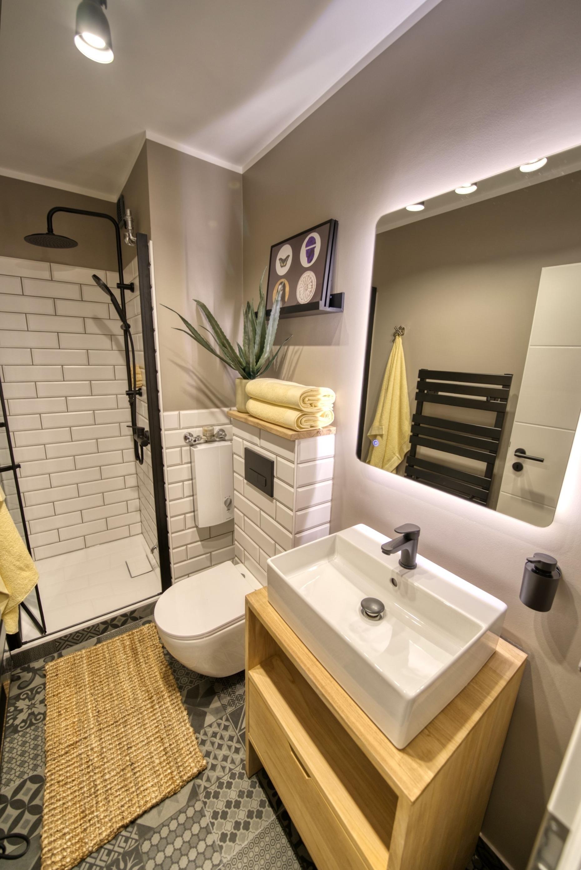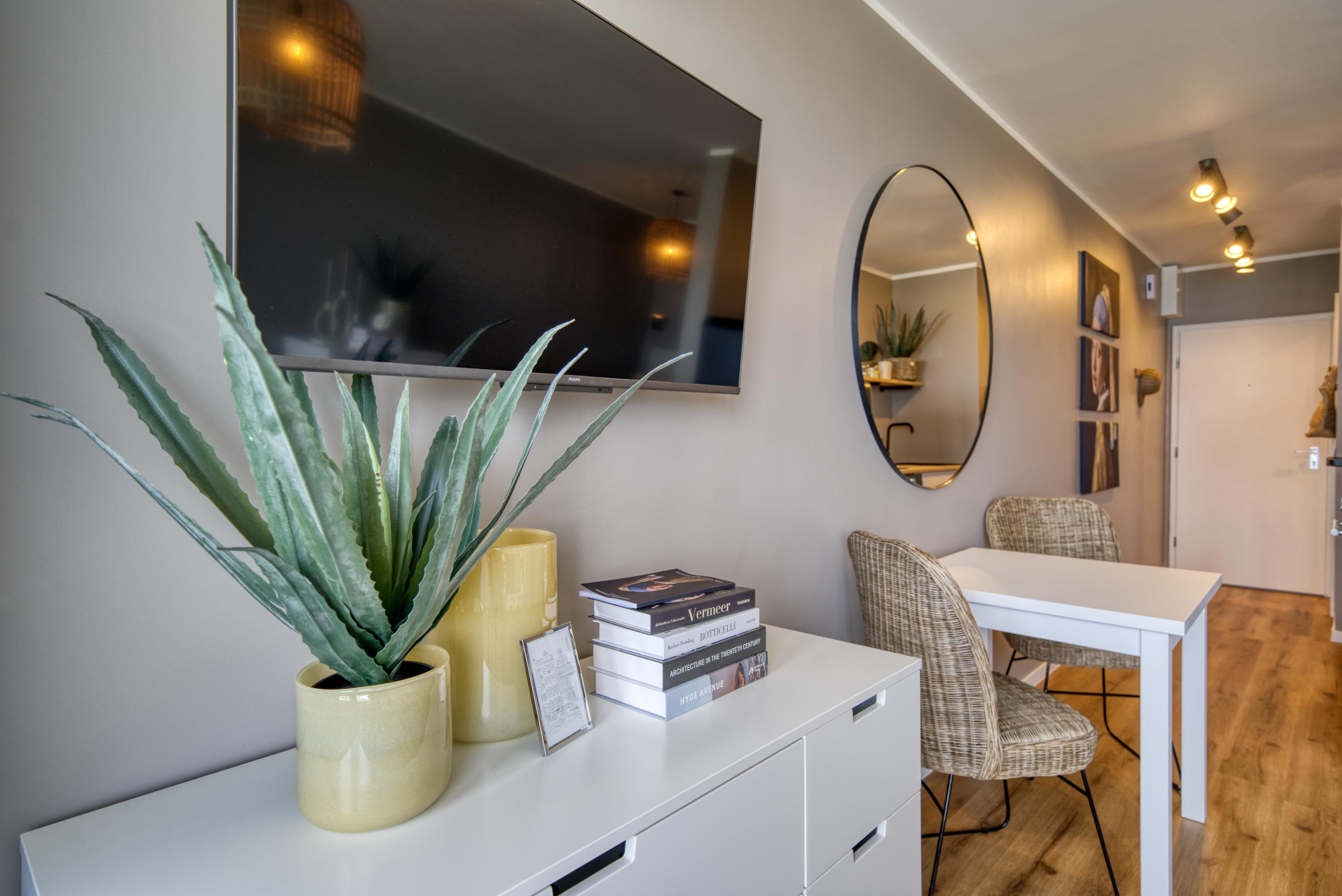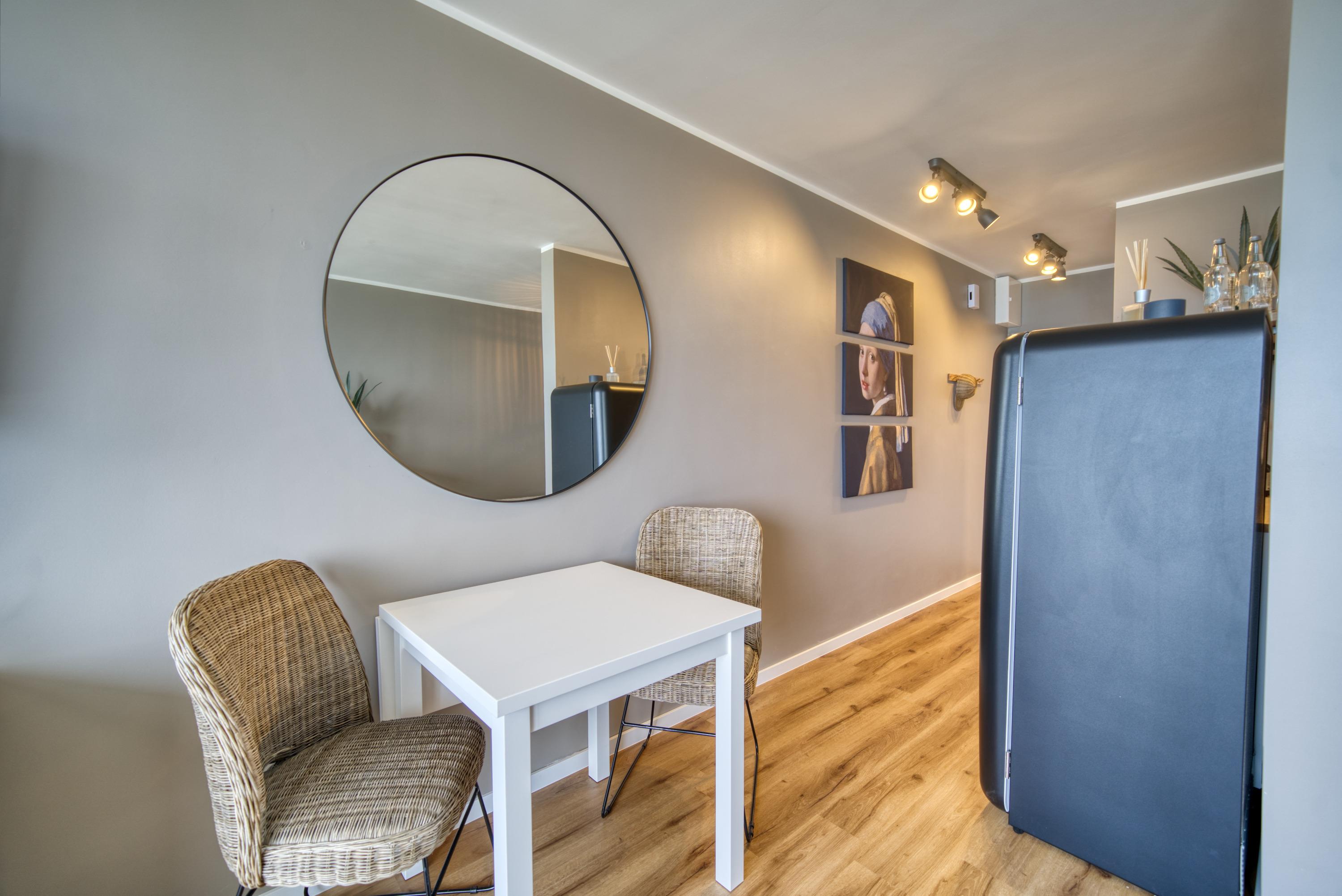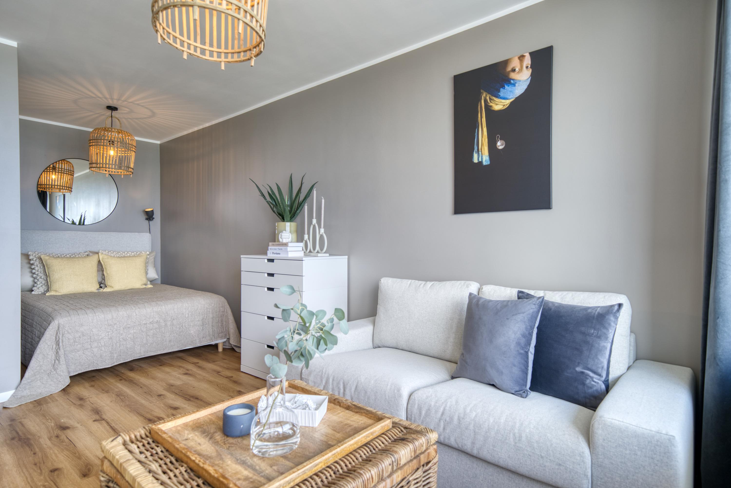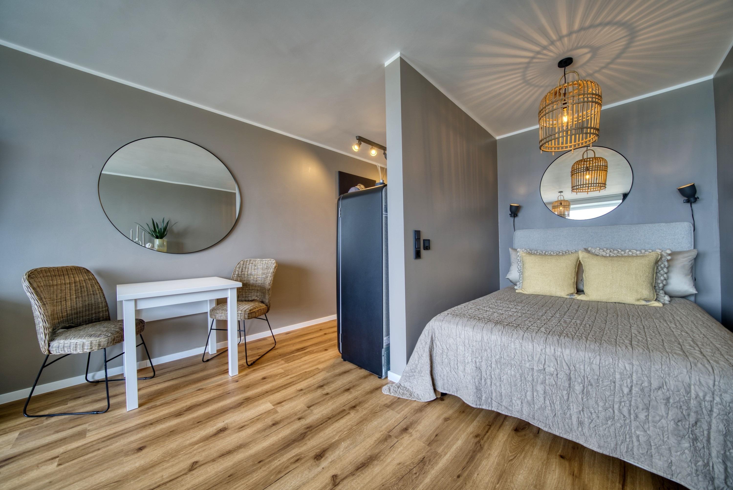 Die Wohnung verfügt über einen offenen Schlafbereich mit Doppelbett und ausklappbarer Schlafcouch, ideal für bis zu 4 Personen. Die Küchenzeile ist praktisch ausgestattet, WLAN ist vorhanden, und ein eigener Parkplatz steht zur Verfügung.