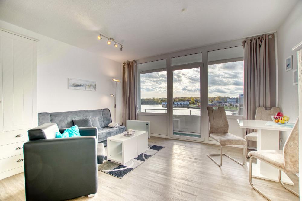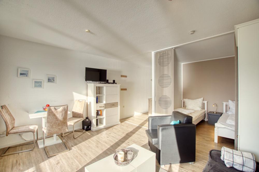 Die ca. 36?m² große Wohnung bietet Wohn-/Schlafzimmer mit zwei Einzelbetten, Sofa, Flachbild-TV, Küchenzeile mit Ceranfeld, Mikrowelle, Geschirrspüler, Kühlschrank, Kaffeemaschine und Wasserkocher, sowie Duschbad. Balkon in Südlage mit Binnenseeblick. Kostenloses WLAN, saisonaler Strandkorb, Fahrstuhl, Gemeinschaftsfahrradkeller und PKW-Stellplatz vorhanden. Nichtraucherwohnung, keine Haustiere. Strand ca. 25?m, Ferienpark mit Einkauf, Gastronomie und Freizeit ca. 5?Minuten entfernt.