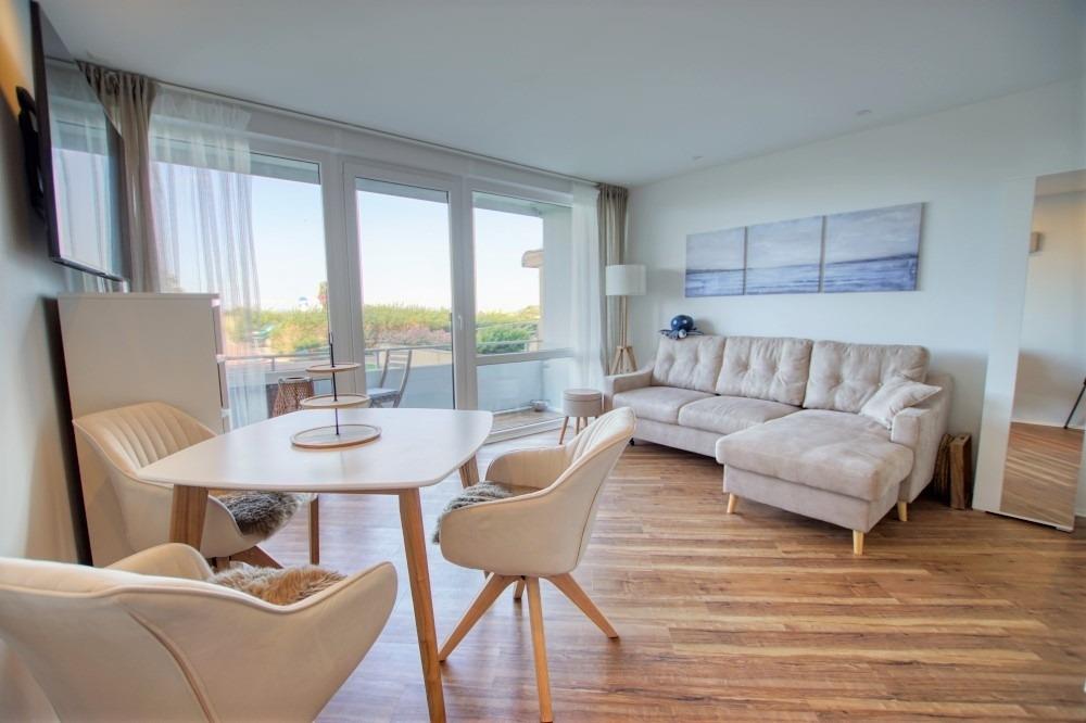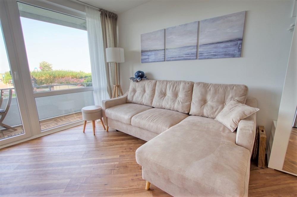 Moderne Nichtraucher-Ferienwohnung mit Balkon und Ostseeblick in Heiligenhafen, direkt am Strand und mit komfortabler Ausstattung.