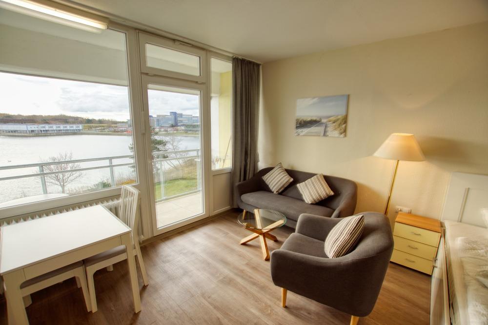 Diese 31 qm große Ferienwohnung in der 3. Etage des Hauses Steinwarder 33 ist ideal für Paare und Alleinreisende. Vom Balkon mit Blick auf den Binnensee genießen Sie wunderschöne Aussichten und entspannte Momente.