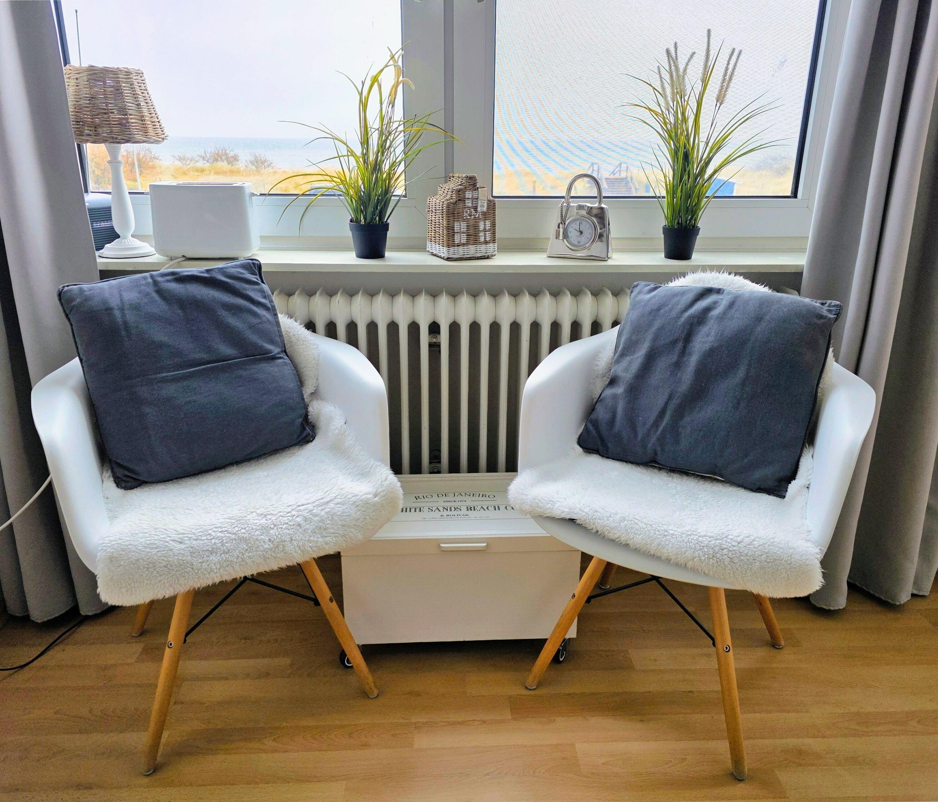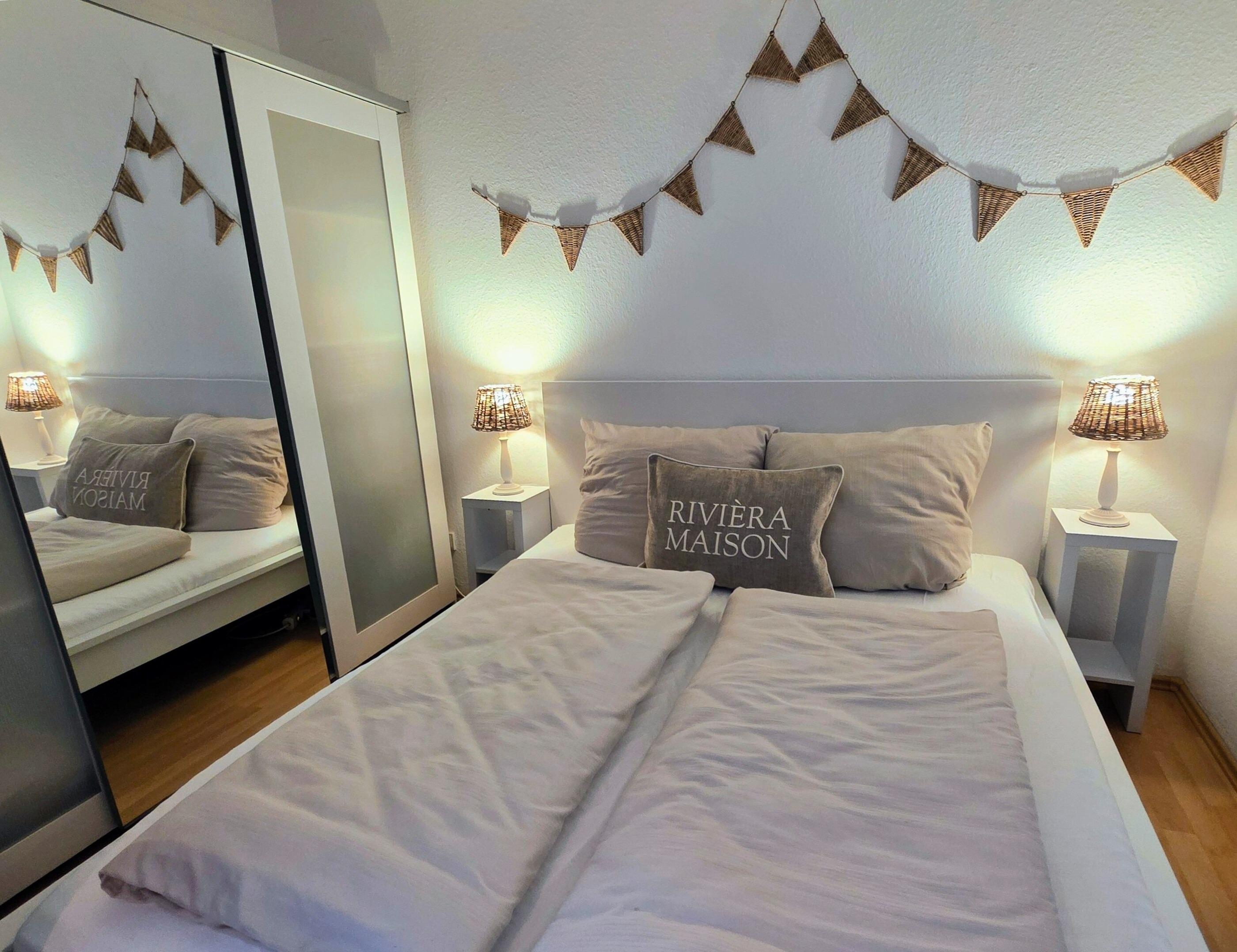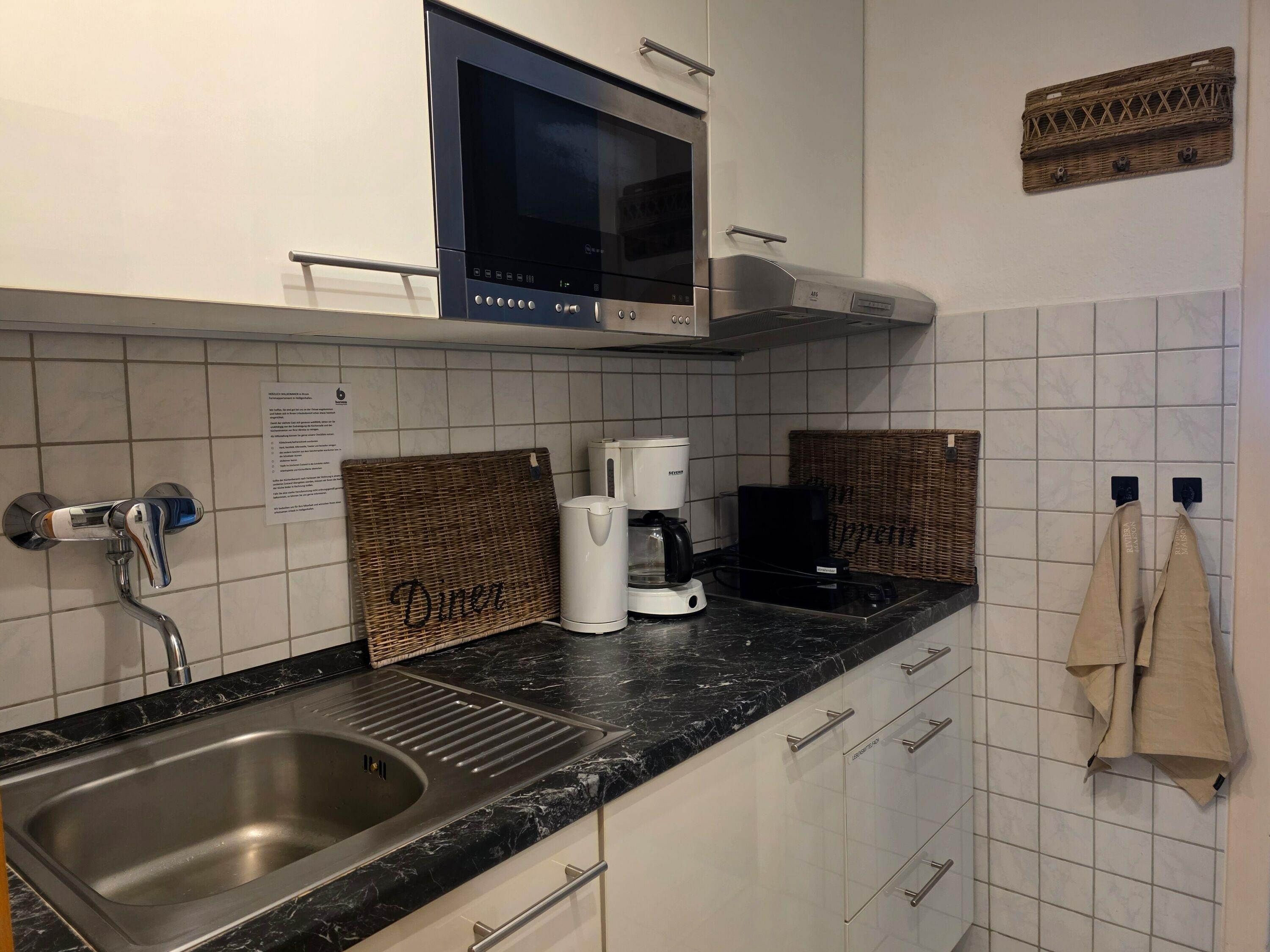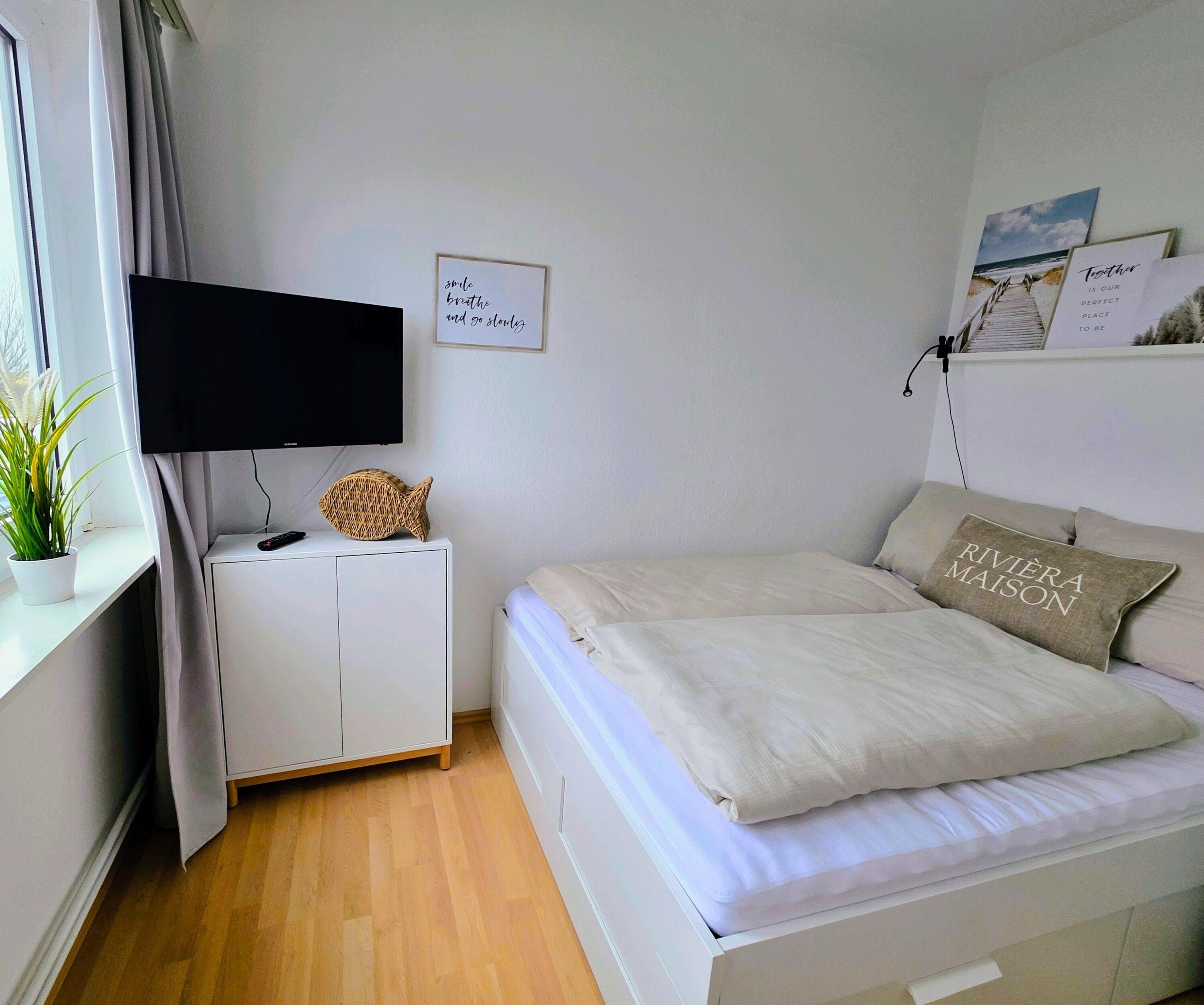 Wohn-/Schlafbereich mit Doppelbett und Schlafsofa, separates Schlafzimmer mit Doppelbett, TV in beiden Räumen, WLAN inklusive. Pantryküche mit Kühlschrank, 2-Platten-Herd, Mikrowelle, Kaffeemaschine, Wasserkocher und Toaster. Babybett, Kinderspielsachen, Eintritt „Schatzinsel“ inklusive. Saisonstrandkorb, Stellplatz nach Verfügbarkeit, Aufzug vorhanden.