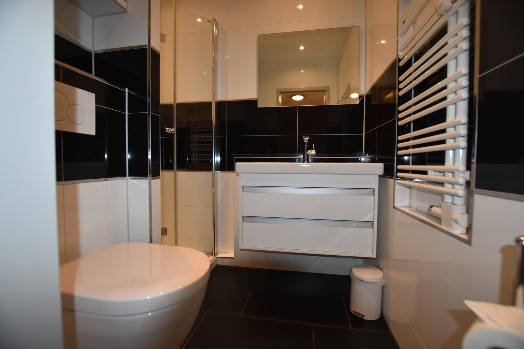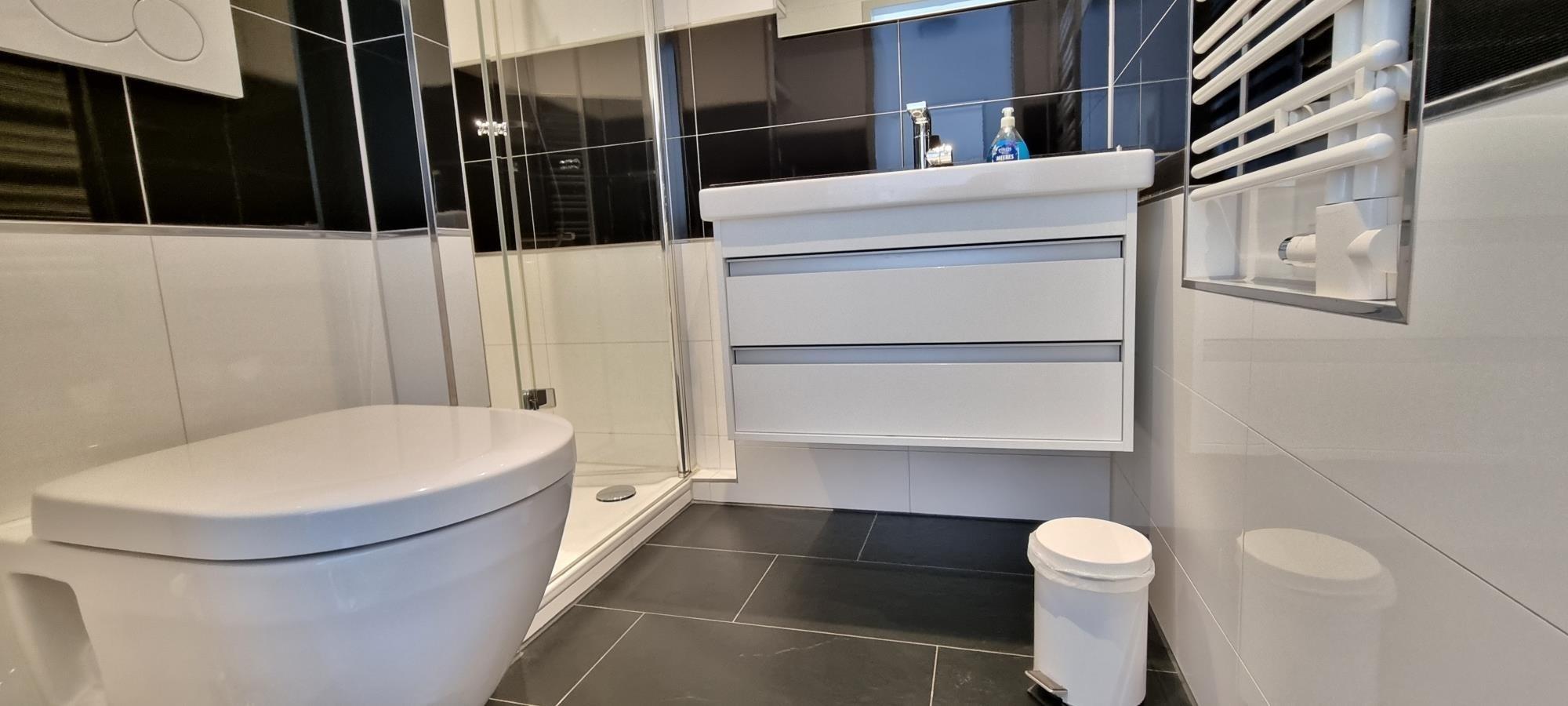 Das moderne Duschbad mit WC und Waschbecken rundet den Wohnkomfort ab und sorgt für einen angenehmen Start in den Tag.