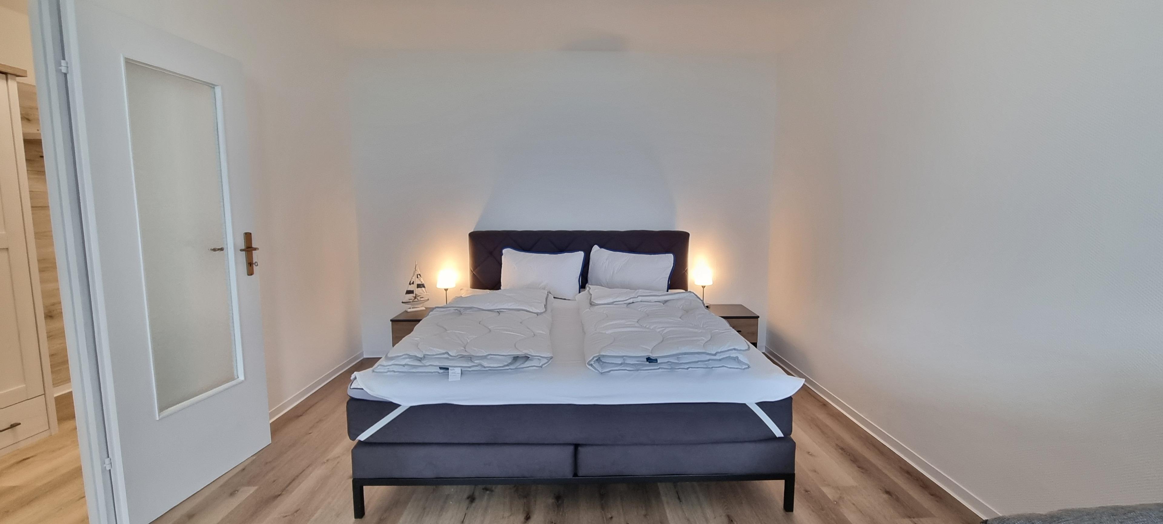 Diese großzügige und modern renovierte Ferienwohnung an der Ostsee bietet Ihnen den perfekten Rückzugsort für erholsame Urlaubstage. Der lichtdurchflutete Wohnbereich überzeugt mit einem komfortablen Doppelbett und einer gemütlichen Couch, die zum Entspannen und Verweilen einlädt. Dank der durchdachten Raumaufteilung entsteht eine angenehme Wohnatmosphäre, die sowohl für Paare als auch für Familien ideal geeignet ist.