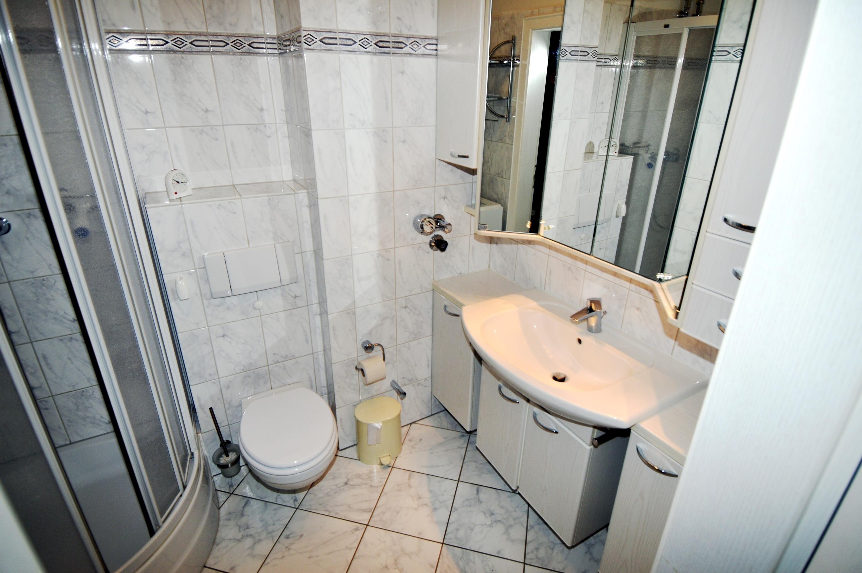 Das Duschbad ist funktional und komfortabel ausgestattet und verfügt über eine Waschmaschine, die Ihnen auch bei längeren Aufenthalten zusätzlichen Komfort bietet.