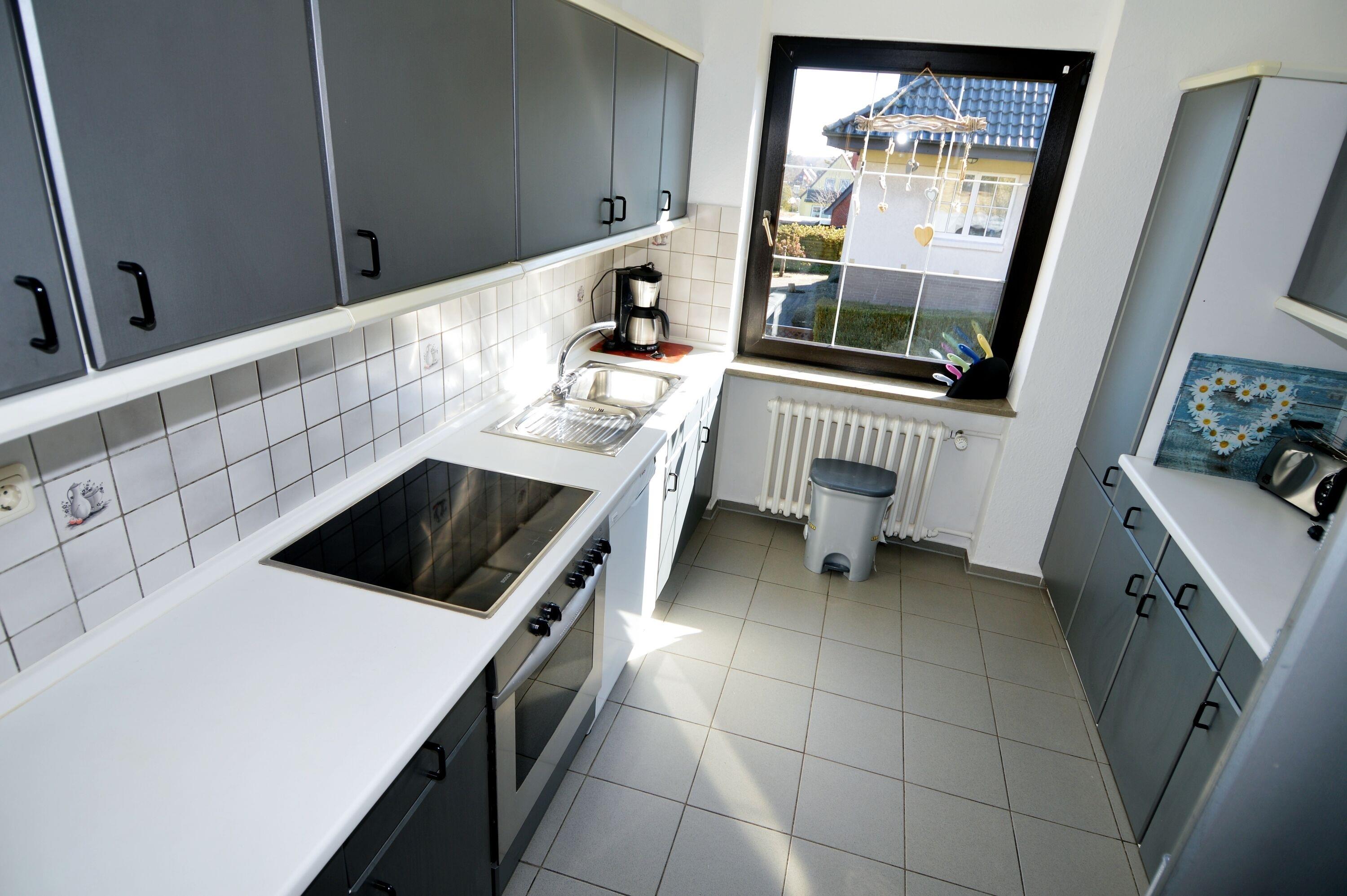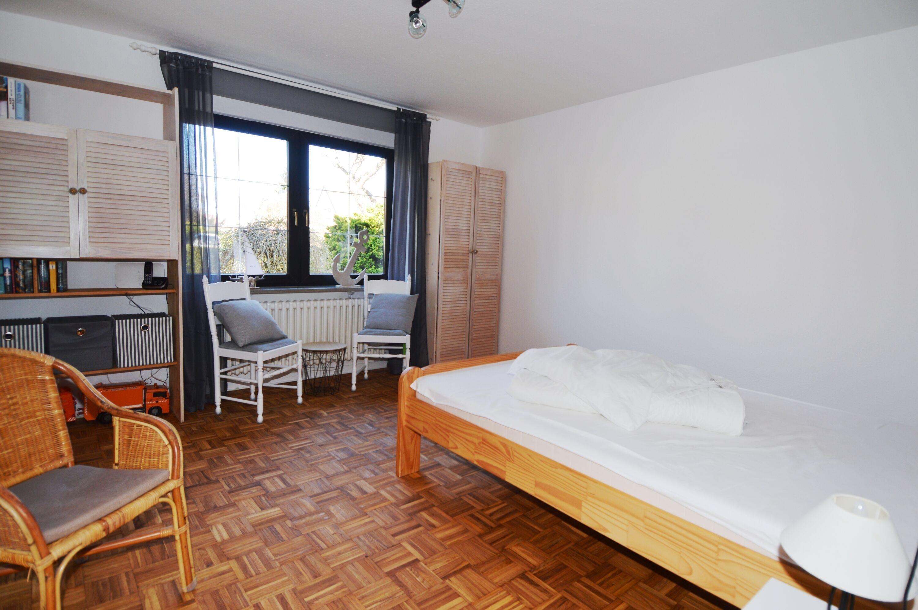 Ebenfalls im Erdgeschoss befinden sich die separate Küche, ein Gäste-WC sowie ein Schlafzimmer mit einem Bett der Größe 140x200.