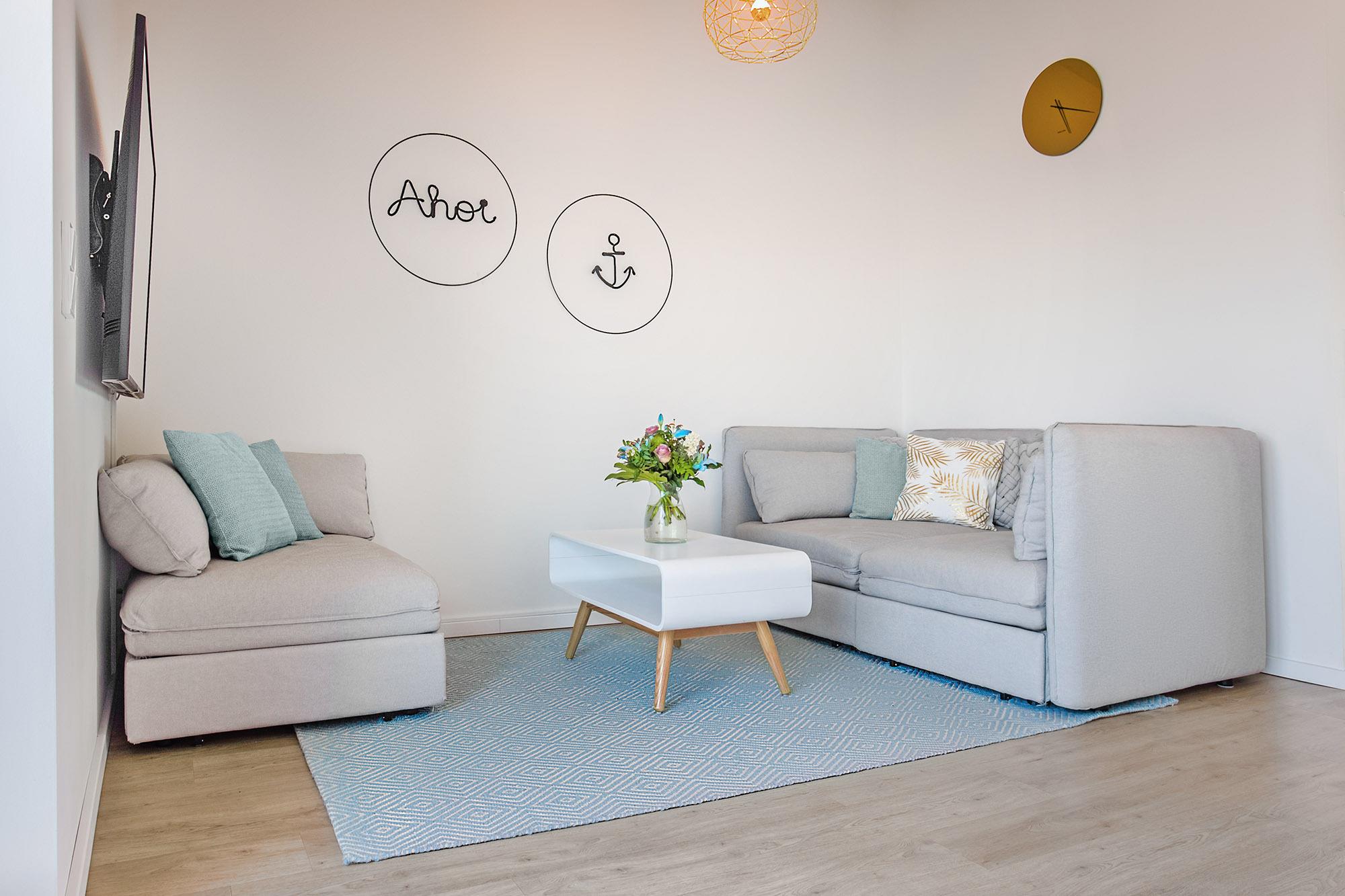 Für bis zu vier Personen bietet das „Captain’s Home“ höchsten Wohnkomfort. Das separate Schlafzimmer mit Doppelbett und TV lädt im 1. Obergeschoss zu erholsamen Nächten ein, während im oberen Wohnbereich eine gemütliche Schlafcouch (1,60 m) sowie ein zusätzlicher Schlafsessel für weitere Gäste bereitstehen. Die geschmackvolle Einrichtung mit bequemer Lounge-Couch, Smart-TV und schnellem WLAN sorgt für entspannte Stunden. Ein besonderes Highlight ist die integrierte Infrarot-Sauna – ideal, um nach einem Tag an der frischen Meeresluft zu regenerieren.