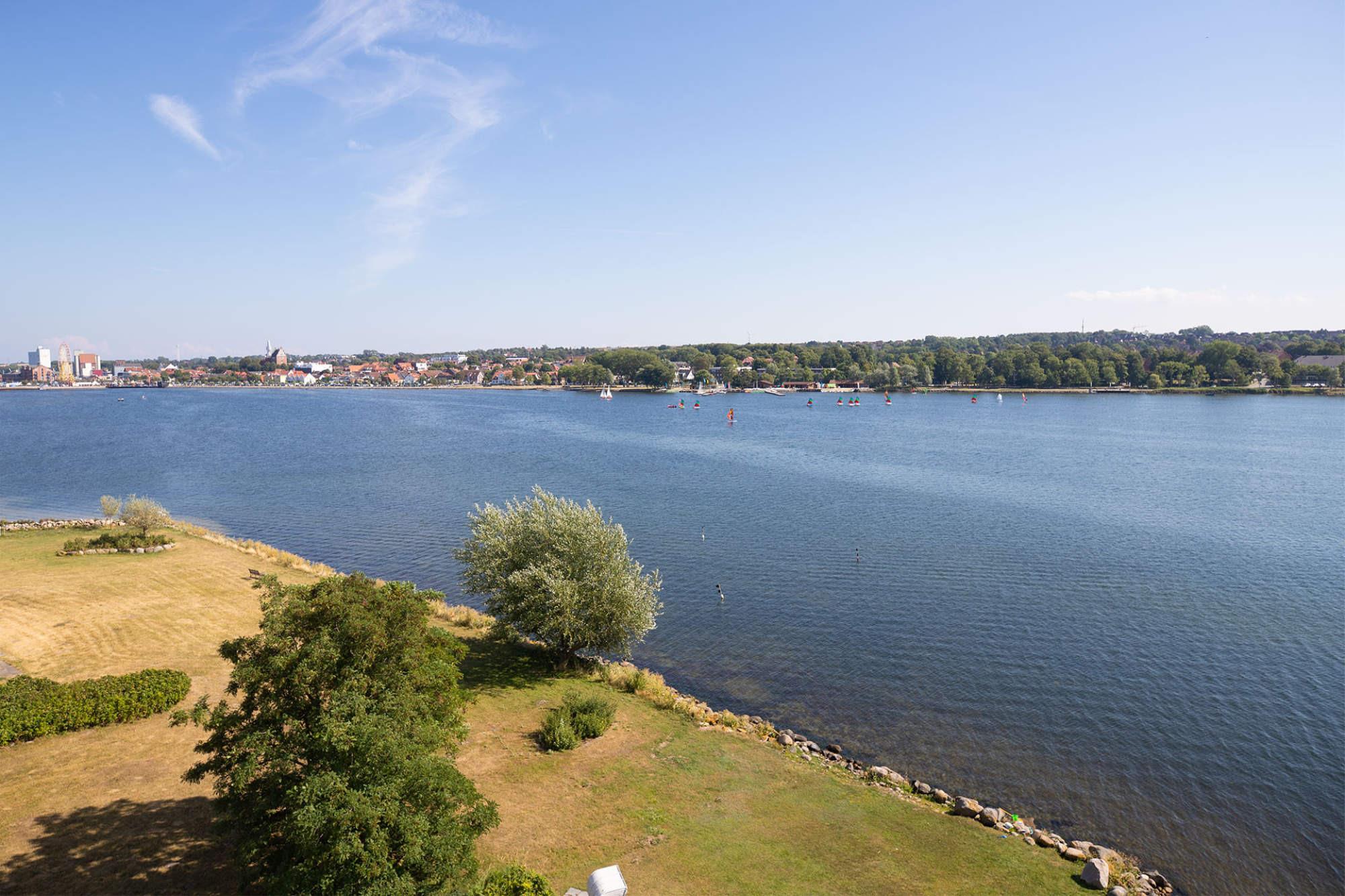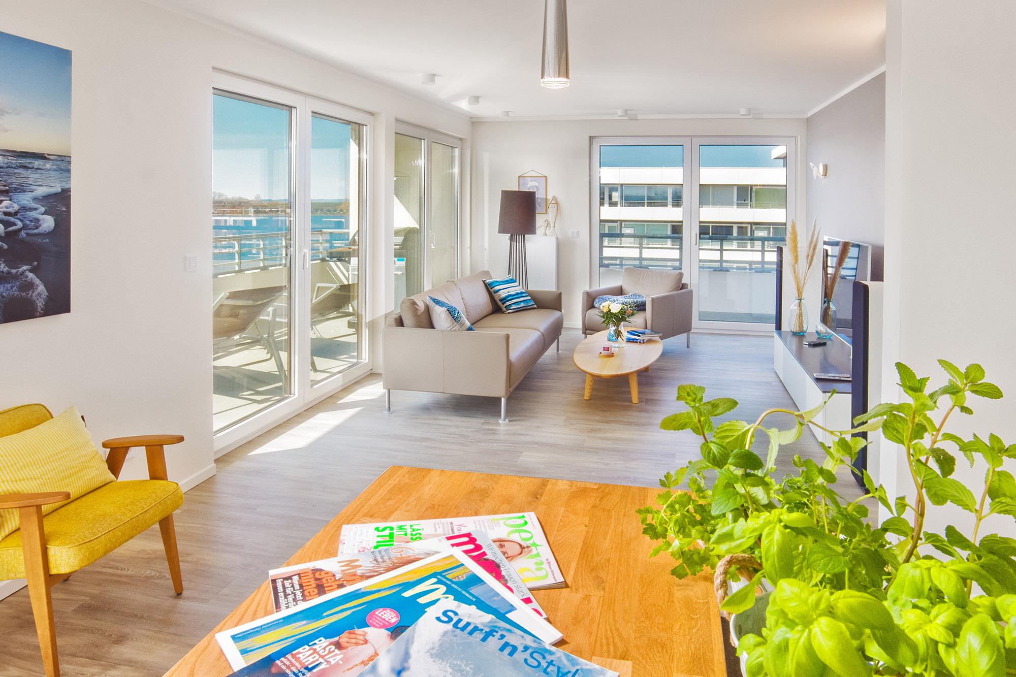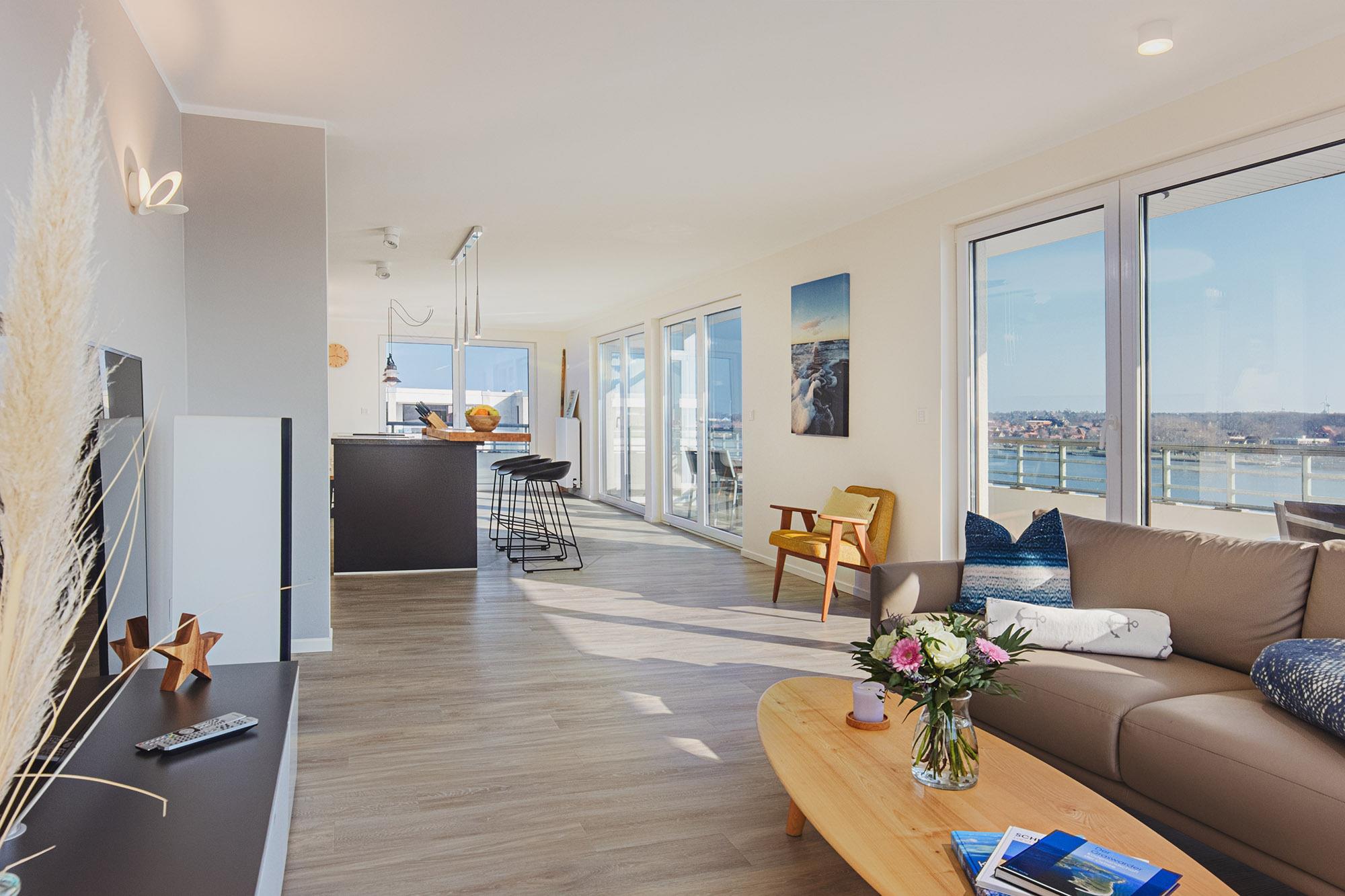 Exklusive Ferienwohnung mit Panoramablick, Sauna und direktem Zugang zum Binnensee in Heiligenhafen.