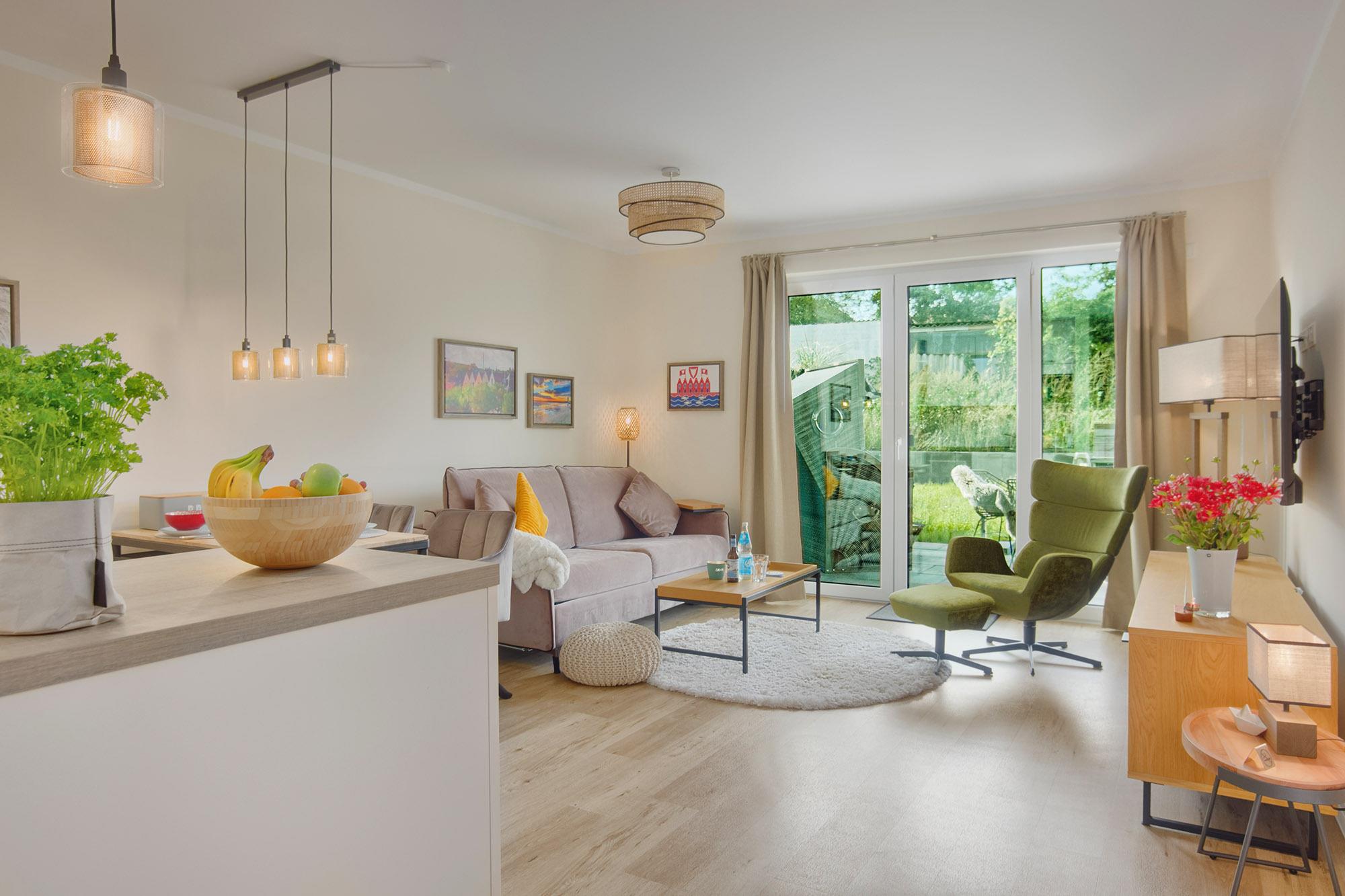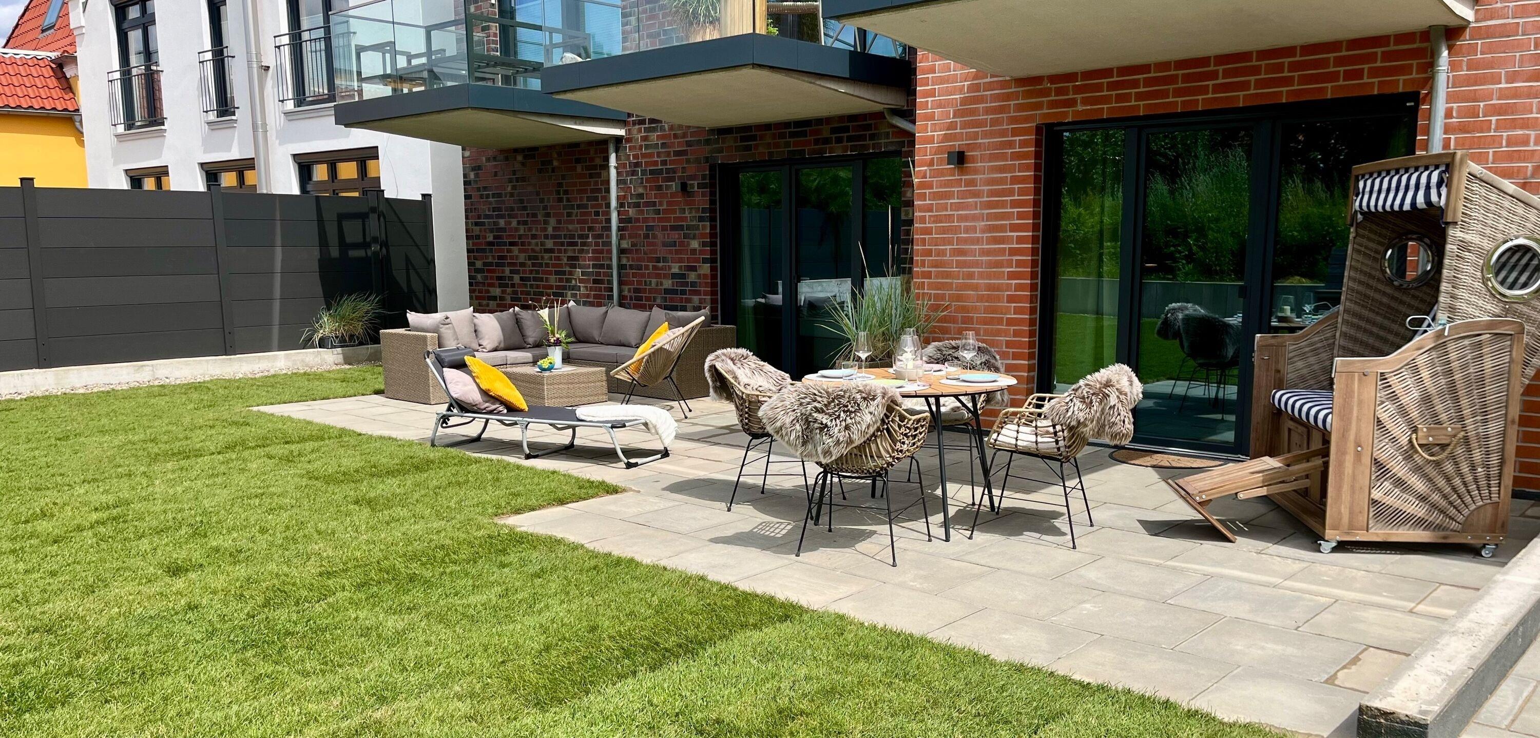 Moderne Ferienwohnung in Heiligenhafen mit Sauna, Terrasse und Garten, ideal für erholsame Urlaubstage.