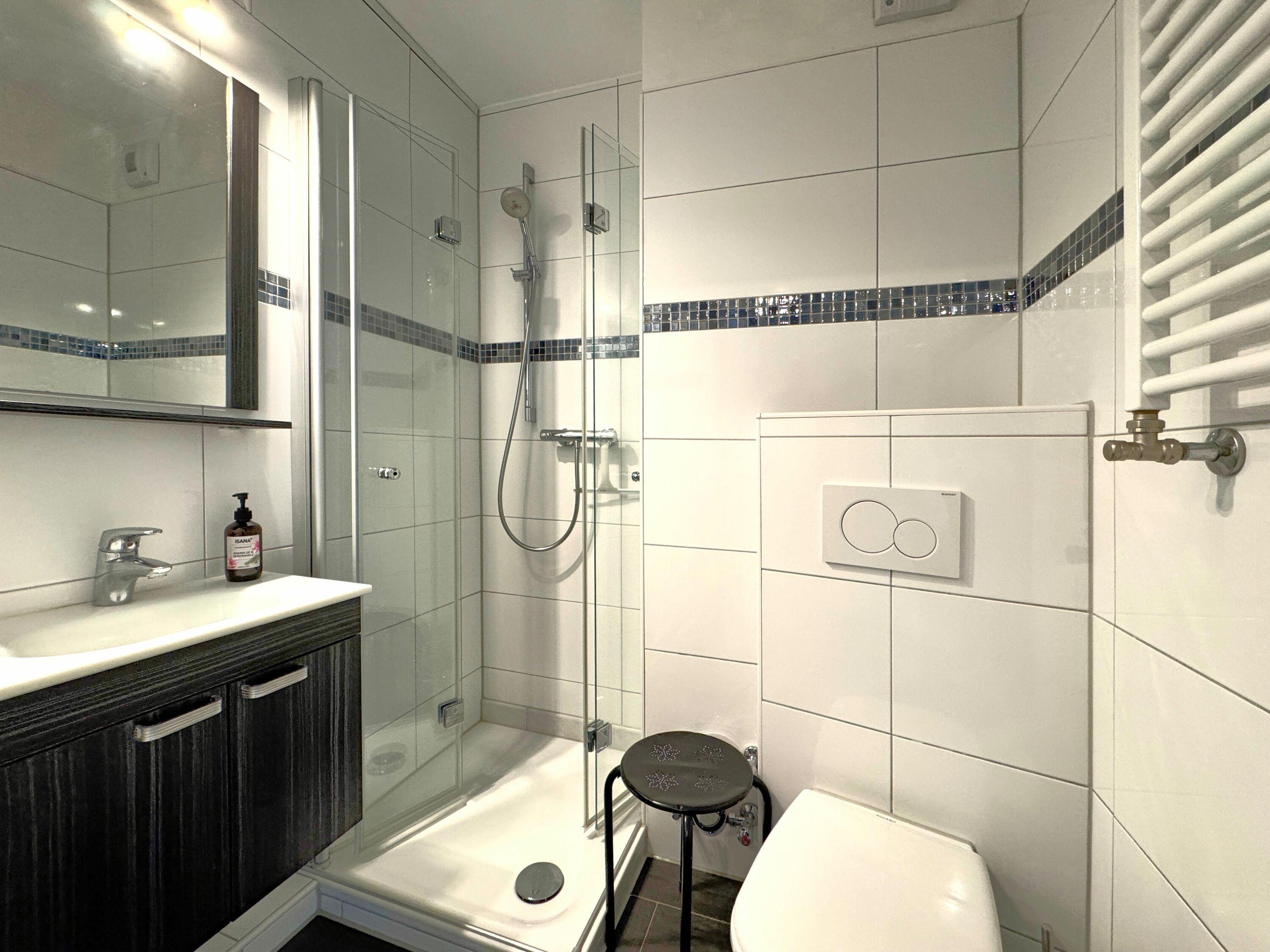 Das Badezimmer ist zweckmäßig eingerichtet und verfügt über eine Dusche, sodass Sie sich nach einem Tag am Strand oder nach Aktivitäten im Ferienpark schnell erfrischen können.