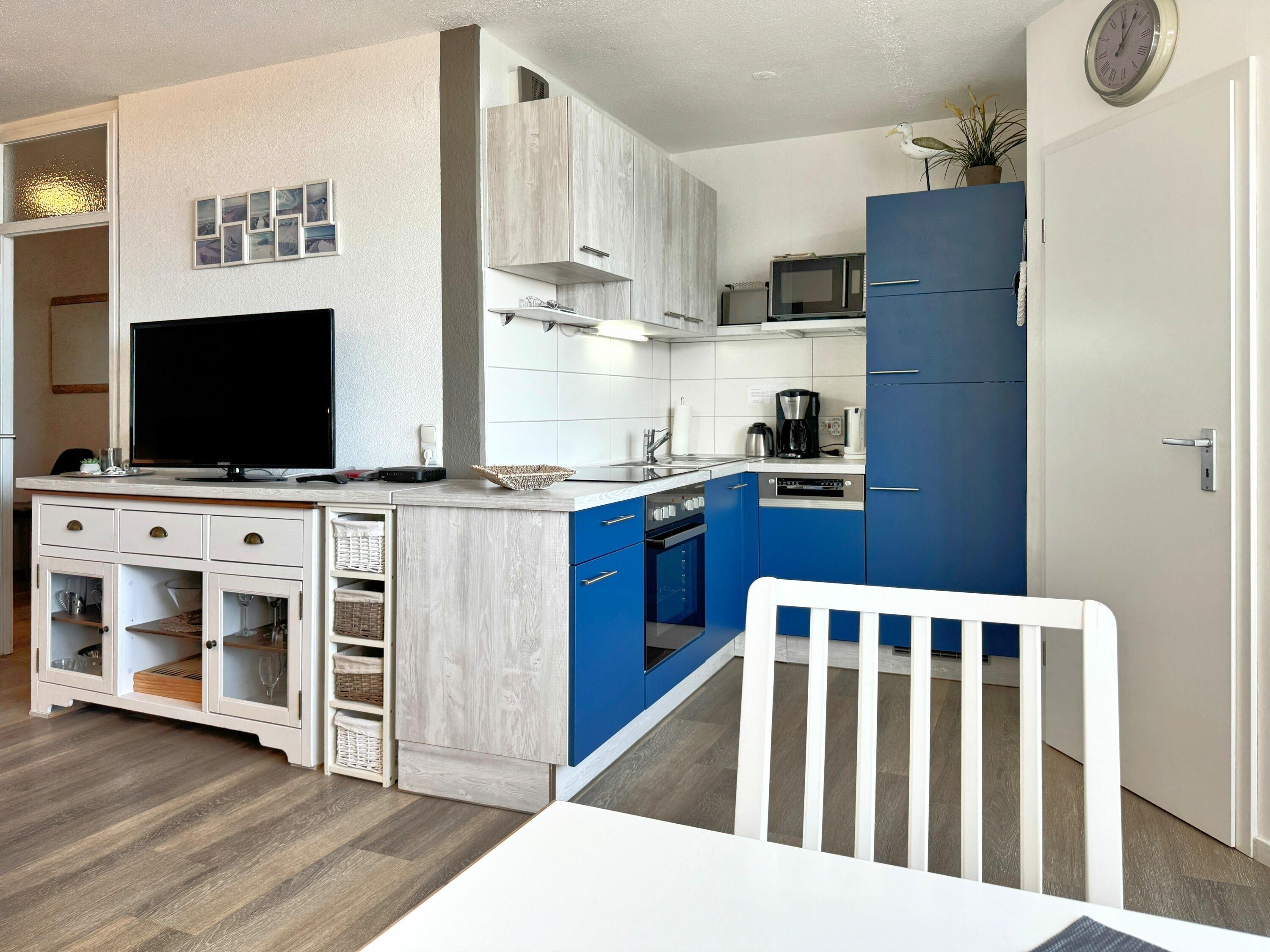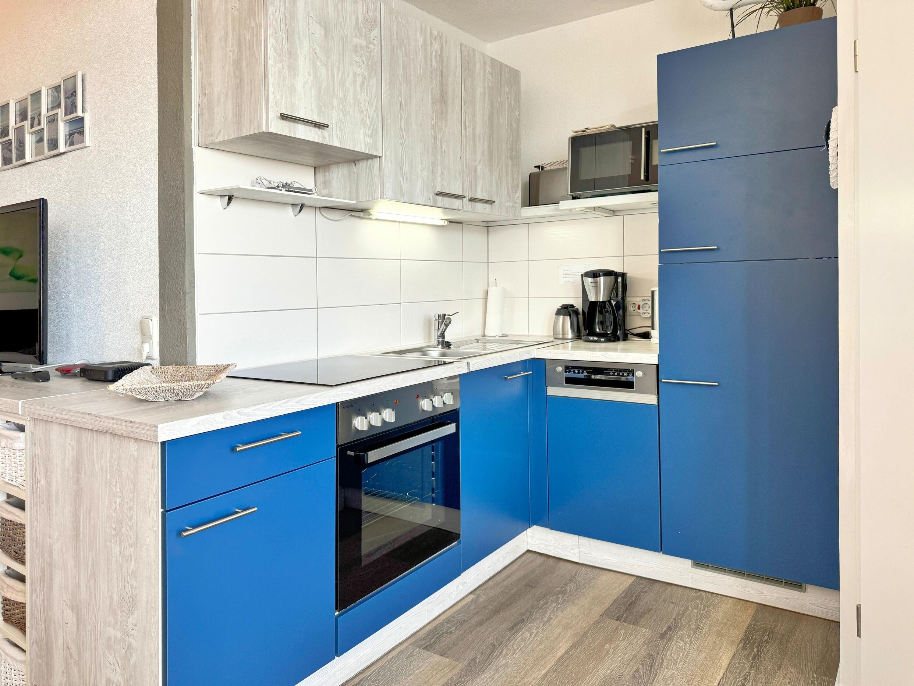 Die Küchenzeile ist praktisch ausgestattet und ermöglicht die Zubereitung kleinerer Mahlzeiten während des Aufenthalts. So können Sie Ihren Urlaubstag flexibel und unabhängig gestalten.